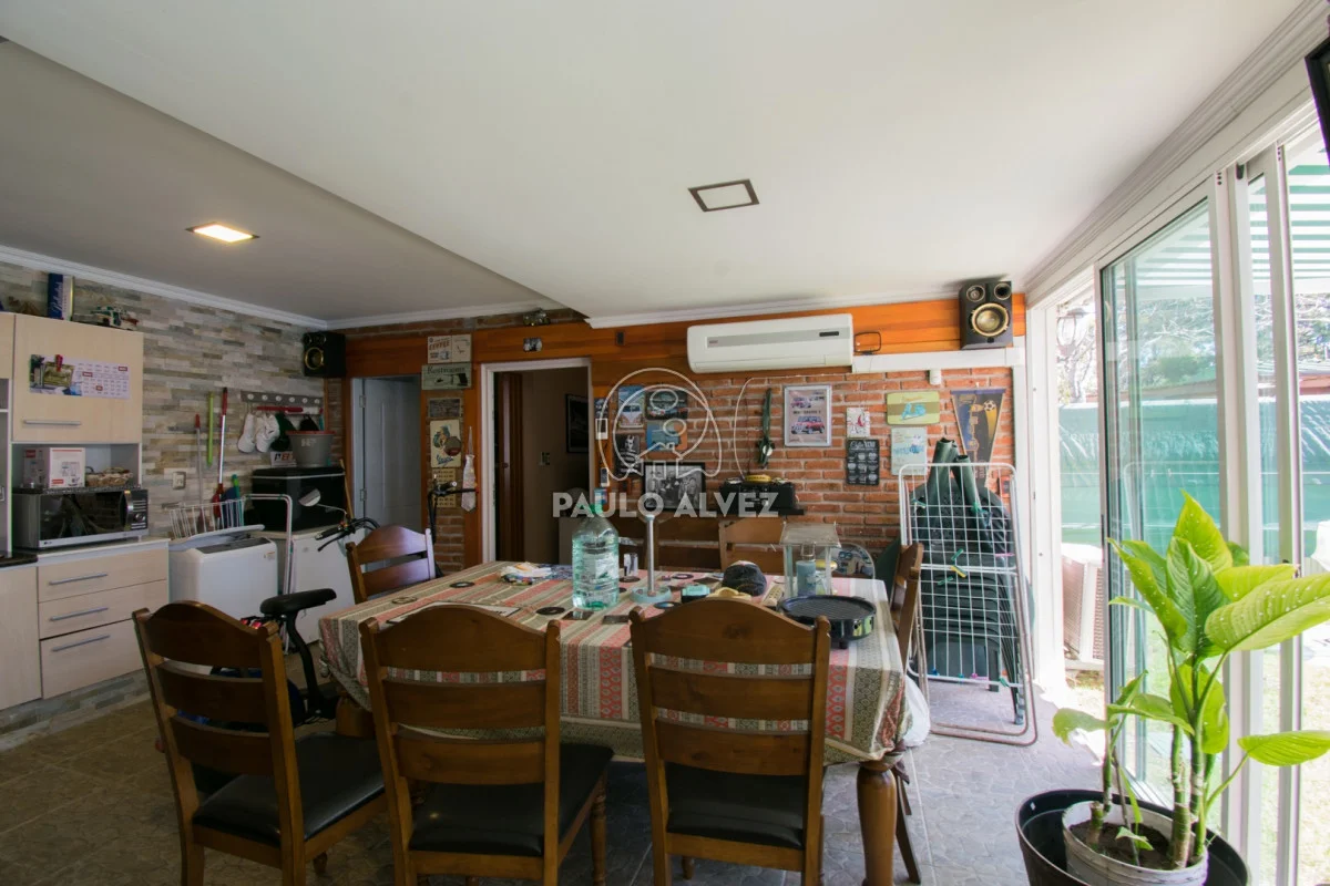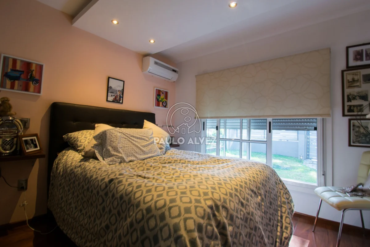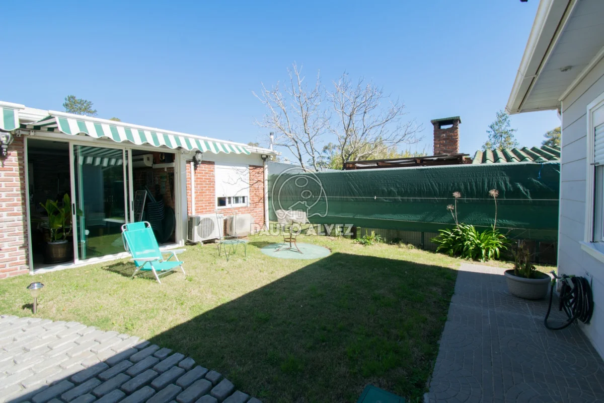 Propiedad ubicada en balneario Playa Grande, rodeada de un agradable entorno. 68m² construidos en steel framing, revestida con placas de fibrocemento. Emplazada sobre una superficie de 360m². Distribuida en living comedor, cocina semi integrada, con muebles bajo mesada y aéreos. Dos dormitorios, principal en suite. Segundo baño completo. Aberturas en aluminio, cortinas de enrollar. Aire acondicionado en todos los ambientes. Al fondo, Barbacoa cerrada, de construcción tradicional, techo de isopanel y cielorraso de yeso, con tercer dormitorio y baño completo. Garage con portón eléctrico. Cerco perimetral. Se ofrece amueblada. Comuníquese por más información.