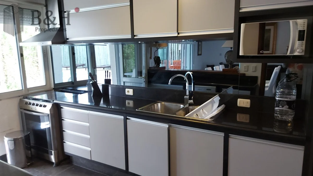 Cuenta con seis dormitorios, cuatro de ellos en suite y casa de huéspedes con otro dormitorio. Gran living comedor, con muy buena luz natural. Amplia cocina definida, bien equipada. Con AC en todos los ambientes.