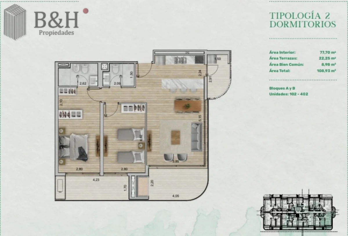 R$ ~1,380,000 / + U$S 380 gastos comuns / U$S 3,667/m2