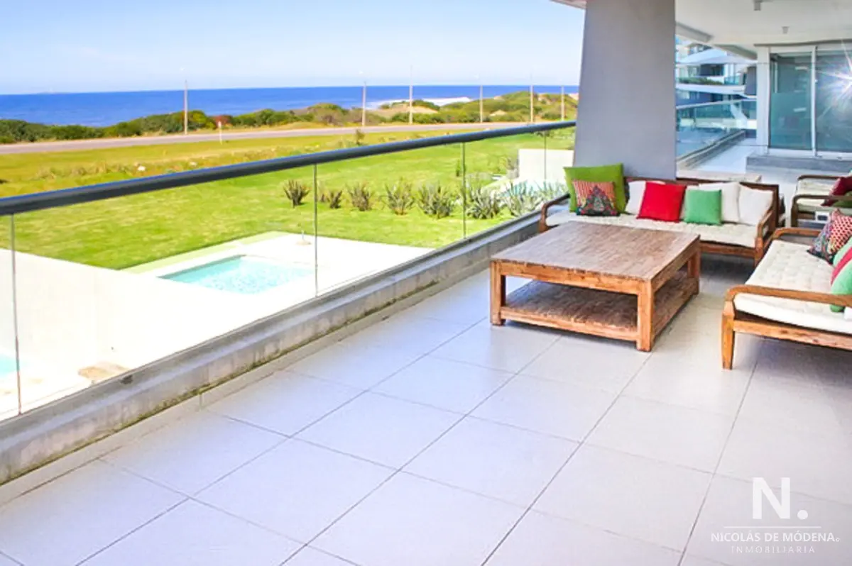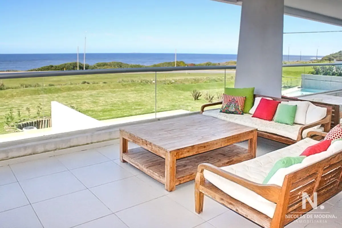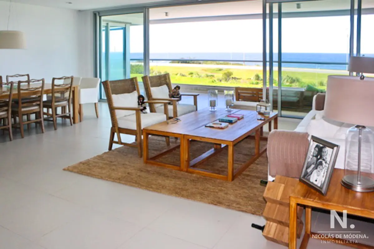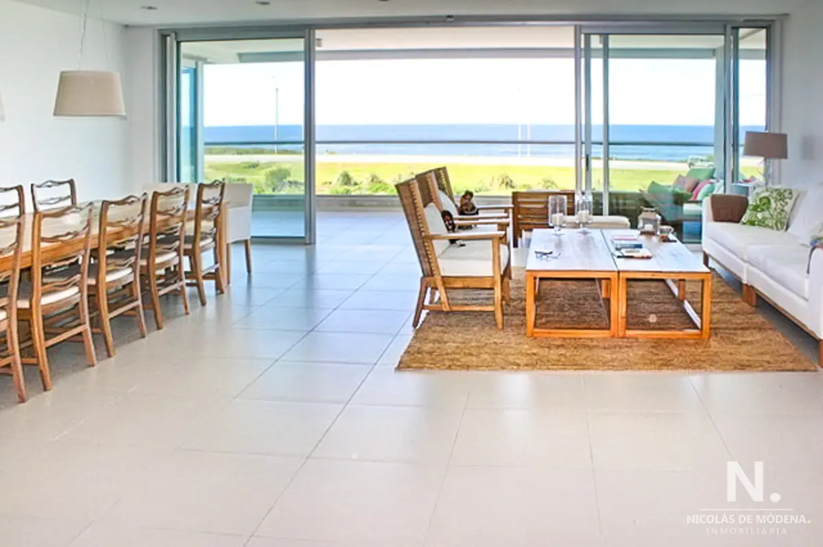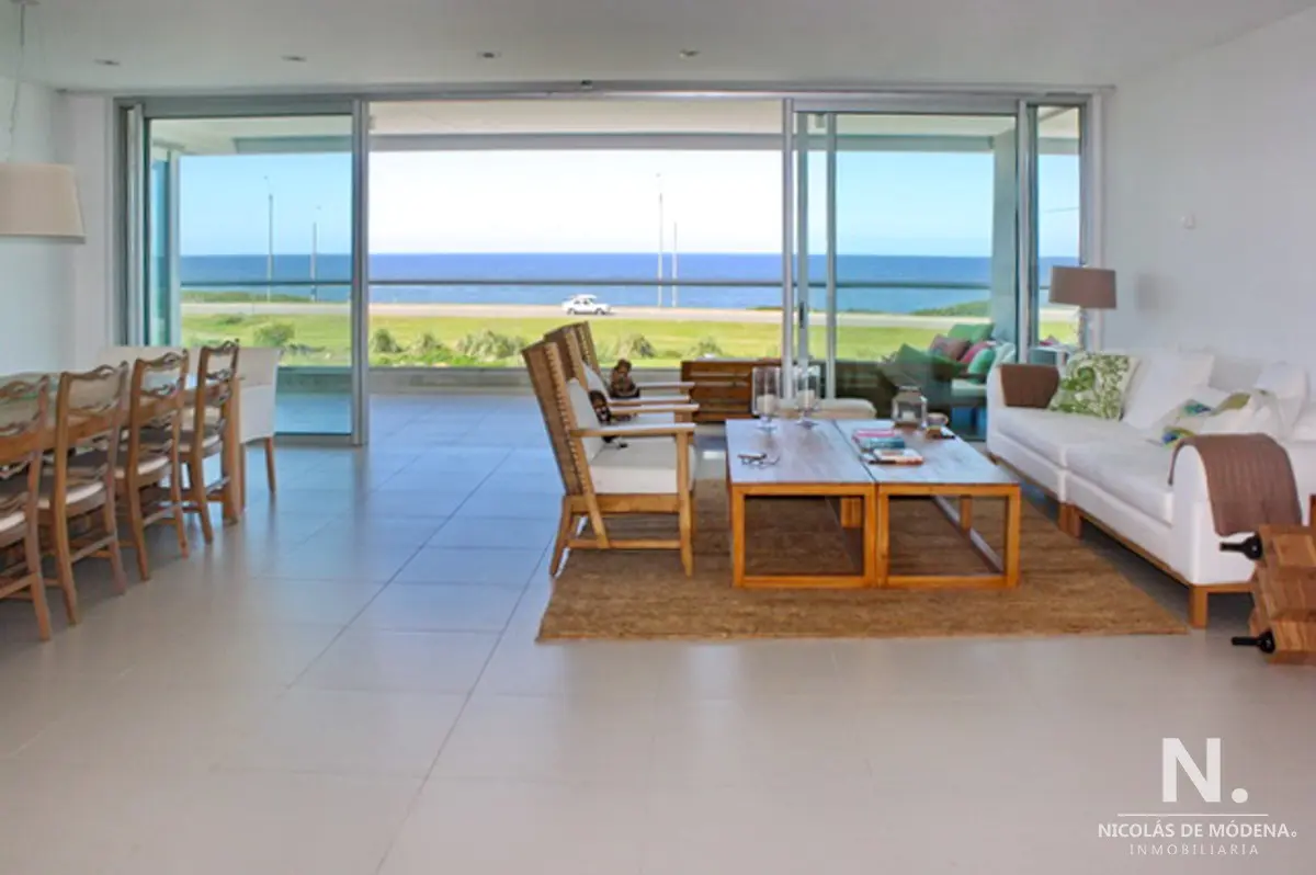 Lindo apartamento exclusivo, semi-andar na Playa Brava com vistas imbatíveis do mar. Esta unidade dispõe de uma sala espaçosa e luminosa, com acesso a um amplo terraço com vista direta para o mar. Suíte master na frente com vista para o mar, possui closet e jacuzzi. 3 quartos com duas camas individuais cada, WC grande e confortável cozinha definida com ilha, saída para terraço com churrasqueira própria. Unidade de serviço com banheiro. Excelente equipamento e decoração de uma conceituada casa de mobiliário. Possui 2 garagens e arrecadação.