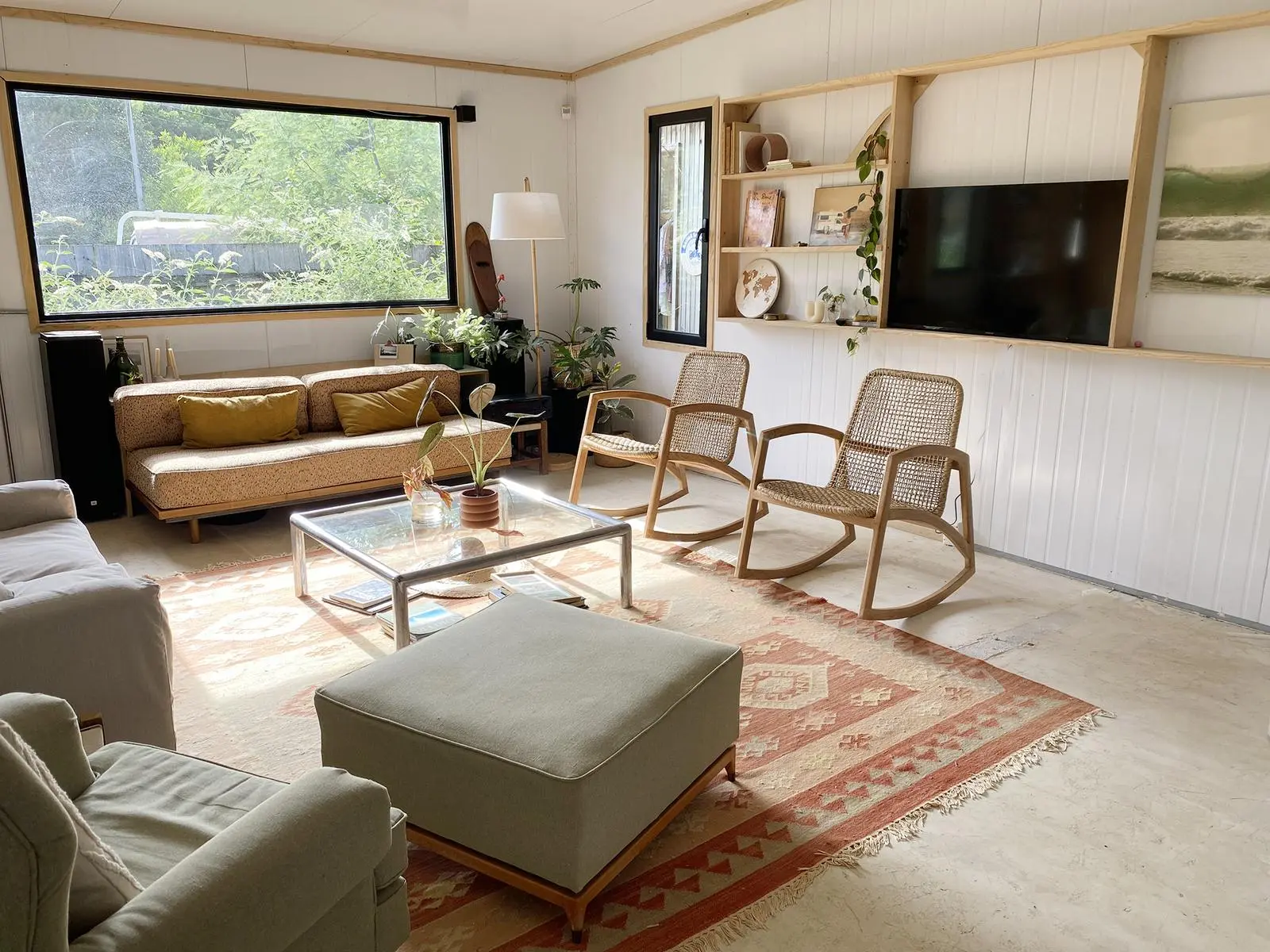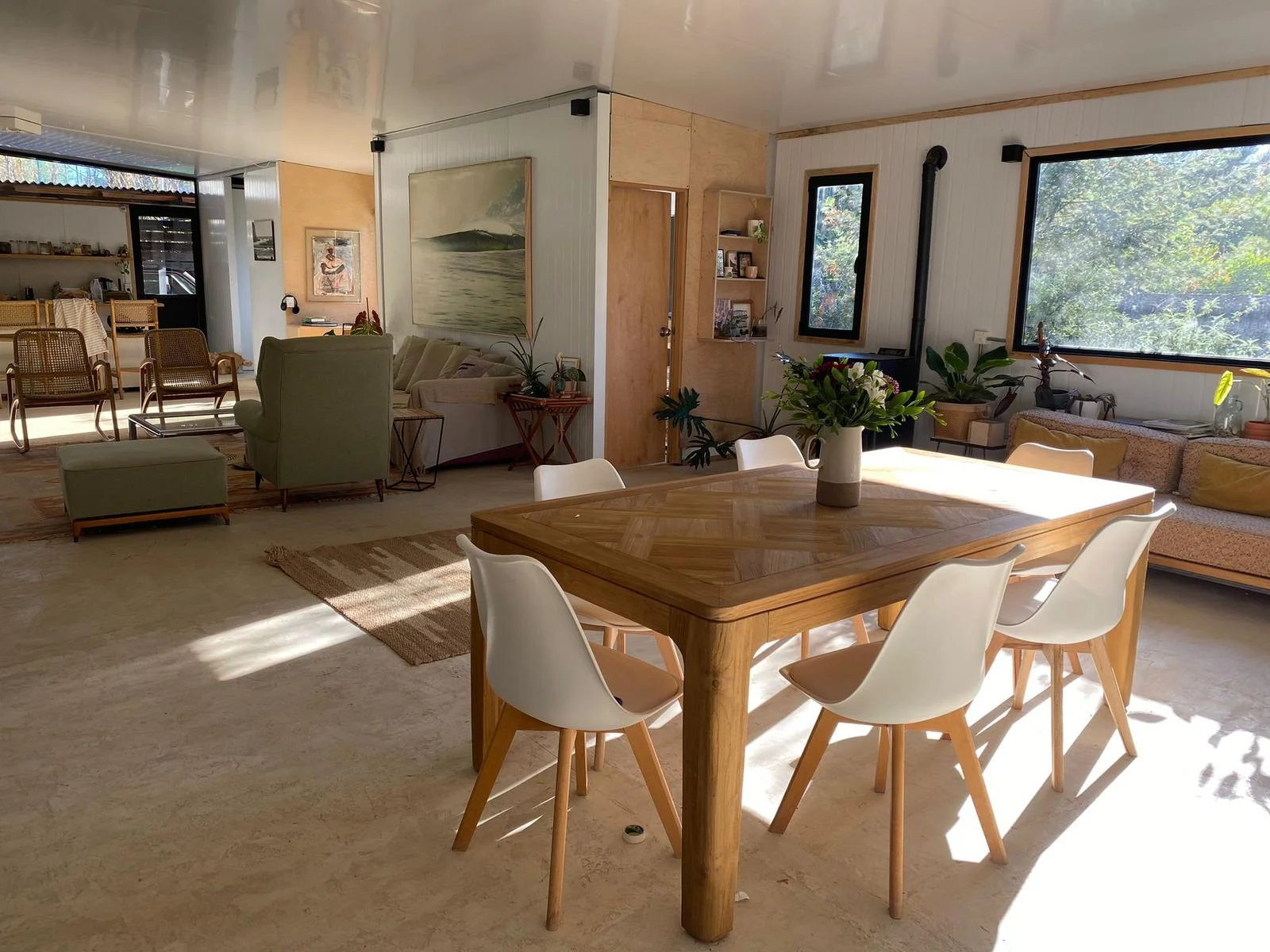 Spacious living, dining, and kitchen area integrated into a modern, bright, and highly functional space.