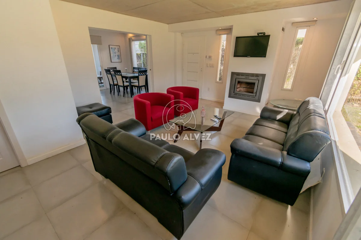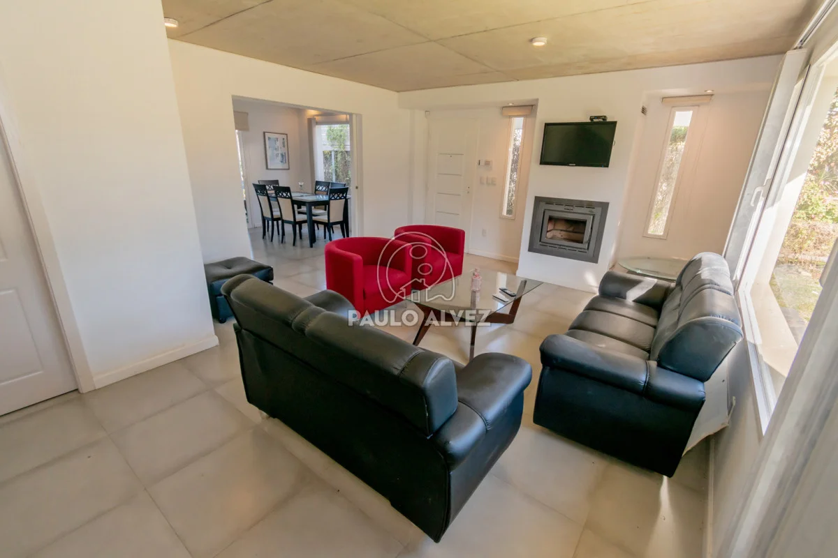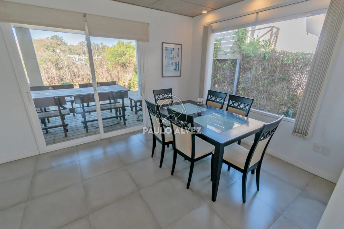 Estilo, diseño y ubicación inigualables! A pocos metros de la playa, rodeada por un entorno tranquilo y natural. Sobre terreno de 400 m² construcción en régimen de propiedad horizontal, 129 metros edificados en dos plantas. Ambientes distribuidos en luminoso living con estufa a leña( Alto Rendimiento), tv led con DirecTv, baño social. Cocina funcional con desayunador, comedor integrado. Escalera a planta alta, pasillo con acceso a terraza. Primer y segundo dormitorios completos con placares, baño completo, dormitorio matrimonial en suite con acceso a la terraza. Todos los dormitorios con aire acondicionado. La propiedad cuenta con alarma. Patio con parrillero cubierto, ideal para disfrutar en familia, cerco perimetral, cochera para vehículos. Consulte por más información.