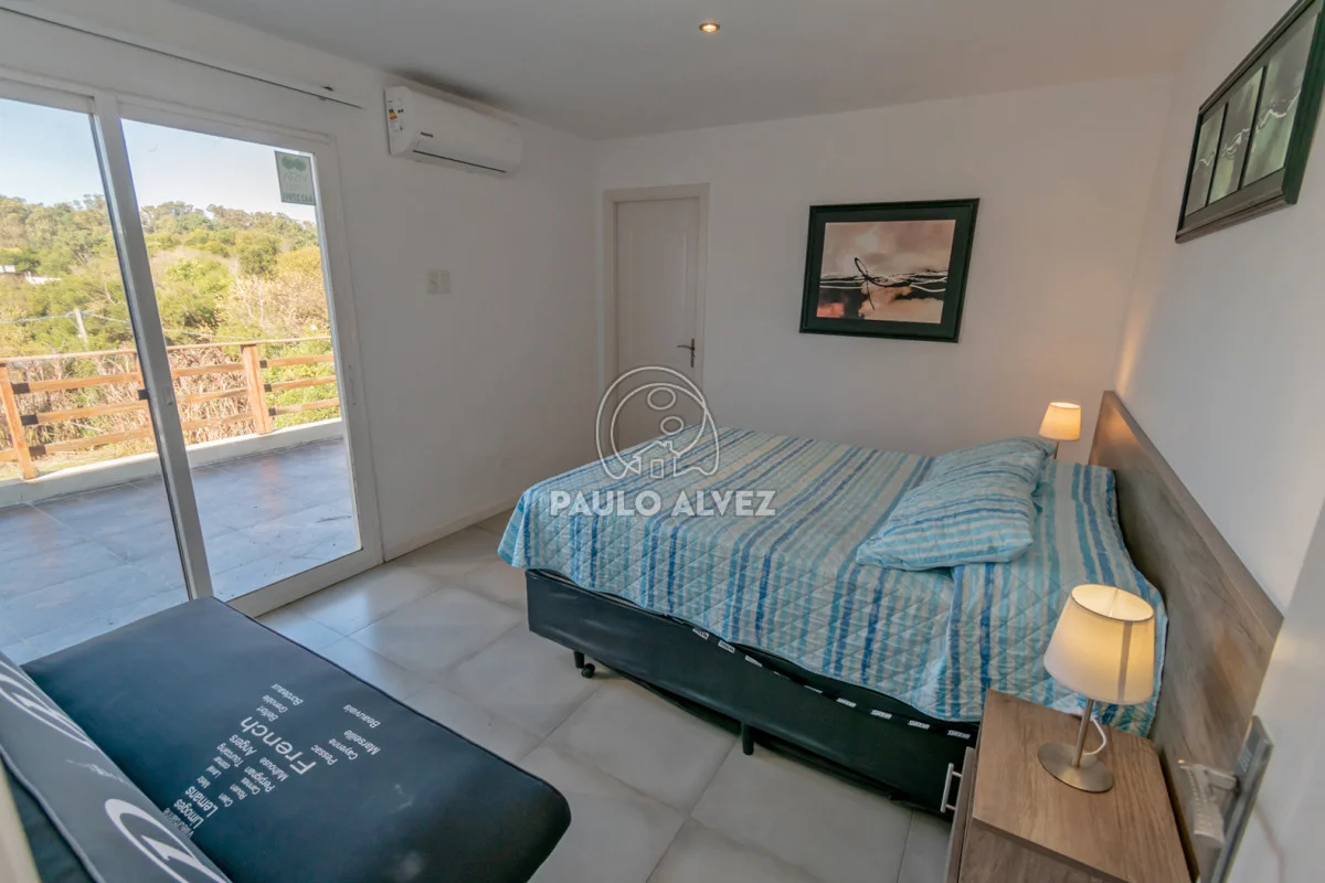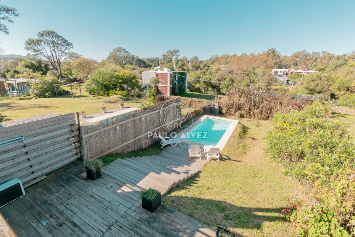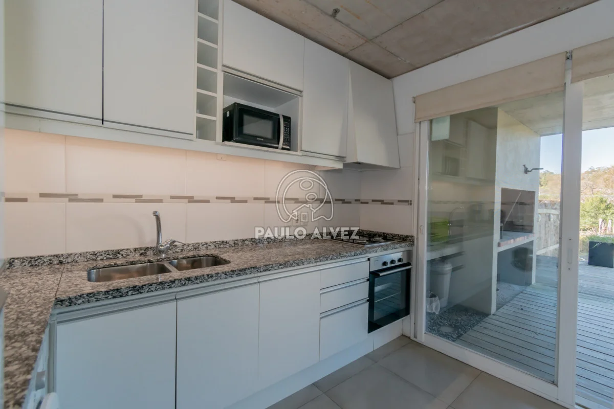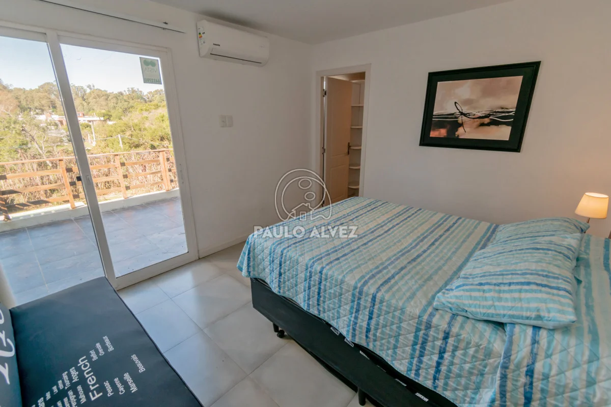 Estilo, diseño y ubicación inigualables! A pocos metros de la playa, rodeada por un entorno tranquilo y natural. Sobre terreno de 400 m² construcción en régimen de propiedad horizontal, 129 metros edificados en dos plantas. Ambientes distribuidos en luminoso living con estufa a leña( Alto Rendimiento), tv led con DirecTv, baño social. Cocina funcional con desayunador, comedor integrado. Escalera a planta alta, pasillo con acceso a terraza. Primer y segundo dormitorios completos con placares, baño completo, dormitorio matrimonial en suite con acceso a la terraza. Todos los dormitorios con aire acondicionado. La propiedad cuenta con alarma. Patio con parrillero cubierto, ideal para disfrutar en familia, cerco perimetral, cochera para vehículos. Consulte por más información.