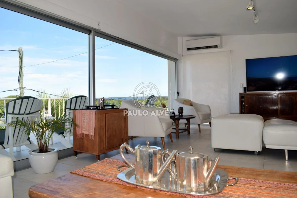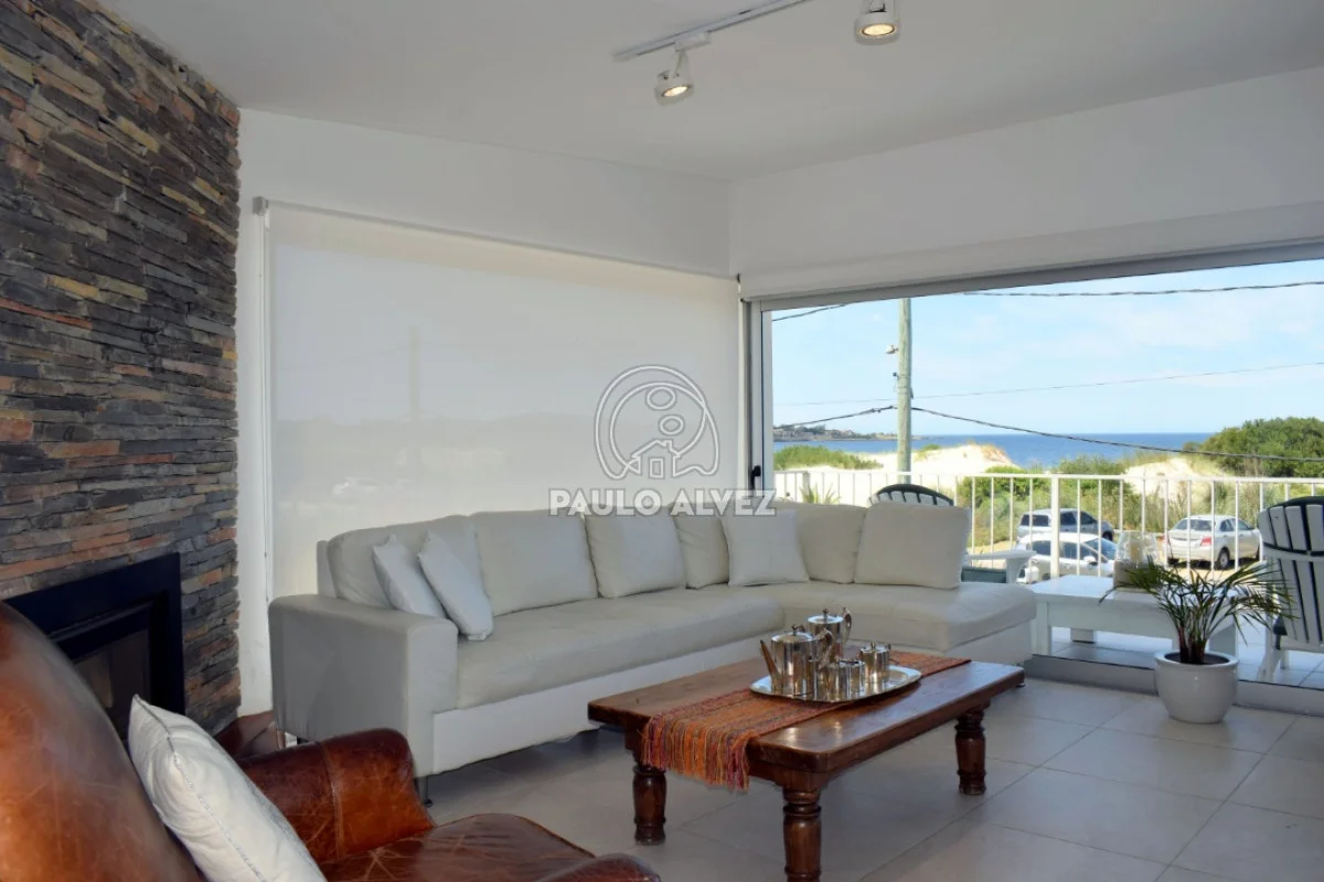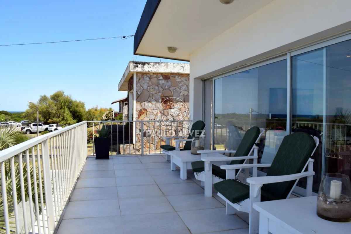 Situada en Proa al Mar, una de las zonas más codiciadas y cotizadas del balneario, propiedad de gran porte de construcción tradicional de estilo clásico. Comodidades para 10 personas distribuidas en dos plantas independientes. Casa principal en planta superior con balcón al frente para disfrutar de la vista que la rodea, compuesta en su interior por espacioso living con vista panorámica al mar con estufa a leña, baño social completo, comedor con acceso al patio, cocina completa con office, segundo baño social completo y tres dormitorios matrimoniales (uno de ellos en suite con acceso directo a la piscina). Barbacoa y amplia piscina exterior en un amplio jardín parquizado con vista al mar. Casa en planta baja distribuida en amplio living al frente con amplios ventanales, baño completo, dormitorio matrimonial y segundo dormitorio con dos camas simples. Todos los ambientes cuentan con aire acondicionado. Garage cerrado para 3 vehículos. Por más información contáctenos.