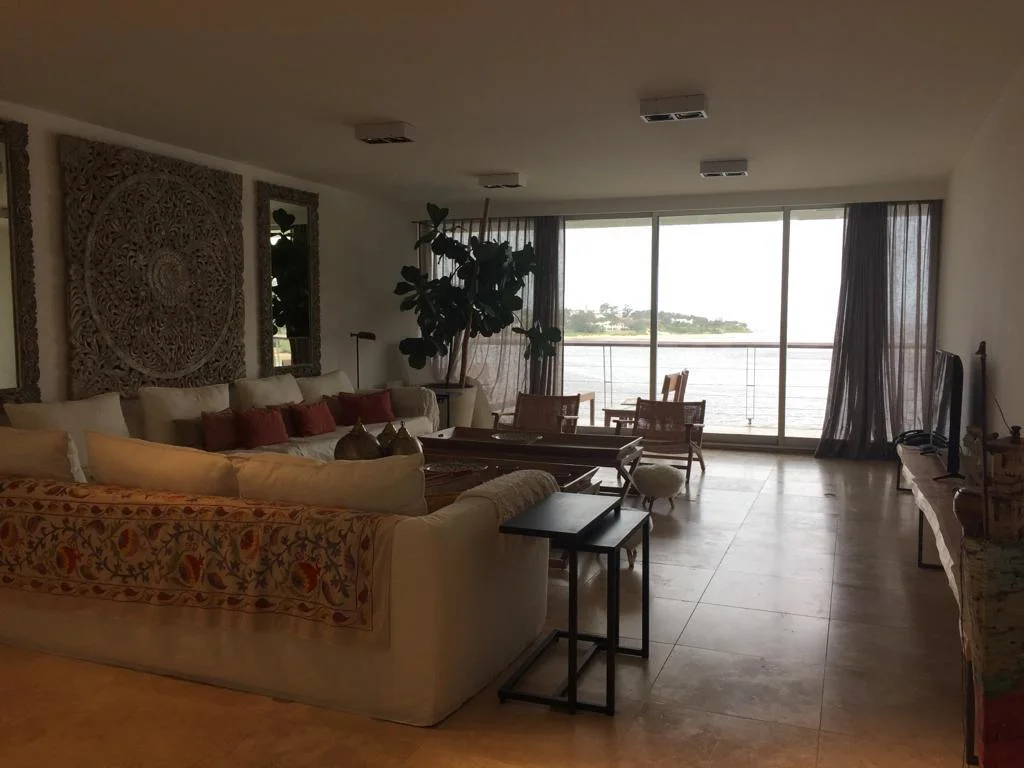 La Barra Alquiler Muy buen departamento en el Edificio Delamar con 4 dormitorios,dos en suite y 2 que comparten un baño. La suite principal con amplio vestidor y espectacular vista al mar.Espacios comodos y un living comedor grande que abre a un balcon con una vista a la Desembocadura unica. Comoda cocina muy bien equipada,comedor diario y cuarto de servicio mas lavadero. Dos cocheras,seguridad 24 hrs,piscina,gym y servicio de mucama diario.