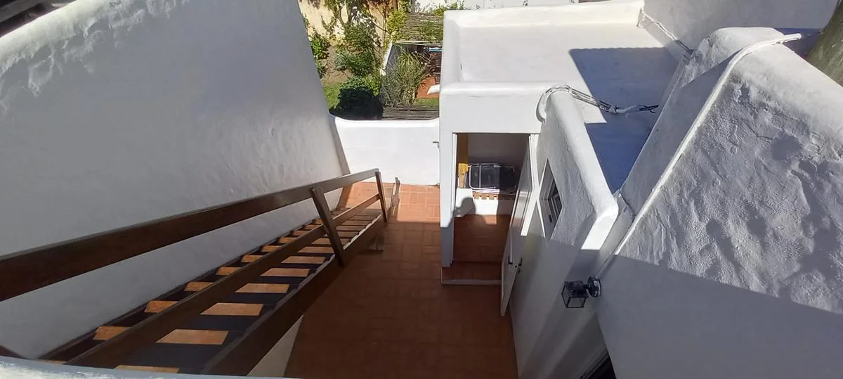 A la terraza se accede por una escalera y es donde está el parrillero con una mesa para comer afuera.