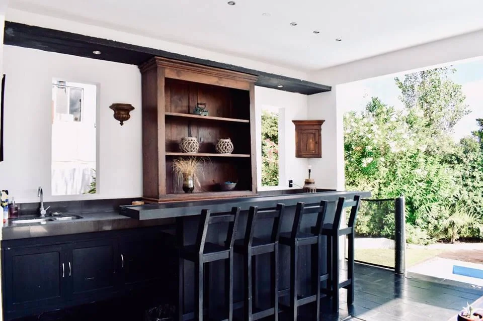 It features a pool, barbecue area, and bar surrounded by flowers. The location of this property allows for walking to the beaches as well as to all the restaurants and boutiques that La Barra has to offer.
