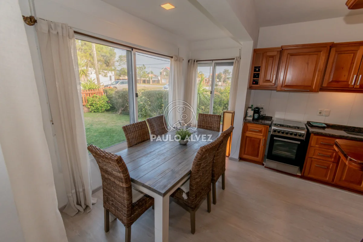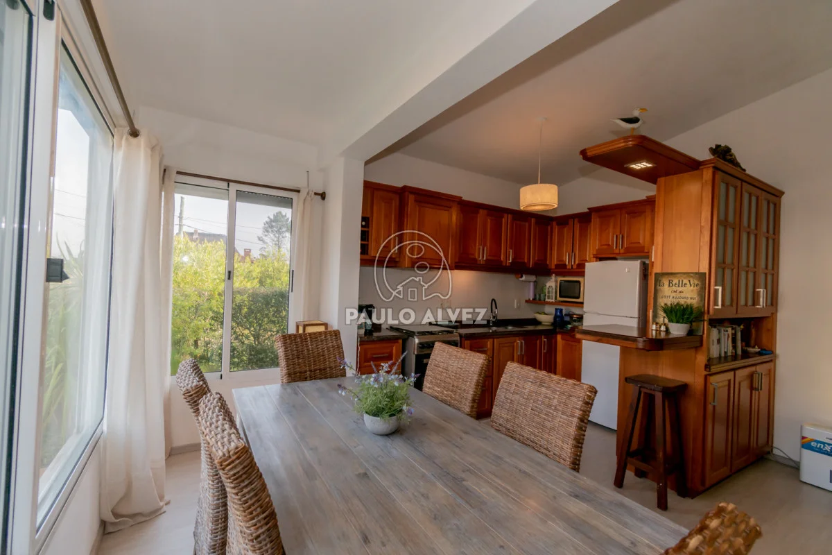 Hermosa propiedad en barrio Portales, a solo 200 metros del mar. Ubicada en un entorno tranquilo y arbolado, ideal tanto para vivir todo el año como para disfrutar en vacaciones. 488 m² de construcción tradicional de excelente calidad: doble pared de ladrillo, techo de losa con tejas francesas, aberturas y persianas en PVC. Cuenta con 102 m² edificados. Al ingresar, nos recibe un espacio actualmente destinado a taller de pintura o estudio, que puede adaptarse a diversos usos según las necesidades. Luego se accede a un luminoso living con cocina-comedor integrado, equipada con muebles bajo y alto mesada en madera de alta calidad. Dispone de dos dormitorios, siendo el principal amplio y muy luminoso. Baño completo con mampara de vidrio. Además, barbacoa con parrillero y baño social para mayor comodidad. Desde allí se accede a un hermoso jardín, ideal para compartir en familia o con amigos. Coordina tu próxima visita.