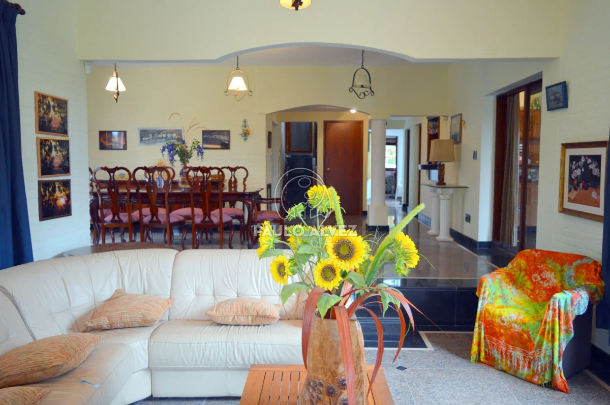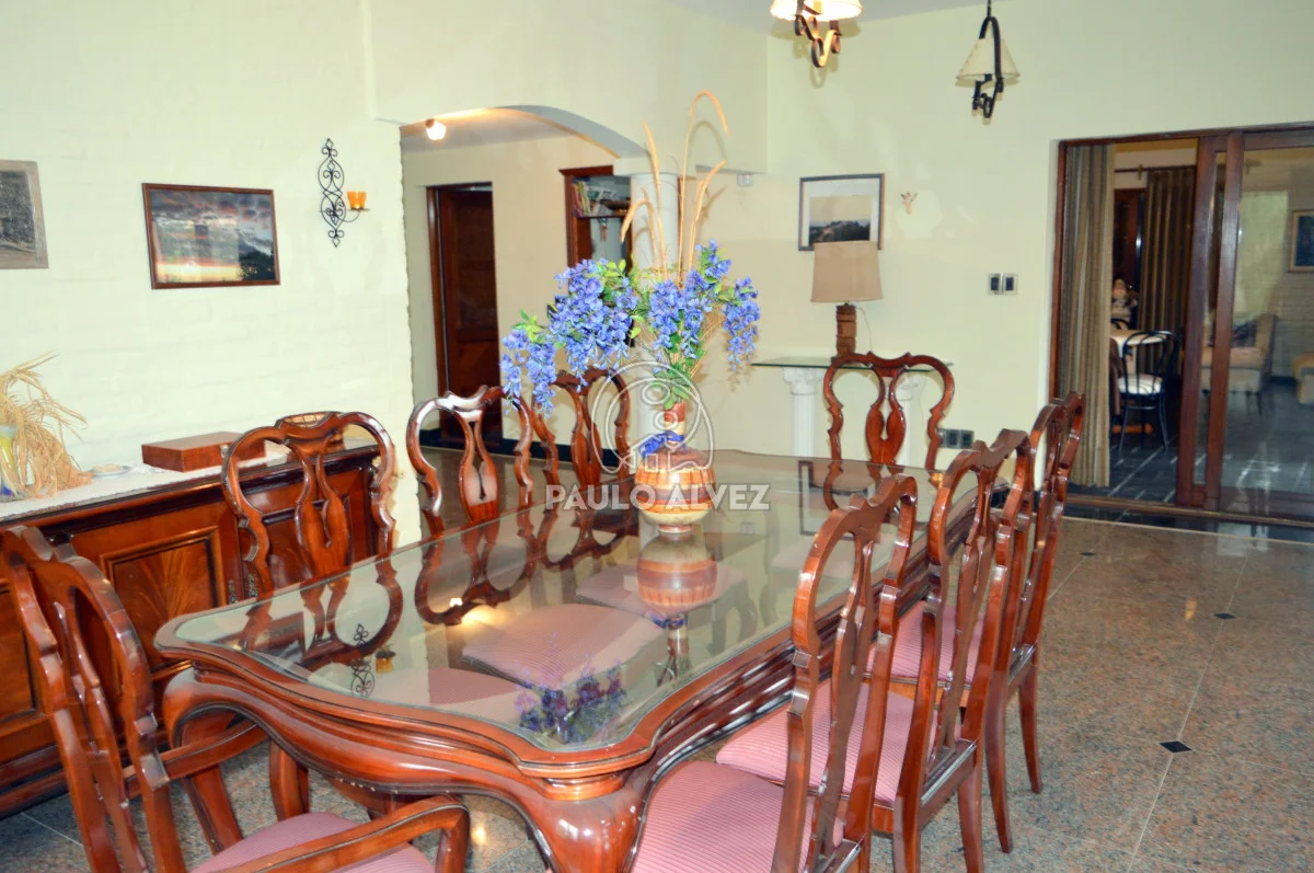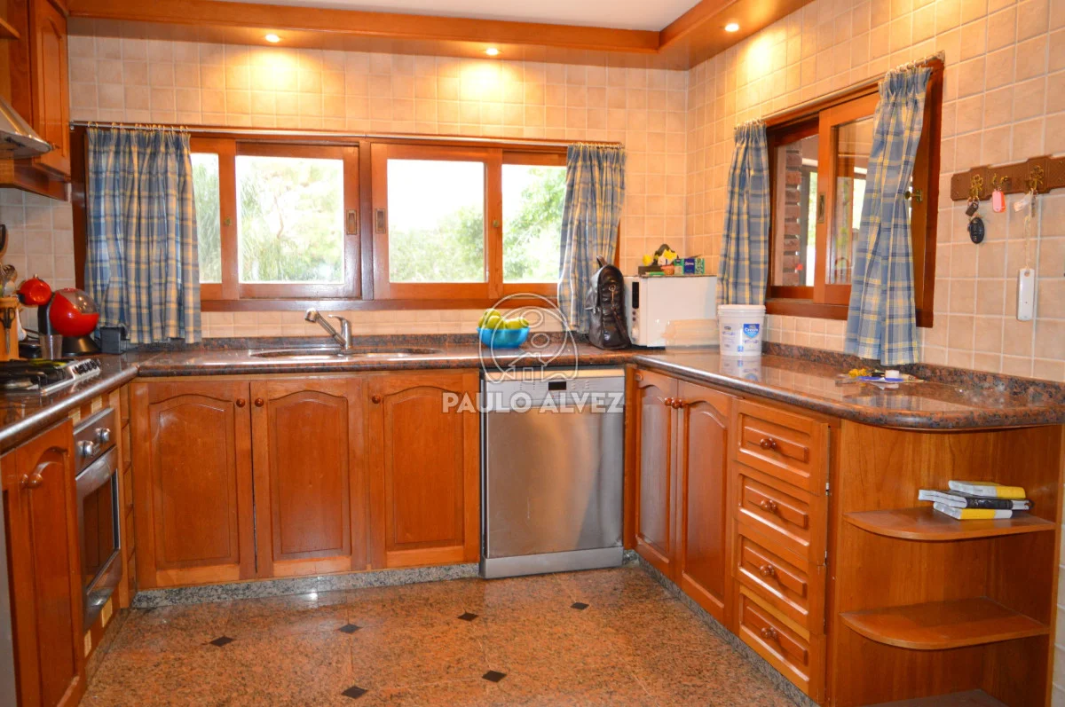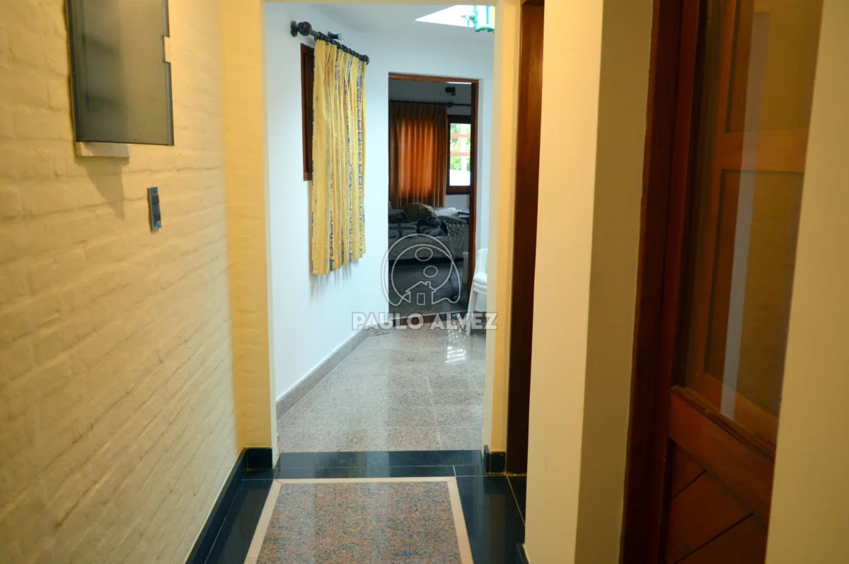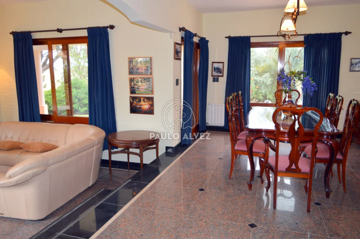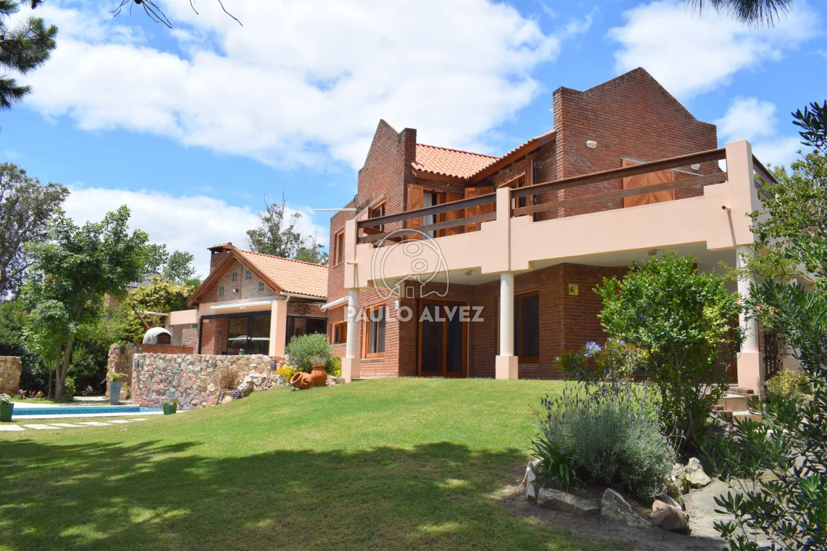 Propiedad de alto porte situada en Proa al Mar, a 100 m del mar. Entorno agradable y privilegiado. 404 m² de construcción tradicional de doble pared de ladrillo con techo de losa revestido en teja, emplazados sobre dos padrones unificados con una superficie total de 1255 m². Hermoso jardín delantero parquizado, doble senda de entrada. Al ingreso, hall de entrada que conduce a living comedor con estufa a leña luminoso. Pasillo distribuidor a la derecha de la puerta de ingreso, a dos dormitorios con placares empotrados (primero con aire acondicionado) y un baño completo. Ambiente intermedio que comunica ambas alas de la propiedad (oficiaba de cocina antiguamente). Acceso por puerta ventana a comedor y living principales, luminosos y amplios, definidos por estructura de arcadas, desnivel y columnas que le dan otorgan gran impronta que se complementa con los pisos de monolítico. Cocina completa definida, con muebles bajo y sobre mesada y acceso a barbacoa. Segundo baño completo y sala de estar con estufa a leña de alto rendimiento, conectada con la barbacoa. A planta alta, cómoda escalera en granito negro absoluto con descanso y pasamanos. Tercer baño completo, dormitorio principal con vestidor en suite con jacuzzi y cuarto dormitorio; ambos con aire acondicionado y acceso al balcón con vista al mar y a la piscina. Pisos de segundo nivel de mármol y aberturas en madera dura en su totalidad. Barbacoa espaciosa cerrada con amplio parrillero y horno a leña en terraza. Parque arbolado y jardín cuidado enmarcan la piscina con cascada, cómodo pasamanos y luminarias. Detalles en piedra, plantas ornamentales y senderos configuran un entorno acogedor donde se sitúa la misma. Cochera delantera con acceso directo a la barbacoa, depósito y garage cerrado con duchero y baño de servicio. Por más información contáctenos.