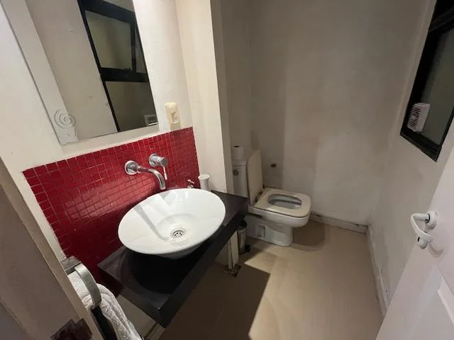 Un dormitorio en suite en planta baja que se utiliza como dependencia de servicio y baño un social (toilette).