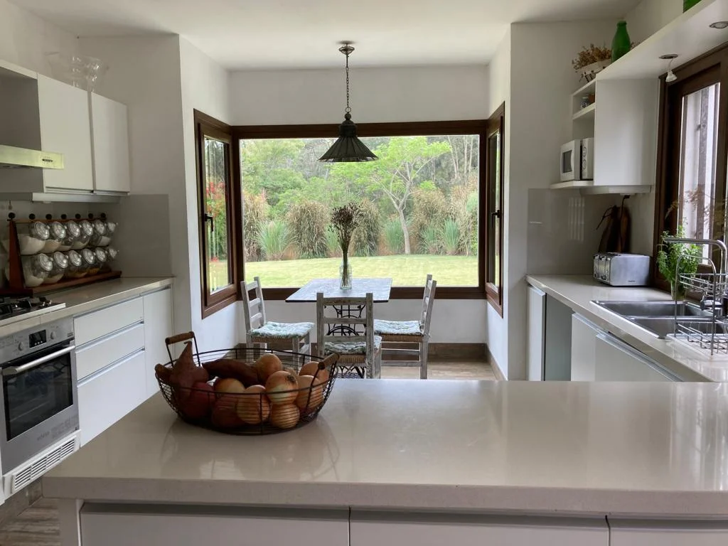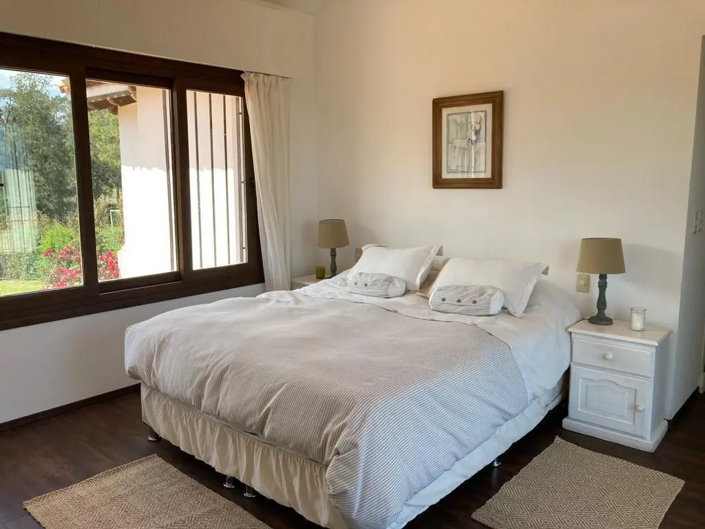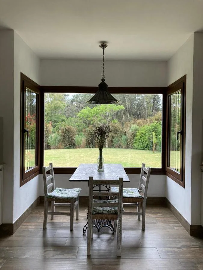 Casa de 4 dormitorios , dos son en suite y dos comparten un baño. Toilette muy lindo. Jardín con galería techada en donde se encuentra el parrillero . Amplia cocina con salida al exterior y un living comedor con muy linda vista. Lavarropas y secarropas. Dependencia de servicio para una persona.