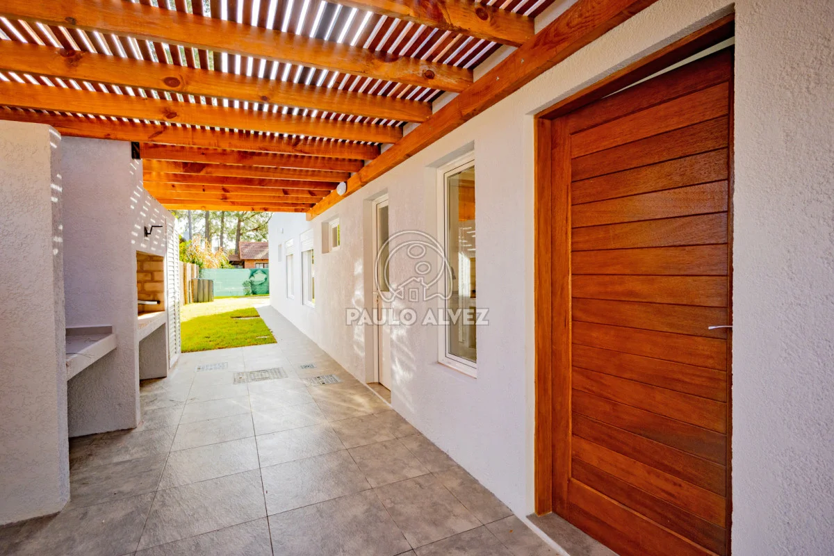 ¡A estrenar en el exclusivo Barrio Portales! Ubicada en una de las zonas más codiciadas por su entorno residencial y cercanía al mar, esta opción es ideal tanto para vivienda permanente como para inversión. Predio de 243 m² y 80 m² edificados en construcción mixta, techo de isopanel y aberturas en aluminio. Distribuida en una sola planta, ofrece un diseño moderno y funcional: un amplio y luminoso living-comedor, cocina integrada con muebles sobre y bajo mesada, pasillo que conduce a un baño completo y tres dormitorios, uno de ellos en suite. En el exterior, una cómoda cochera da acceso al parrillero cubierto, ideal para reuniones y momentos al aire libre. En su fondo, un hermoso jardín con piscina. Una importante oportunidad en una zona en constante crecimiento, elegida por quienes valoran el confort, la tranquilidad y la cercanía al mar. Consúltanos para más información o para coordinar tu visita.