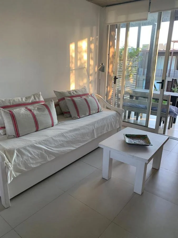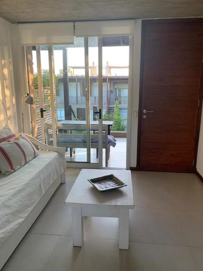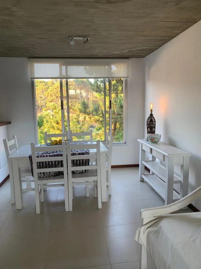 Mananantiales Alquiler Encantador departamento tipo casa a tres cuadras del mar en el corazón de Manantiales, playa Bikini. 1 dormitorio, baño con bañadera, muy buena cocina, living comedor con sofa cama, capacidad total 4 personas. Cochera cerrada, y una muy canchera terraza con parrilla, super equipado. Cuenta con servicio de mucama y recambio de ropa blanca cada semana, internet wi-fi, Aire acondicionado y alarma.
