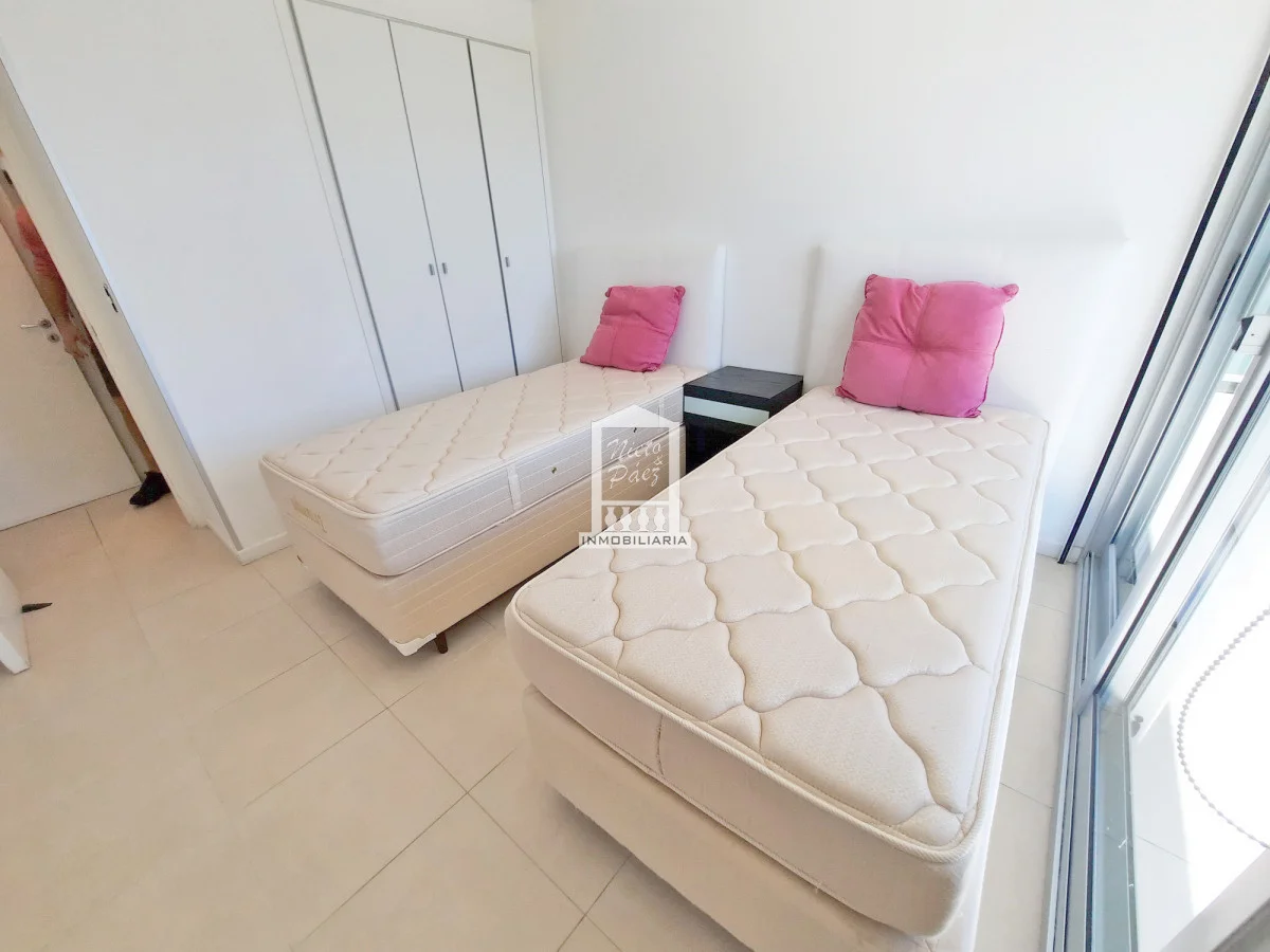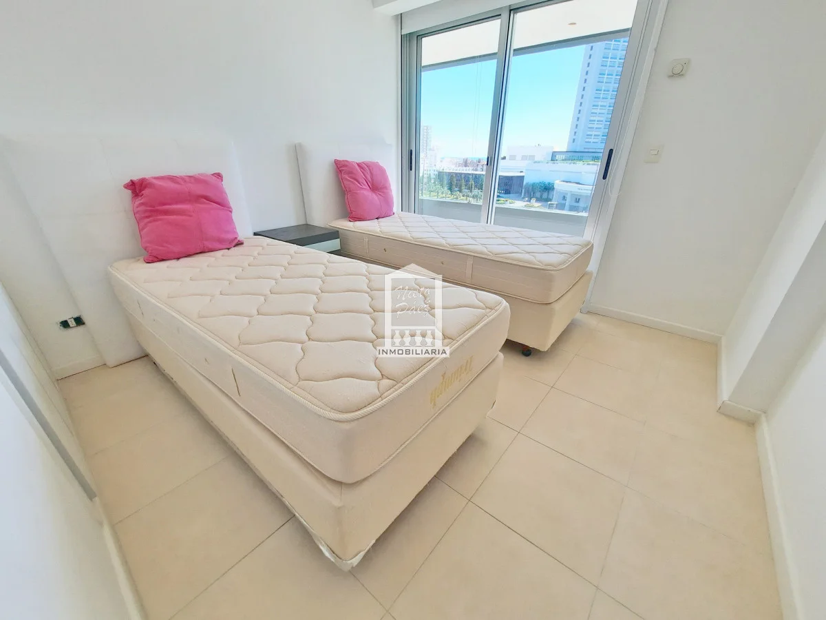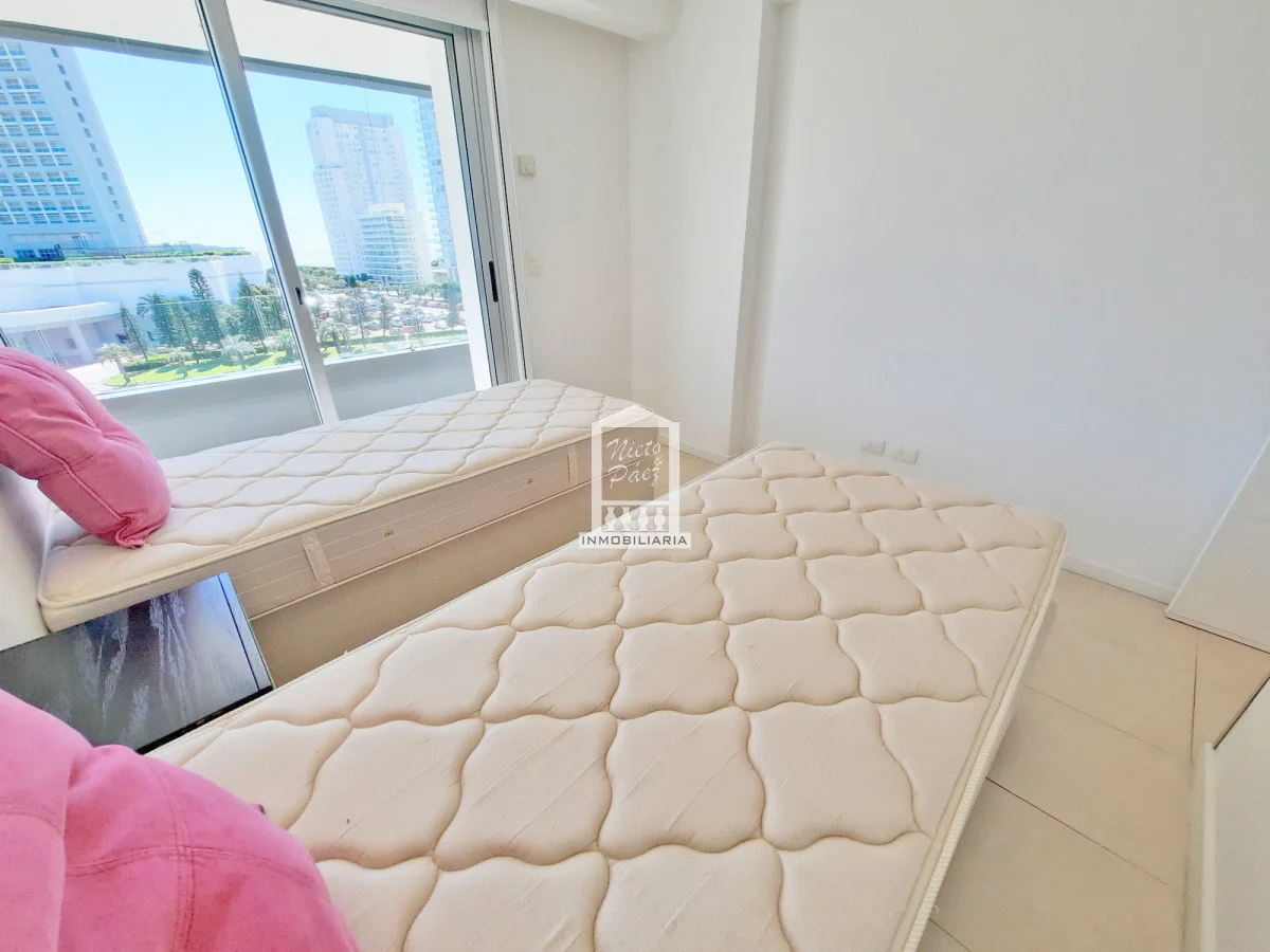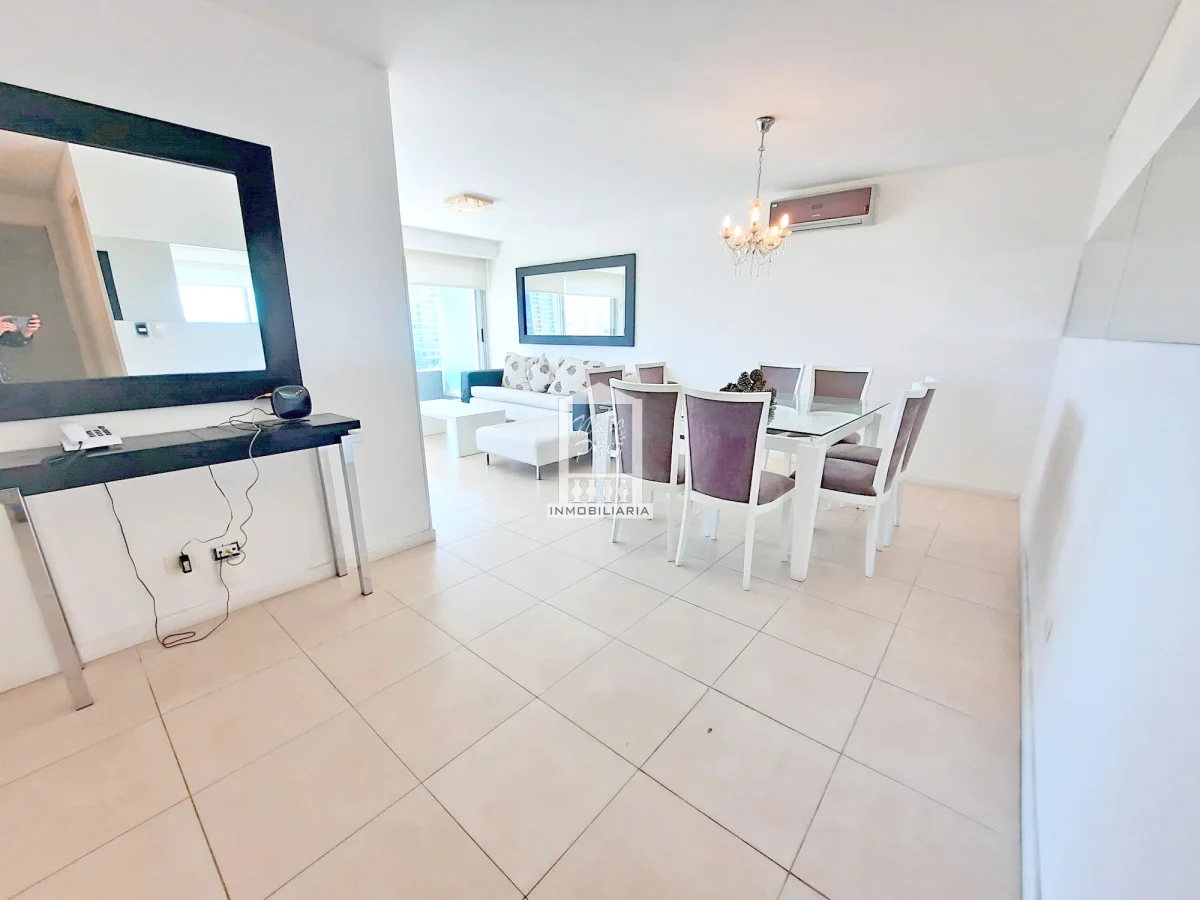Moderna torre con todos los servicios. 2 dormitorios con salida a la terraza. 2 baños completos, 1 en suite. Super amplia master suite con salida a la terraza. Super amplio living comedor. Aire acondicionado, losa radiante sectorizada Apartamento en Mansa - Punta del Este. Ubicado a 150 metros del Mar. Garaje en subsuelo Servicio de mucamas Servicio de playa Piscinas (abierta y cerrada) Barbacoas Sala de juegos Gimnasio y mucho más Referencia Interna : Tera-20263