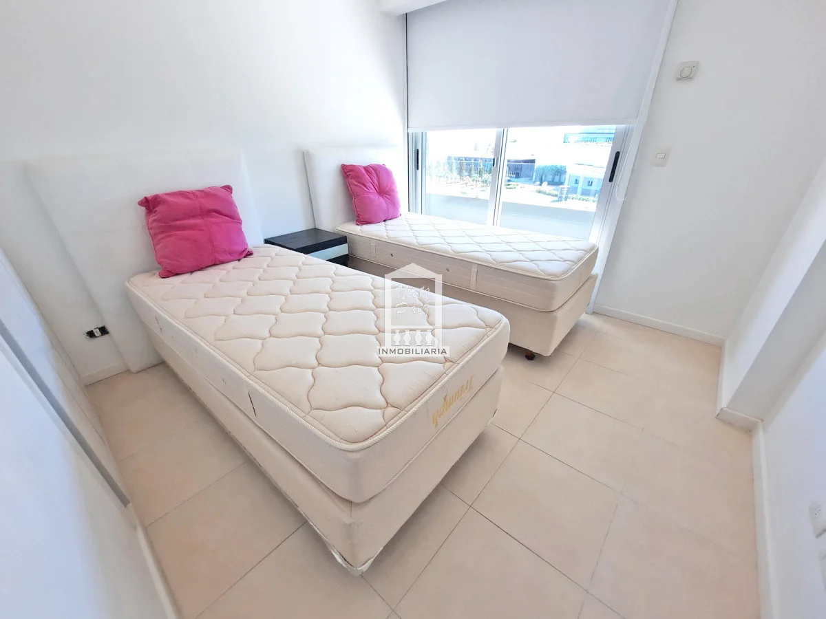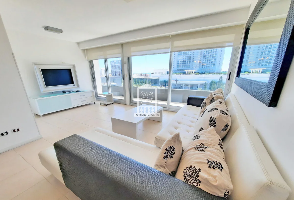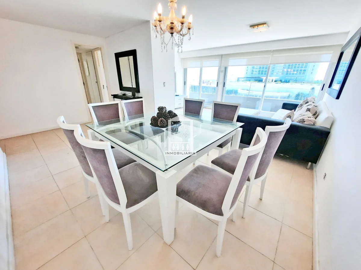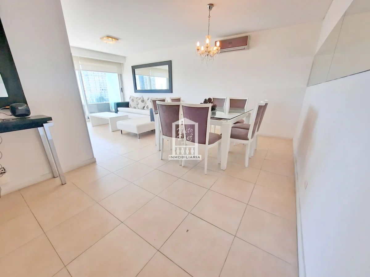 Moderna torre con todos los servicios. 2 dormitorios con salida a la terraza. 2 baños completos, 1 en suite. Super amplia master suite con salida a la terraza. Super amplio living comedor. Aire acondicionado, losa radiante sectorizada Apartamento en Mansa - Punta del Este. Ubicado a 150 metros del Mar. Garaje en subsuelo Servicio de mucamas Servicio de playa Piscinas (abierta y cerrada) Barbacoas Sala de juegos Gimnasio y mucho más Referencia Interna : Tera-20263