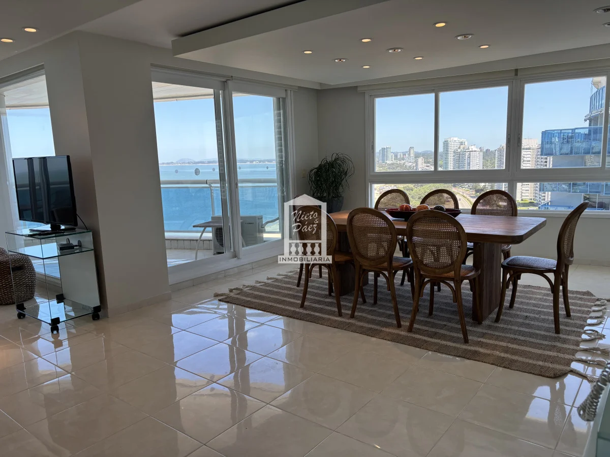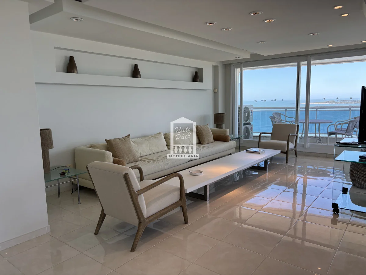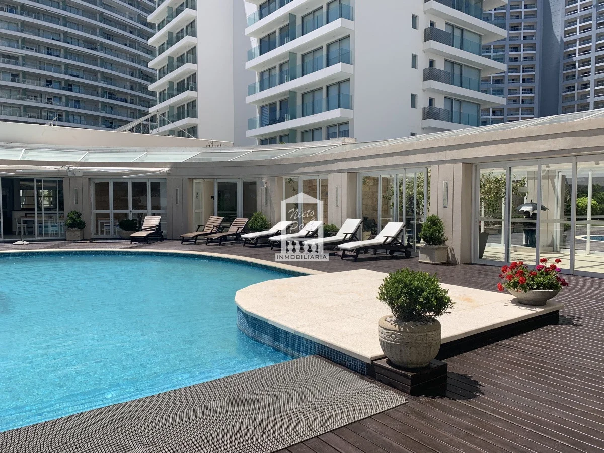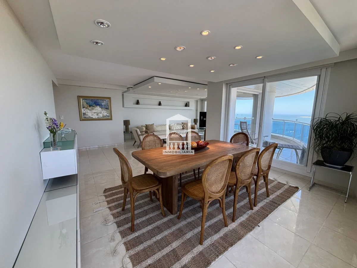 Millenium Tower! Edificio icono pegado a Enjoy Hotel en primera línea frente al mar. Piso alto, living comedor, gran balcón terraza, toilette, tres suites y dependencias de servicio. Garaje doble. Mucama diaria, wifi, cable. Excelentes servicios premium. Referencia Interna : Tera-39989