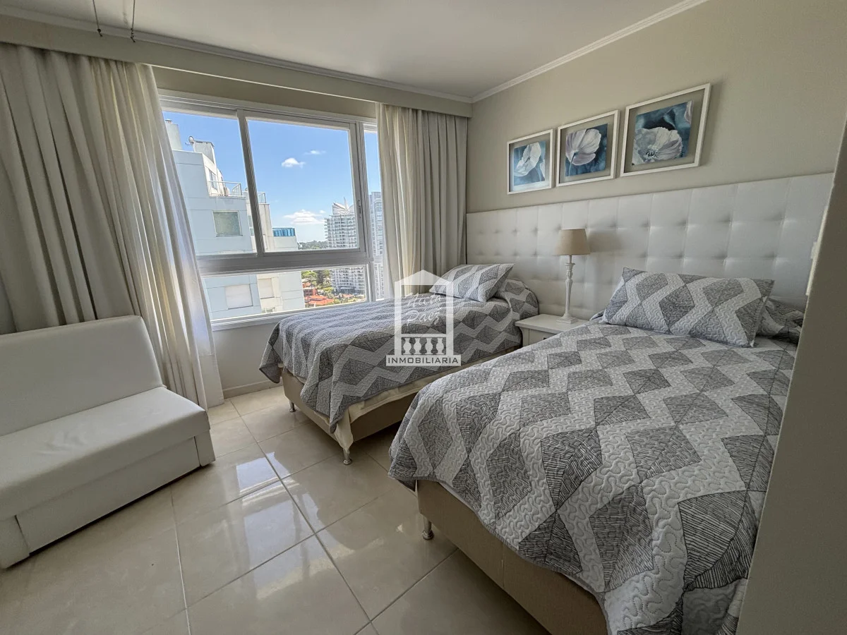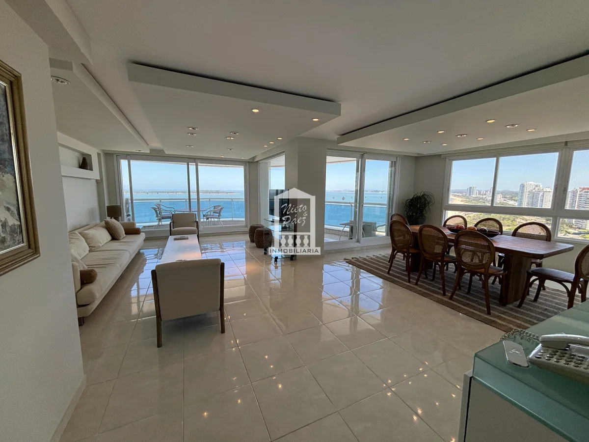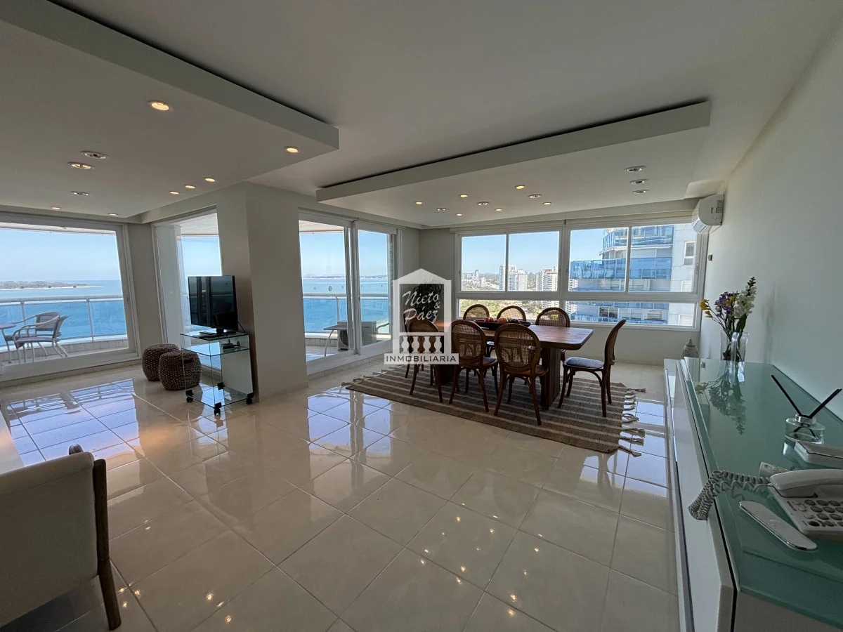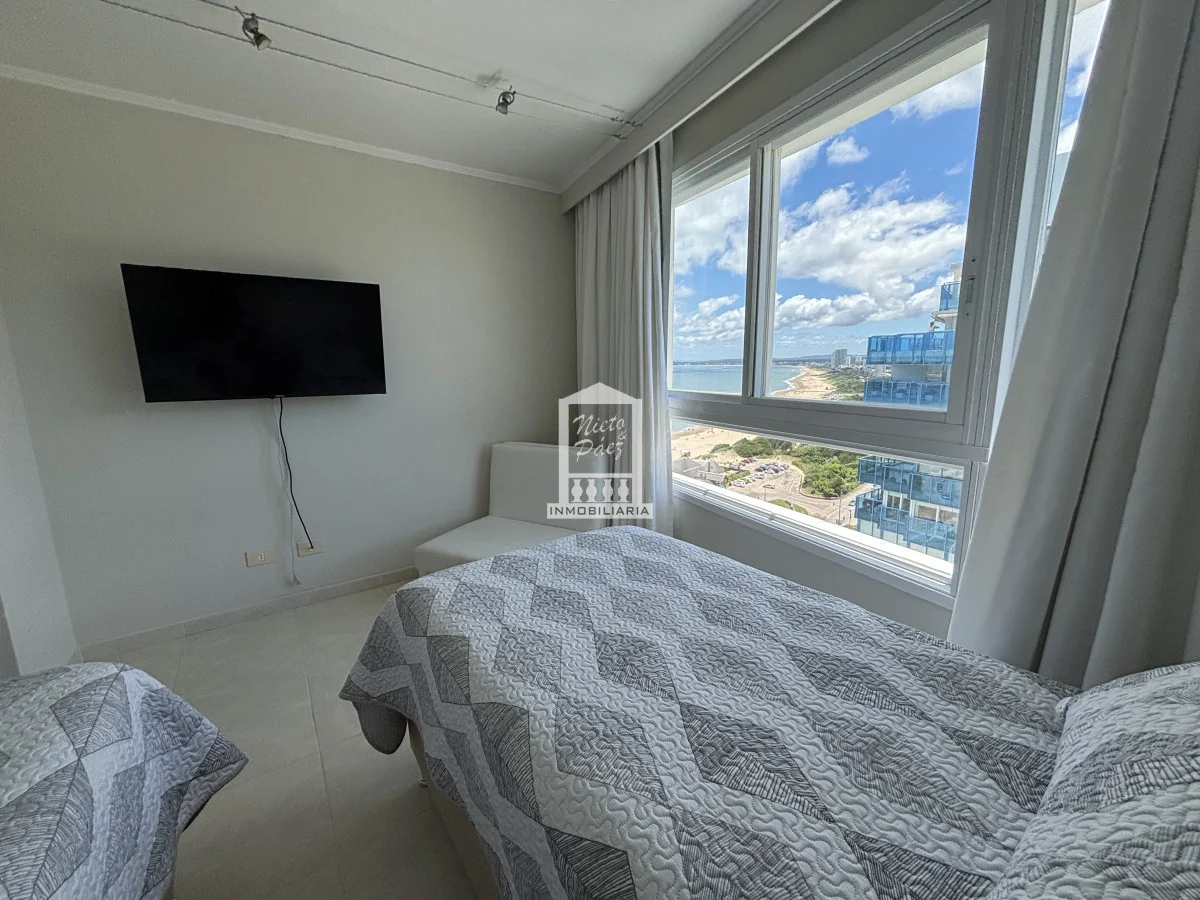 Millenium Tower! Edificio icono pegado a Enjoy Hotel en primera línea frente al mar. Piso alto, living comedor, gran balcón terraza, toilette, tres suites y dependencias de servicio. Garaje doble. Mucama diaria, wifi, cable. Excelentes servicios premium. Referencia Interna : Tera-39989