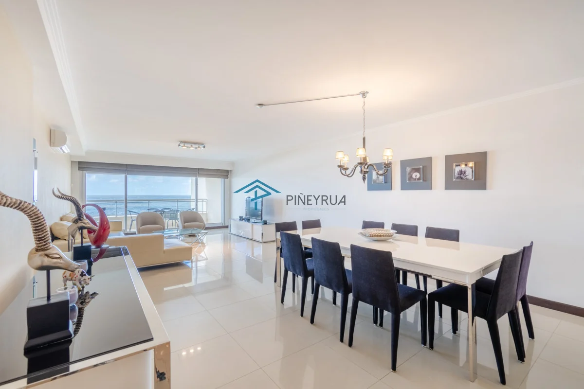 Unidad central desarrollada en 254 m2 con una amplia terraza al frente con vista maravillosa al Mar e Isla de Lobos. Living comedor de generosas dimensiones, toilette de recepción, gran cocina con isla muy disfrutable y salida a terraza lavadero contra frente más dependencia de servicio con baño. Tres cómodos dormitorios todos con sus baños en suite. Master suite con closet.