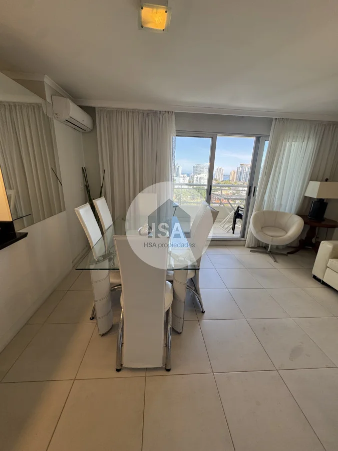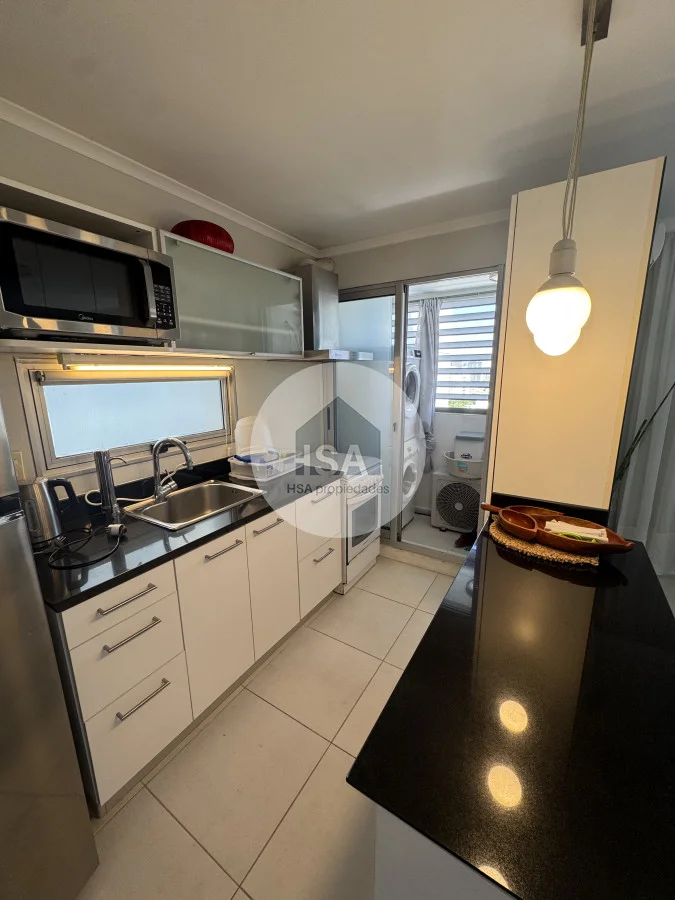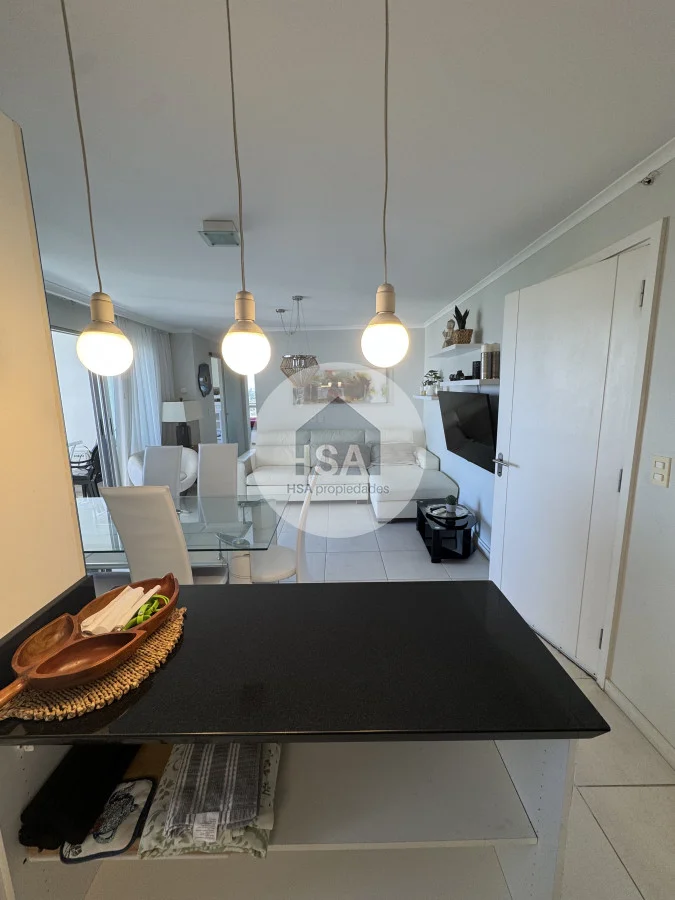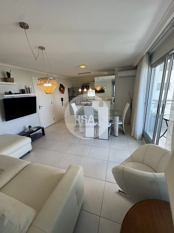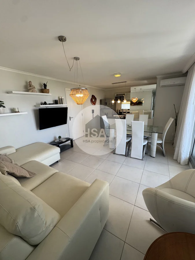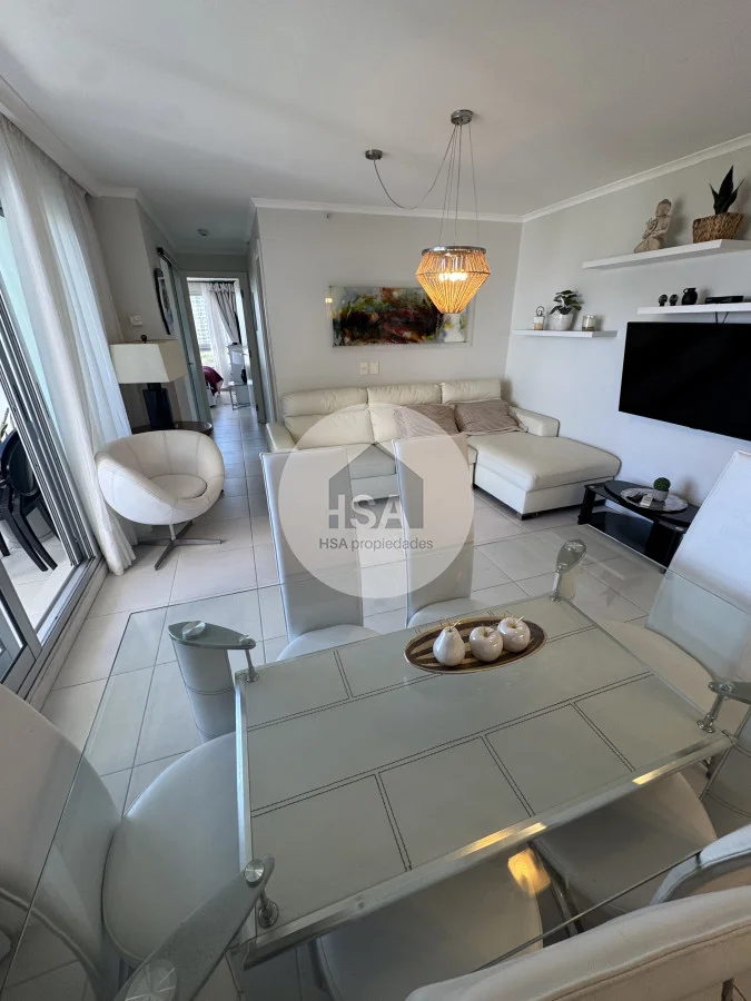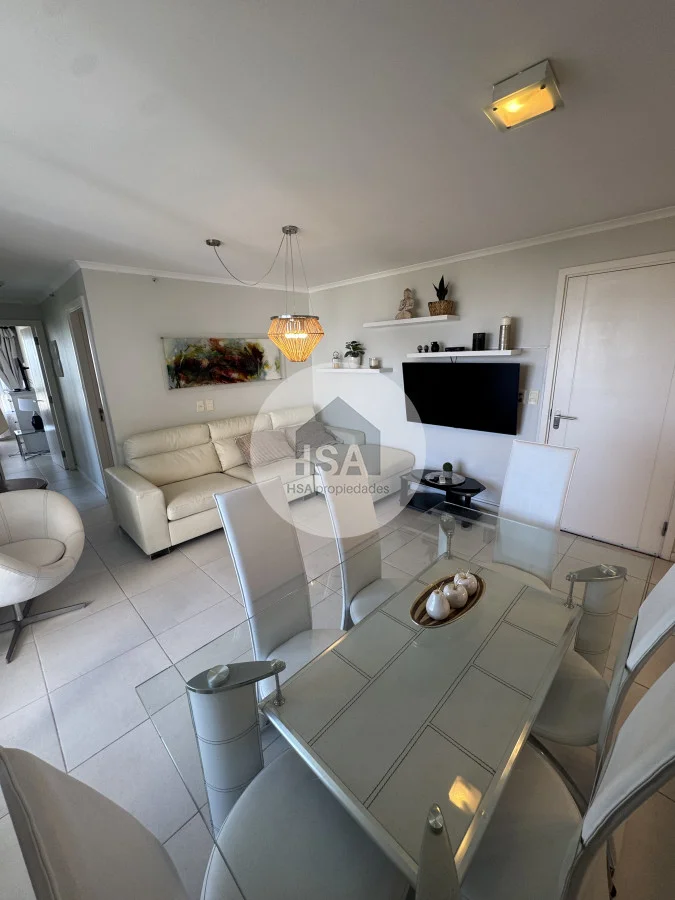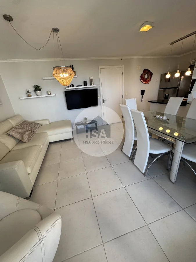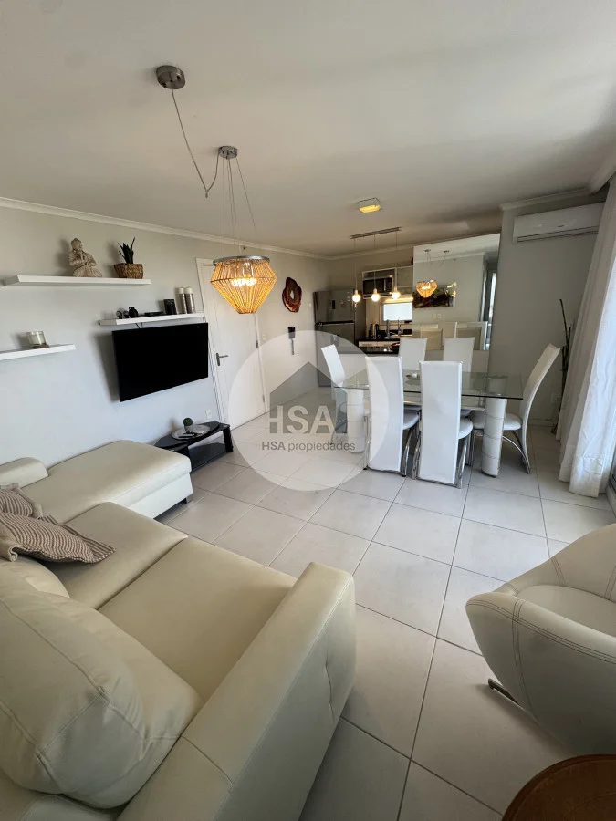 Con una superficie total de 70 m², el apartamento cuenta con una cocina-comedor que se integra perfectamente al living, creando un ambiente ideal para compartir momentos inolvidables. Además, podrás disfrutar de las comodidades del servicio de playa, sauna y una piscina tanto interior como exterior, perfectas para relajarte después de un día de sol y mar.