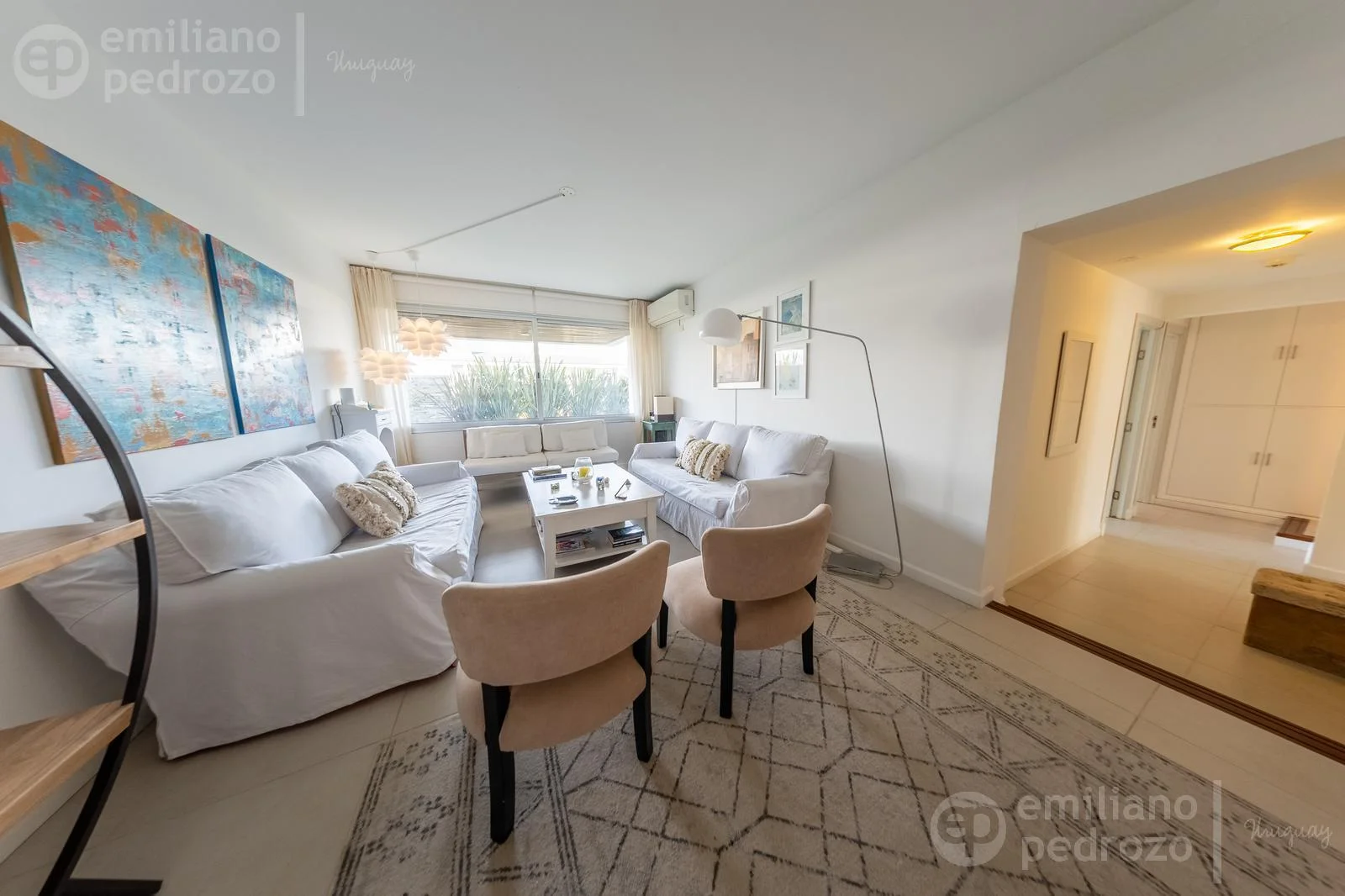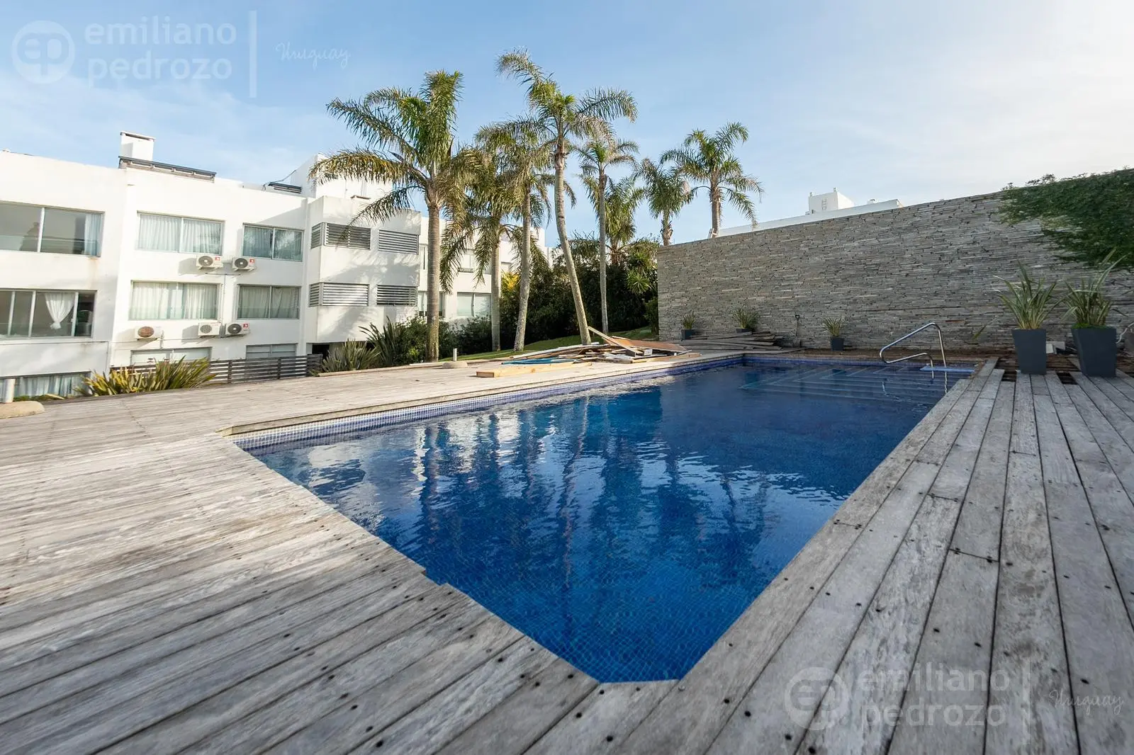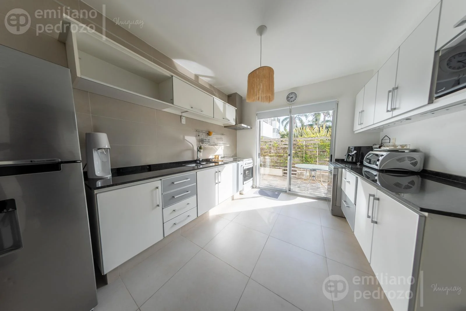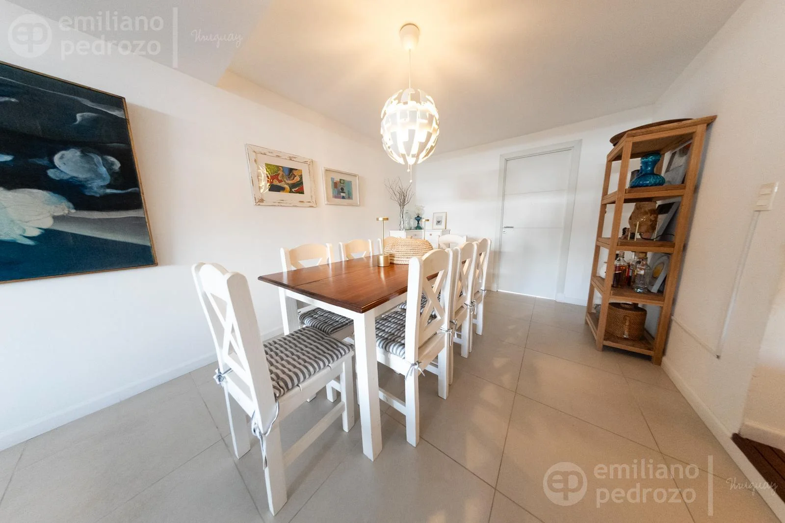 Excelente ubicación, a 50 metros de la playa Montoya. Muy buen apartamento con prestaciones de una casa, cómodo living comedor, cocina definida, 3 dormitorios (ppal en suite), 3 baños, dependencia de servicio completa y cochera. Además, patio cerrado con acceso directo a la piscina.