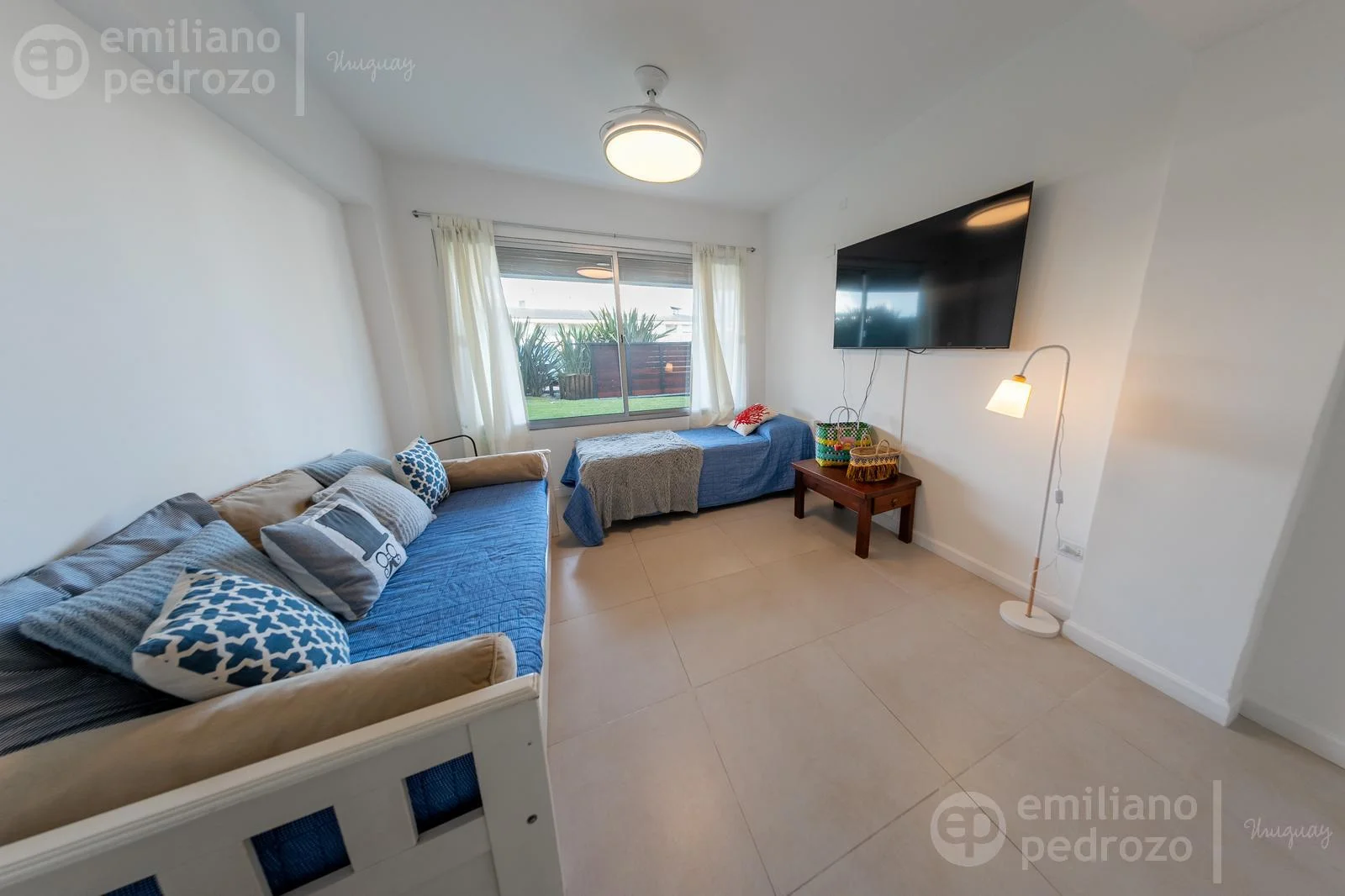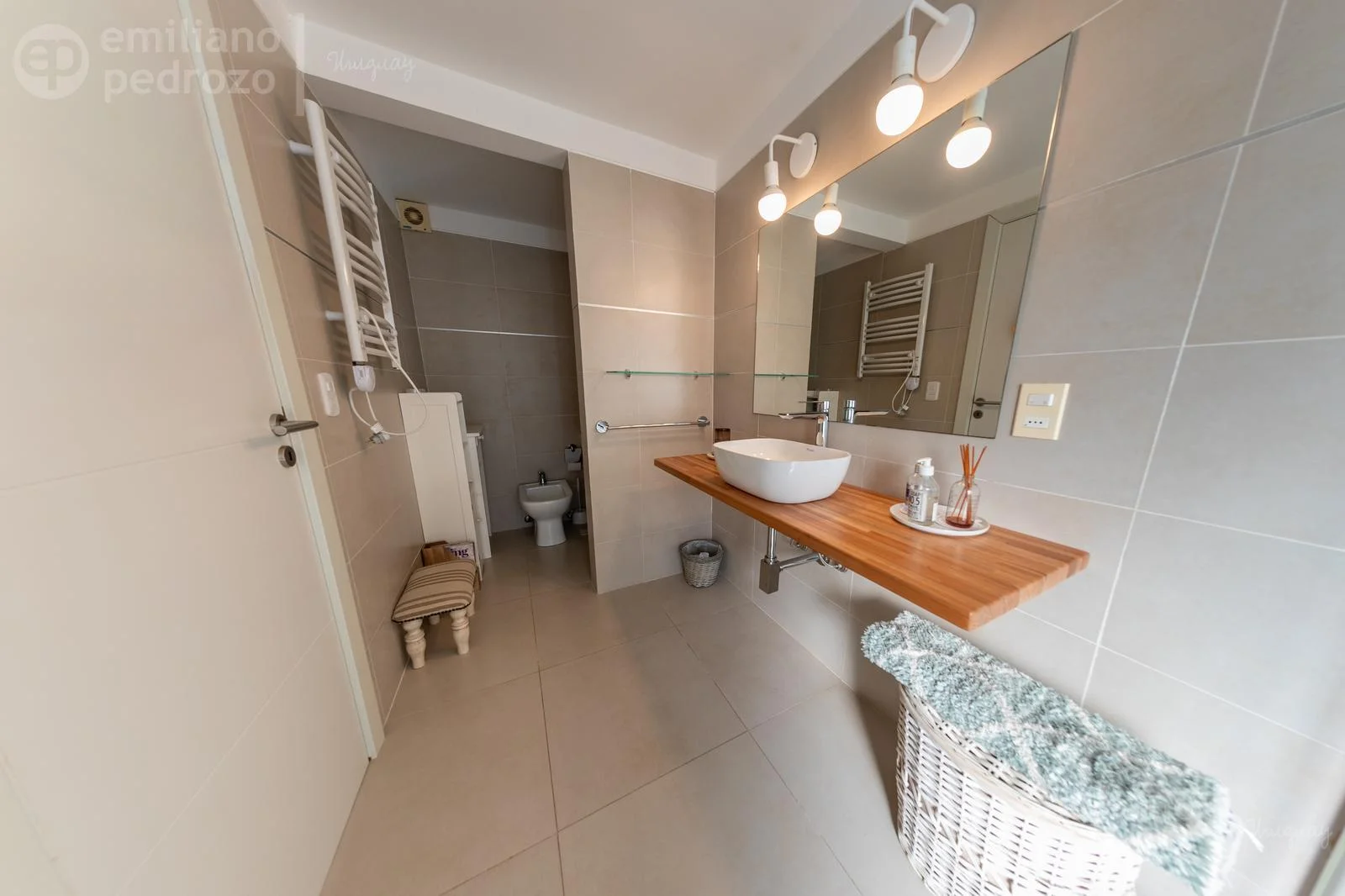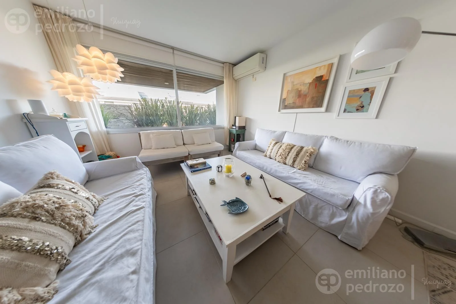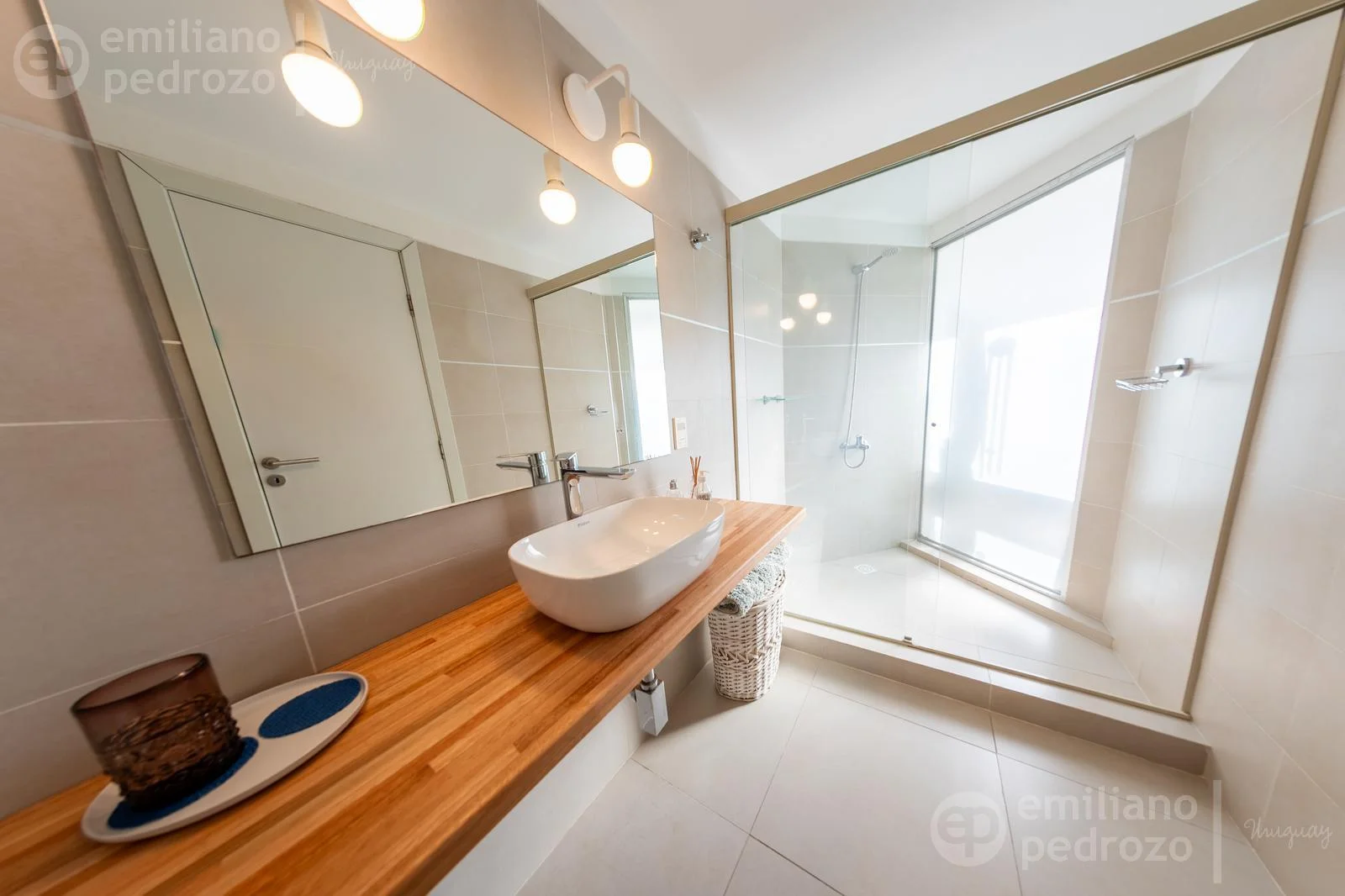 Excelente ubicación, a 50 metros de la playa Montoya. Muy buen apartamento con prestaciones de una casa, cómodo living comedor, cocina definida, 3 dormitorios (ppal en suite), 3 baños, dependencia de servicio completa y cochera. Además, patio cerrado con acceso directo a la piscina.