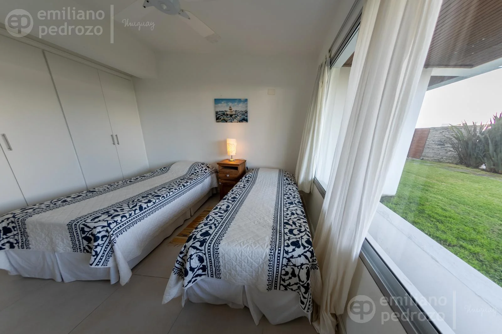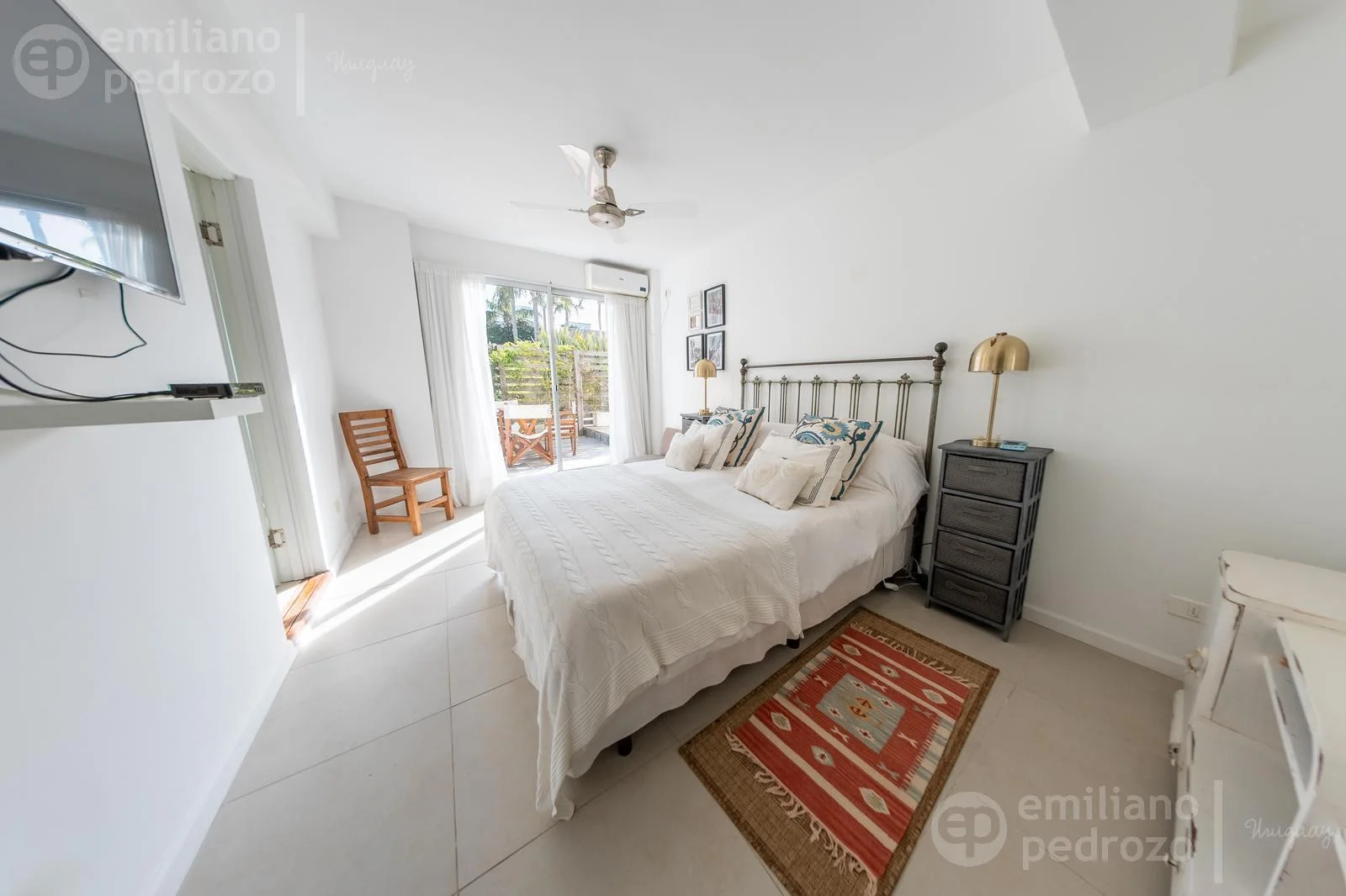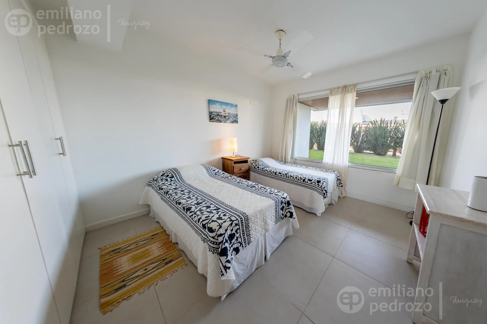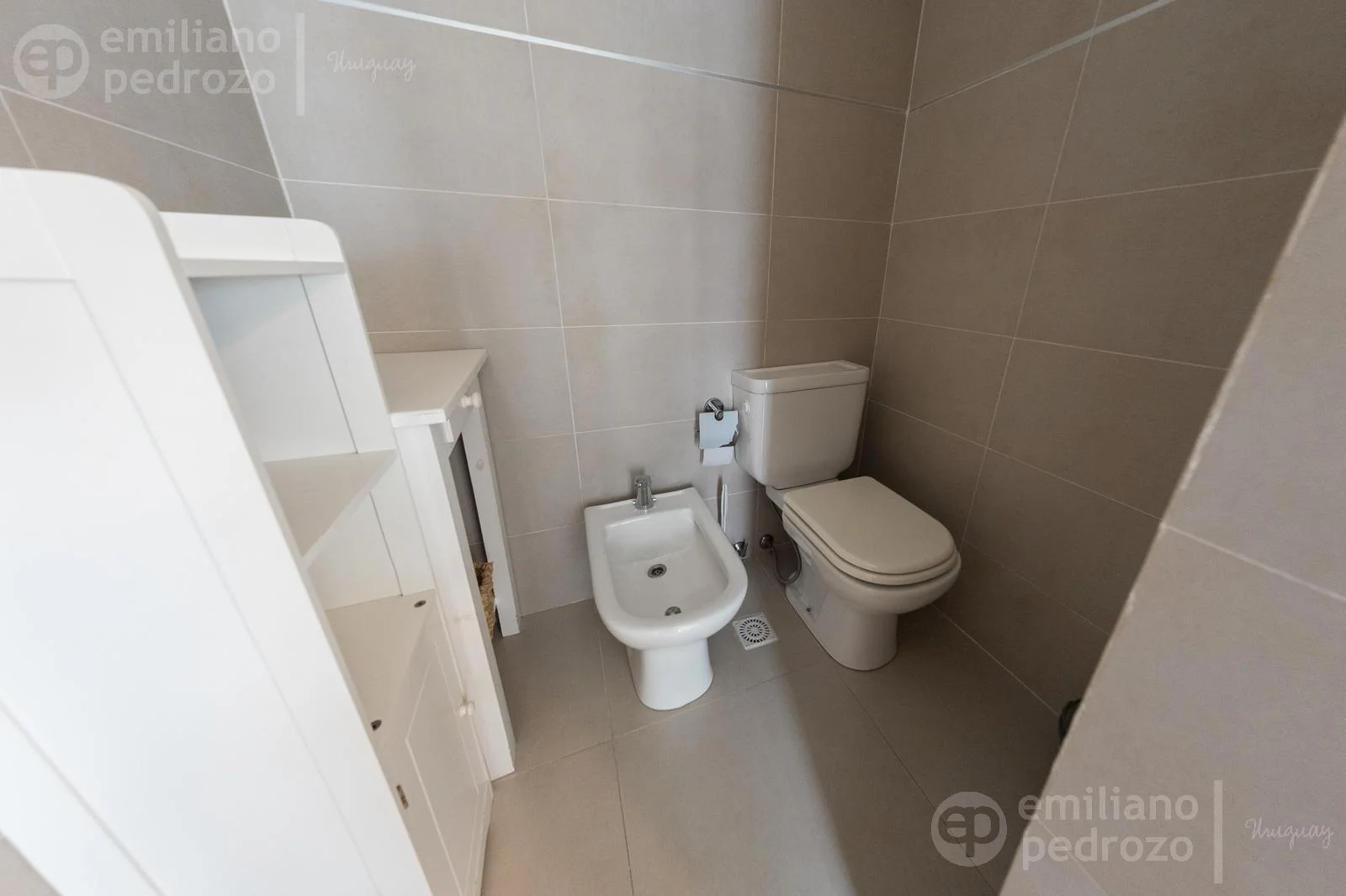 Excelente ubicación, a 50 metros de la playa Montoya. Muy buen apartamento con prestaciones de una casa, cómodo living comedor, cocina definida, 3 dormitorios (ppal en suite), 3 baños, dependencia de servicio completa y cochera. Además, patio cerrado con acceso directo a la piscina.