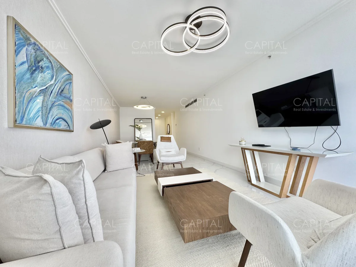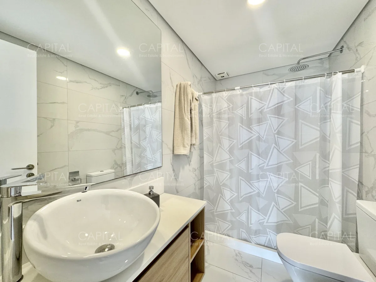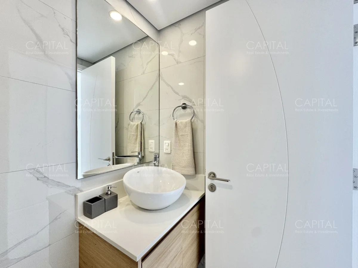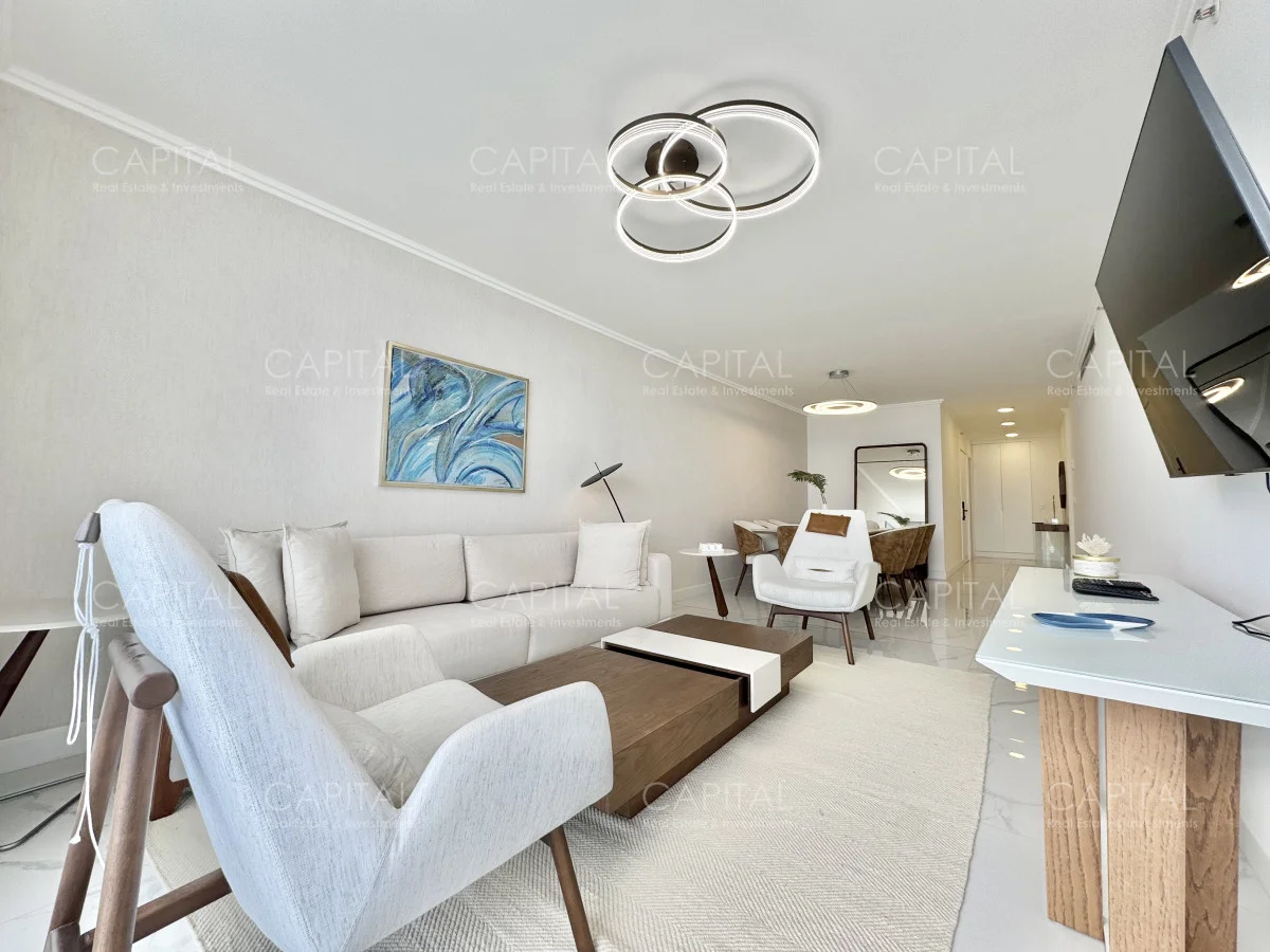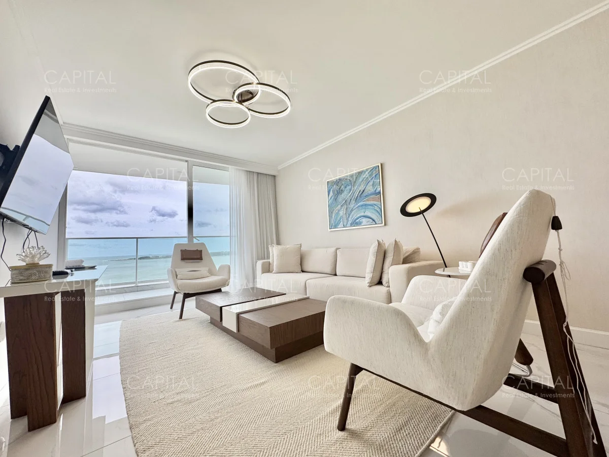 Apartamento de dos dormitorios uno en suite mas toilette social, palier privado con ocho ascensores de gran velocidad, la ubicación del edificio en primera linea frente al mar ofrece una vista totalmente panorámica de la Playa Mansa.