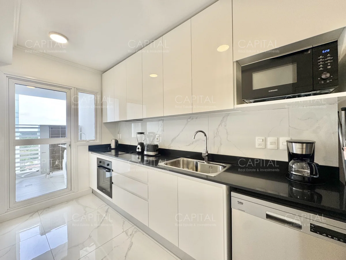 Cocina definida, lavadero y living comedor con salida a la terraza pudiendo disfrutar de las vista al mar.