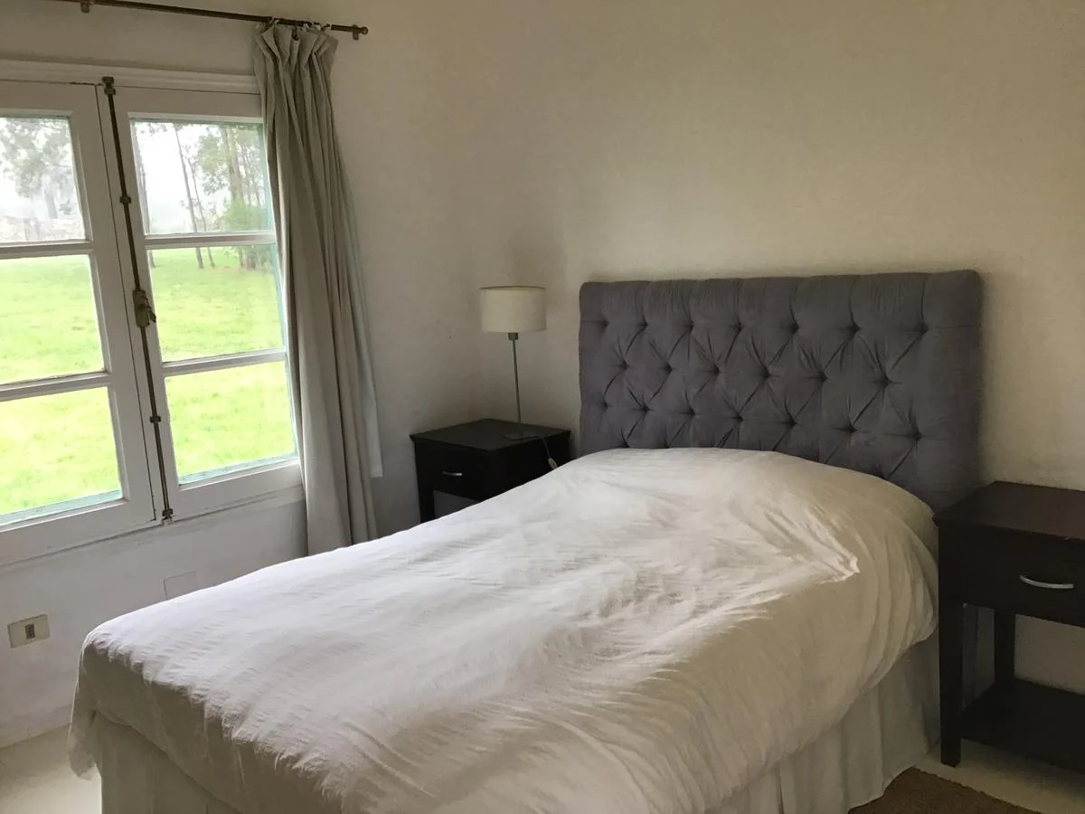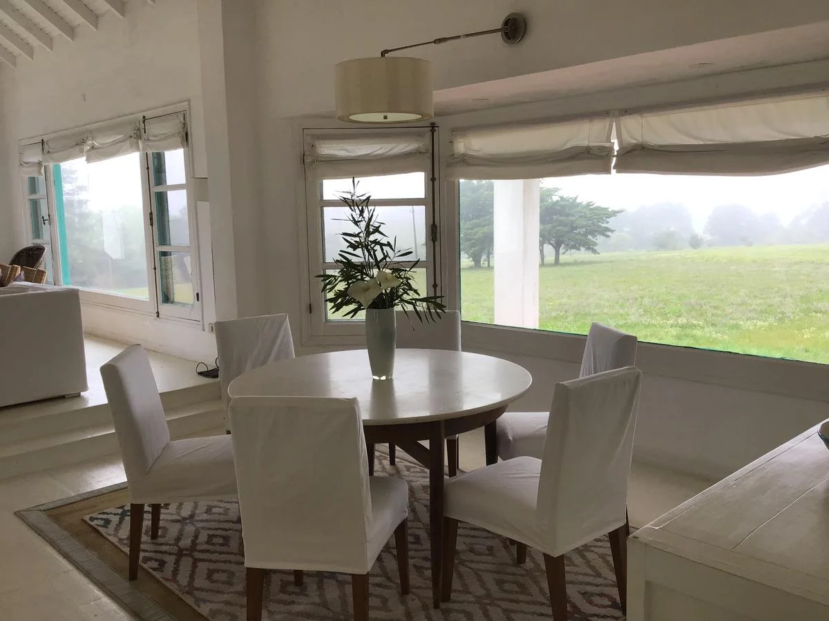 Casa de campo, con encantador jardín en zona de Manantiales. Living comedor amplio y luminoso en desnivel , con vista a la campiña . Cuenta con 3 dormitorios, uno de ellos en suite . Los otros dos dormitorios comparten un baño. Área de servicio Parrillero con pérgola y hermosas galerías. Bajando desde el jardín se accede a la pileta en un entorno casi privado
