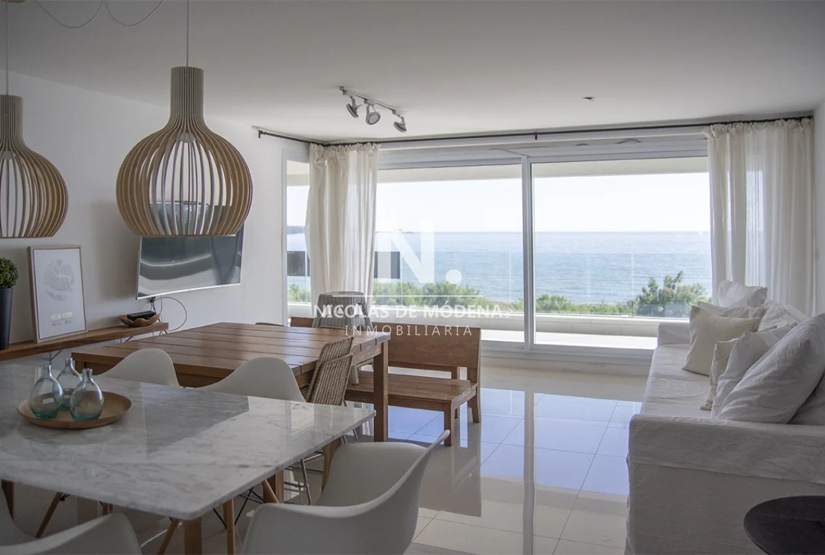 Hermoso apartamento en primera línea al mar, en Playa Mansa, Punta del Este con vista panorámica al mar e Isla Gorriti. Unidad de 3 dormitorios en suite, más toilette. Living-comedor amplio, con acceso a gran terraza al frente. Cocina muy cómoda con área lavadero. Calefacción por losa radiante sectorizada Garaje en subsuelo No dude en visitarlo ! Consulte a nuestros asesores. Referencia Interna : Tera-13900
