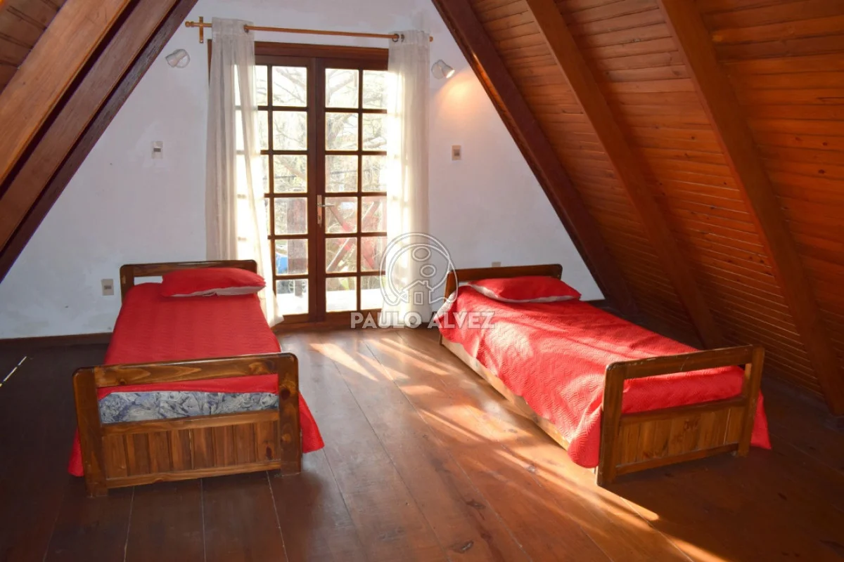 Cabaña ubicada en balneario Playa Hermosa, rodeada por un entorno natural y tranquilo, ideal para descanso. En excelente estado de mantenimiento, de construcción mixta, techo liviano de teja americada, y cielo raso de lapacho, al igual que las aberturas. Living comedor muy luminoso, con estufa a leña, dormitorio matrimonial, con armarios empotrados. Baño completo con mampara de vidrio. Cocina definida por puertas vaivén de madera. Acceso a planta alta por cómoda escalera, segundo dormitorio, amplio con pequeña terraza. Al fondo, piscina, barbacoa abierta con techo de quincho, depósito de construcción tradicional y baño social, Contáctenos por más información.