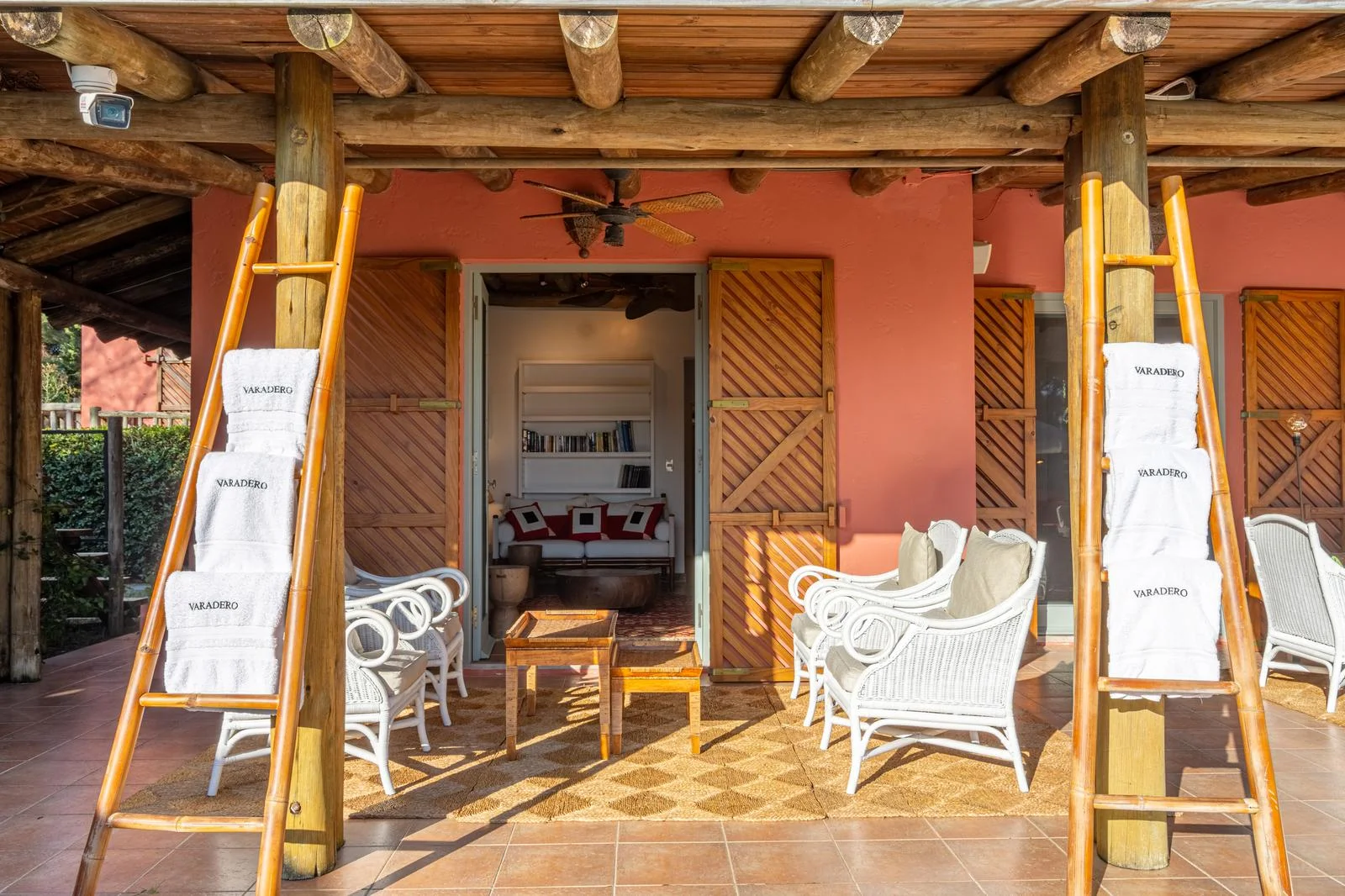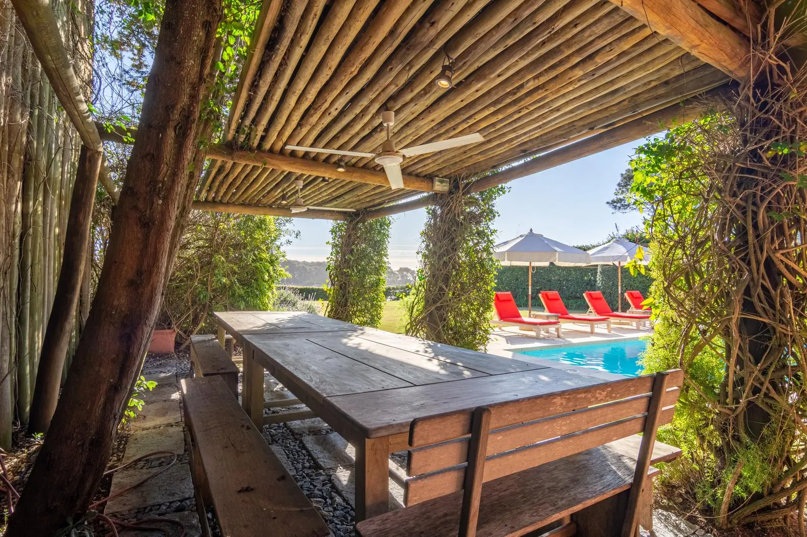 La casa de huéspedes ofrece otro living, kitchenette y 3 dormitorios en suite, proporcionando gran capacidad y comodidad.