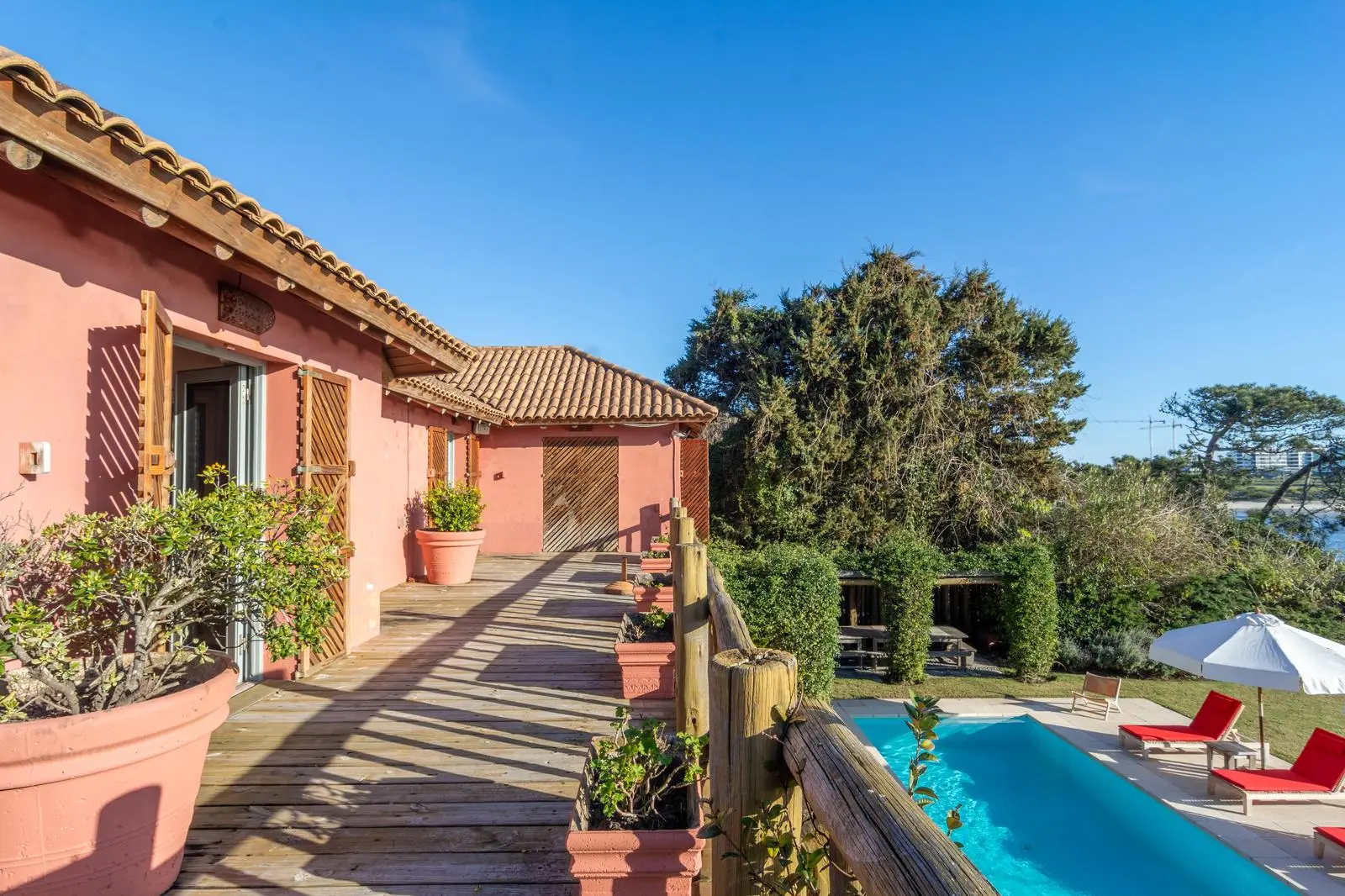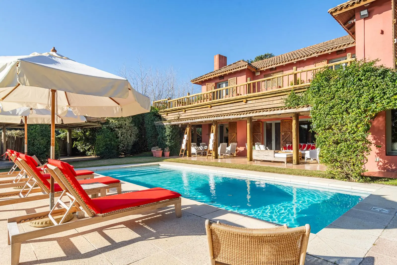 In the sought-after La Barra,sited on a 1.678 mts.plot, this property offers six en suite bedrooms and has spectacular water and sunset vistas. This beachfront home has a beautiful garden that ends on the dunes surrounded by a very private setting.The master suite has his and hers bathrooms plus a sitting room. The living is luminous and the dining room seats 16,and opens to a covered porch overlooking the swimming pool and barbecue area which are the chosen spots for casual summer gatherings. And separate the guest house has three suites with its own small living space and kitchenette. Caretaker's house,laundry room and garage. Within easy walking distance of the village of La Barra filled with charming shops,bistros,and art galleries.