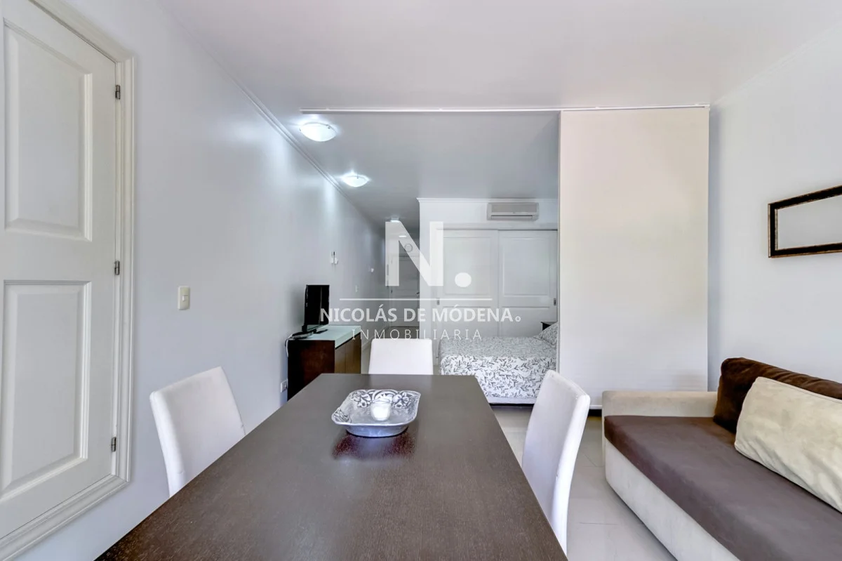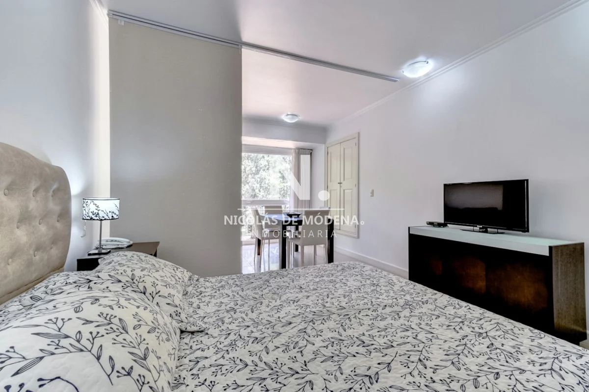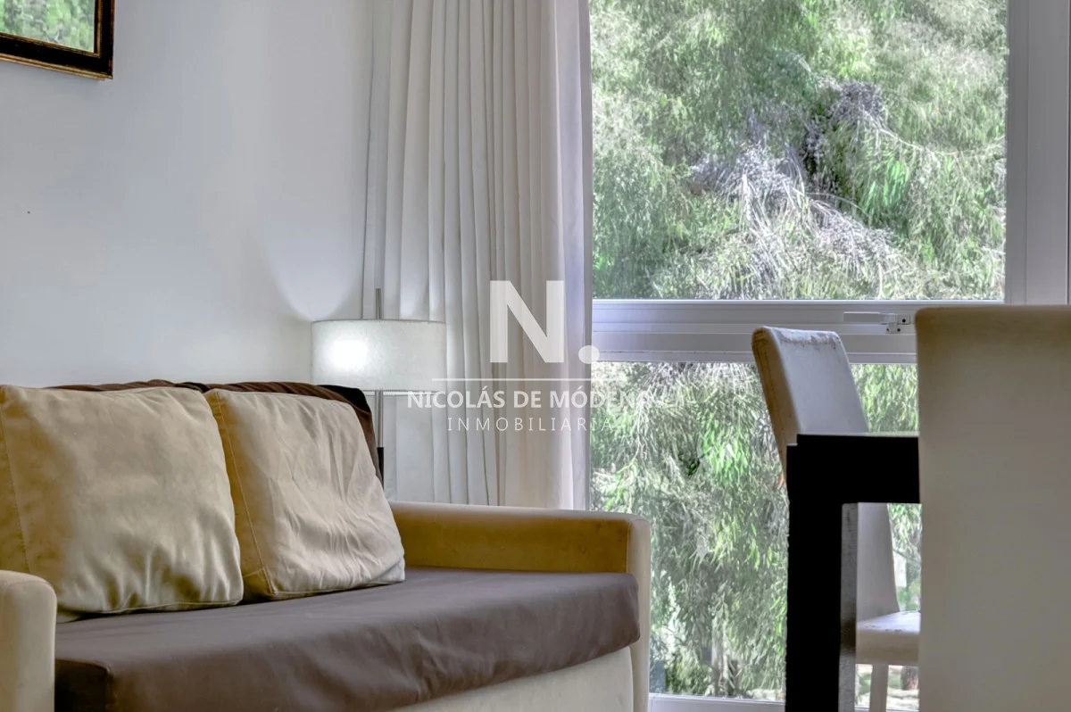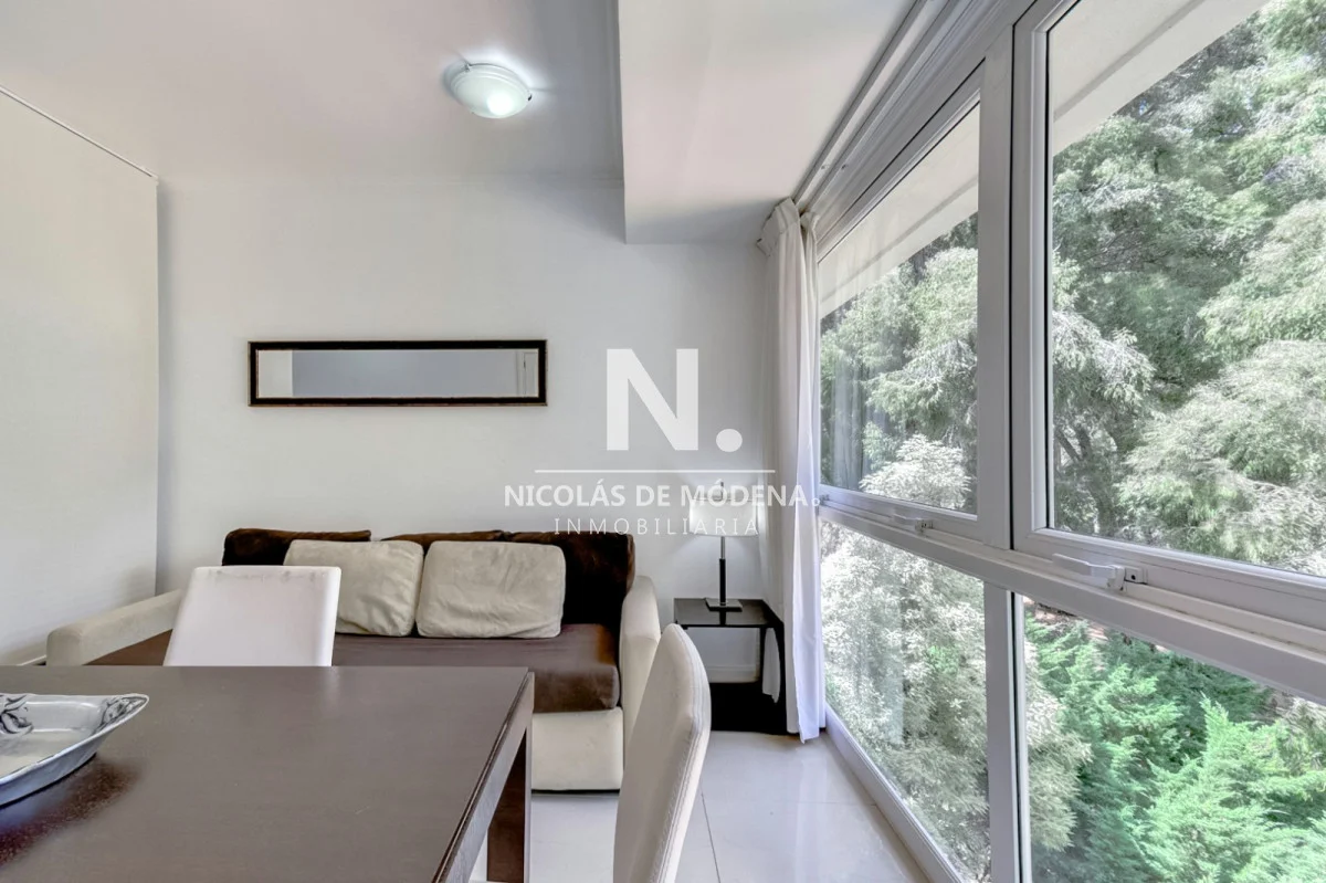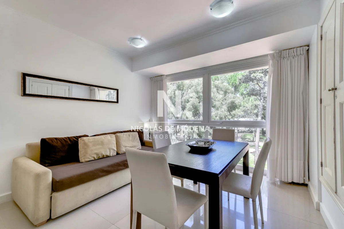 Además, el equipamiento incluye aire acondicionado y placares tanto en el dormitorio como en la cocina, asegurando que cada rincón esté optimizado para tu confort. El servicio de mucamas y la piscina del complejo añaden un toque de lujo a tu día a día, permitiéndote disfrutar de la vida al aire libre en un entorno natural privilegiado.