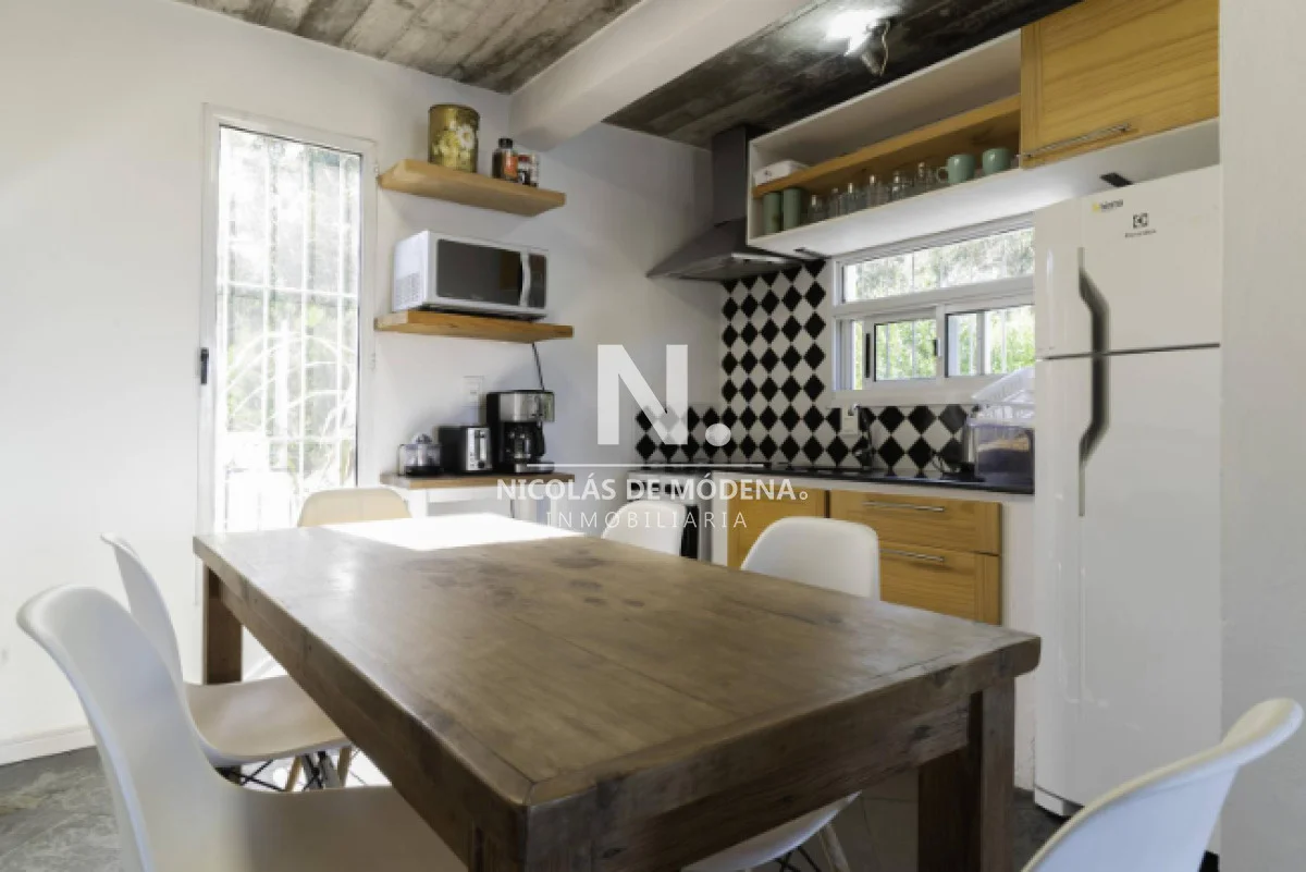 La casa cuenta con 3 dormitorios, incluyendo 2 suites, y 2 baños completos, proporcionando una capacidad de alojamiento para 6 personas, lo que garantiza amplitud y privacidad para todos los huéspedes. Independiente de la casa, se encuentra un dormitorio en suite para huéspedes yo dependencia de servicio, con cama matrimonial.