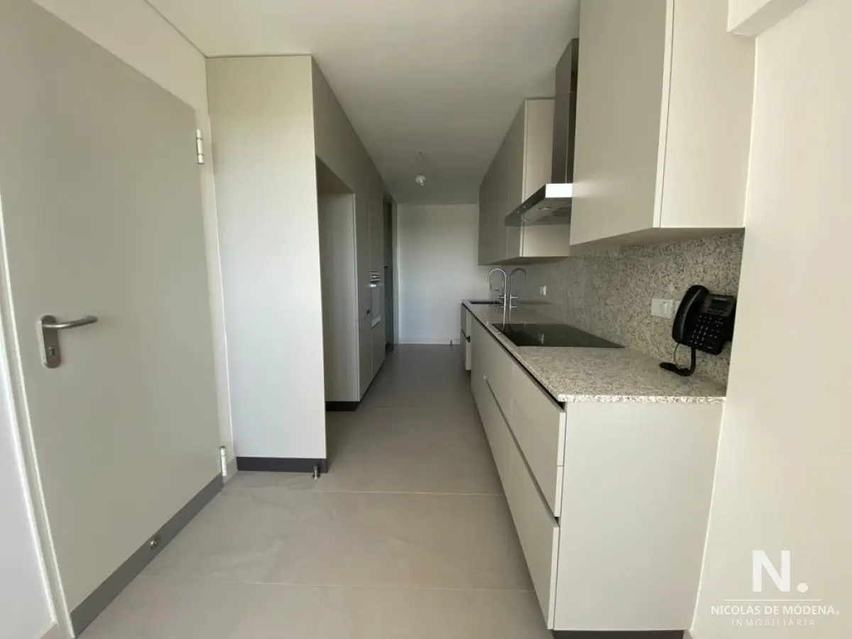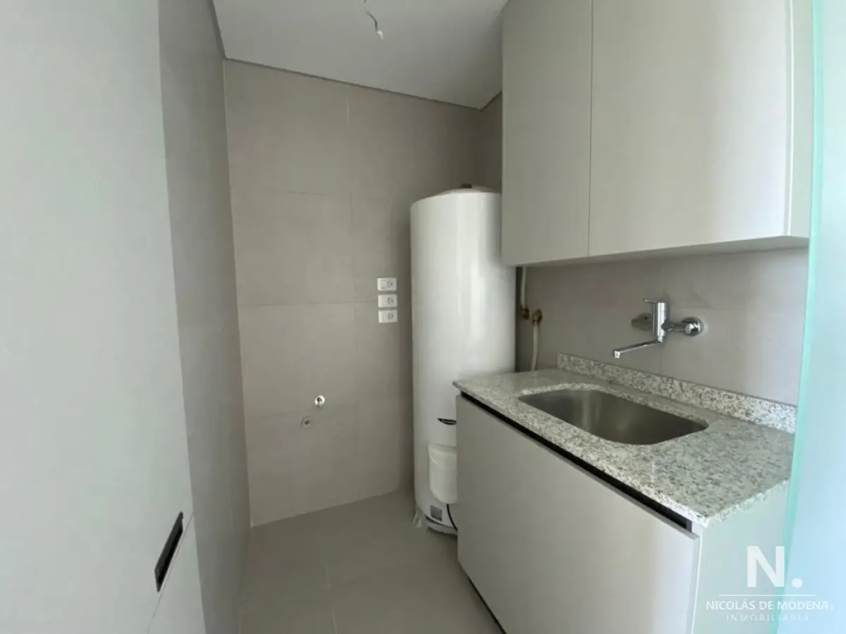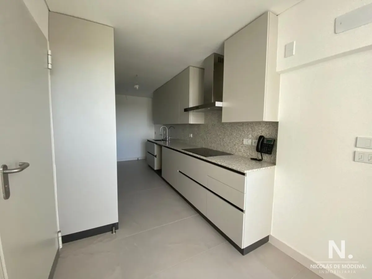 La cocina está equipada con electrodomésticos modernos, como anafe, microondas, horno, heladera con freezer y campana. Además, cuenta con placard tanto en los dormitorios como en la cocina, lo que facilita el almacenamiento y la organización. El aire acondicionado contribuye a mantener un ambiente agradable en todas las áreas del apartamento.
