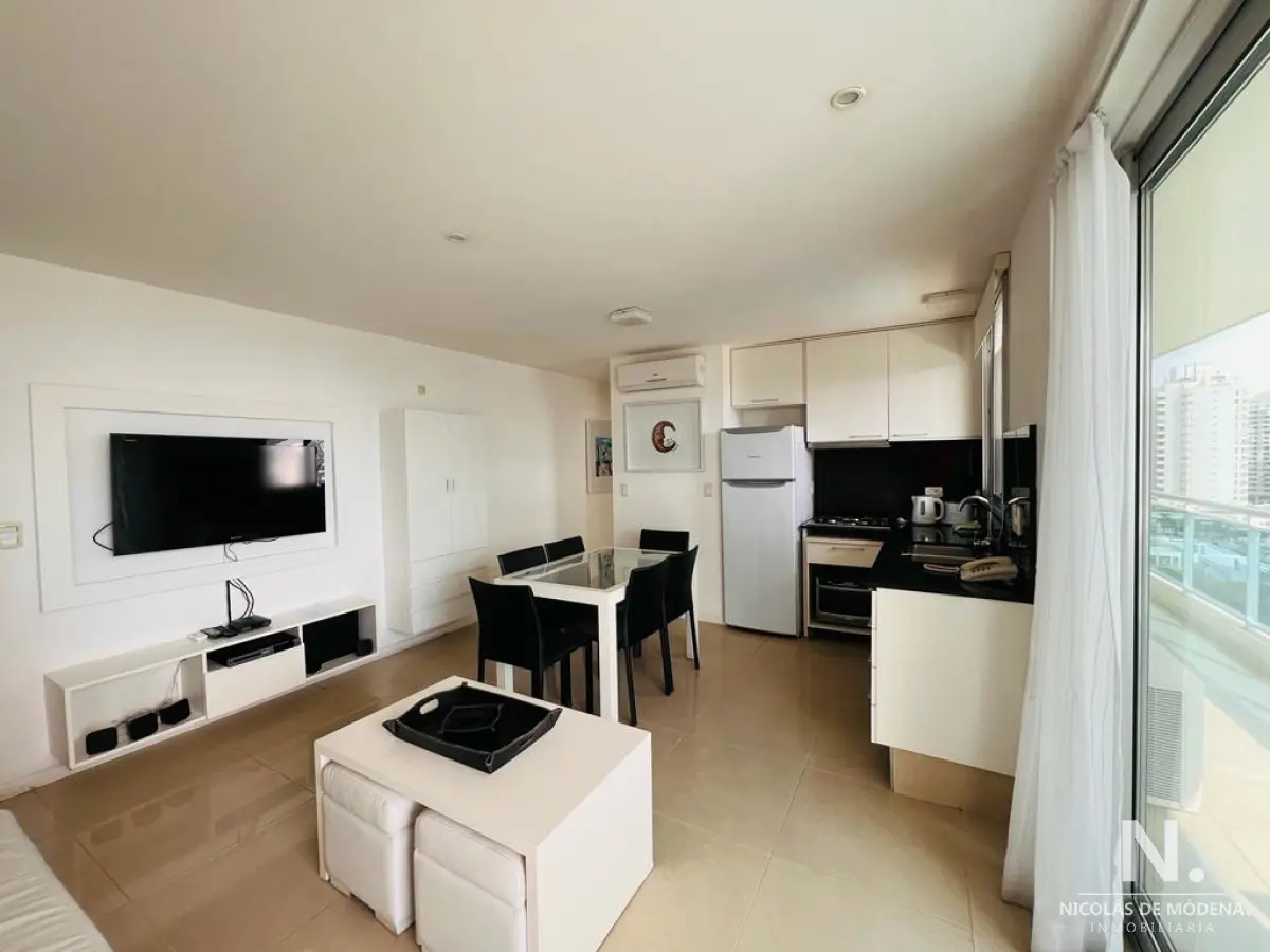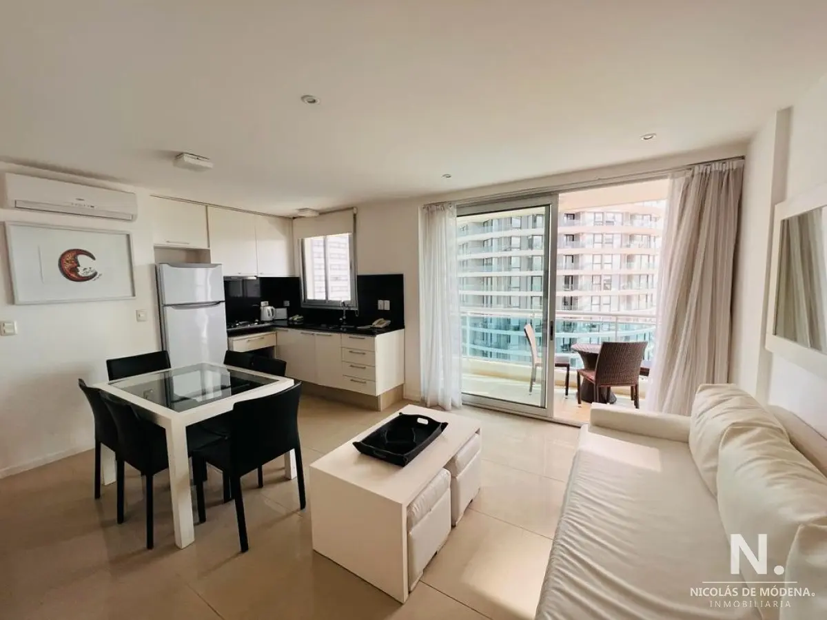 Living-comedor, cocina integrada, 2 dormitorios (1 suite) y 2 baños. Balcón con vista al mar y espacios amplios. Amenities : Sala de reuniones - Piscina exterior climatizada - Barbacoa - Gimnasio - Solarium - Servicio de mucama - Servicio de playa - Recepción las 24 hs. Referencia Interna : Tera-11996