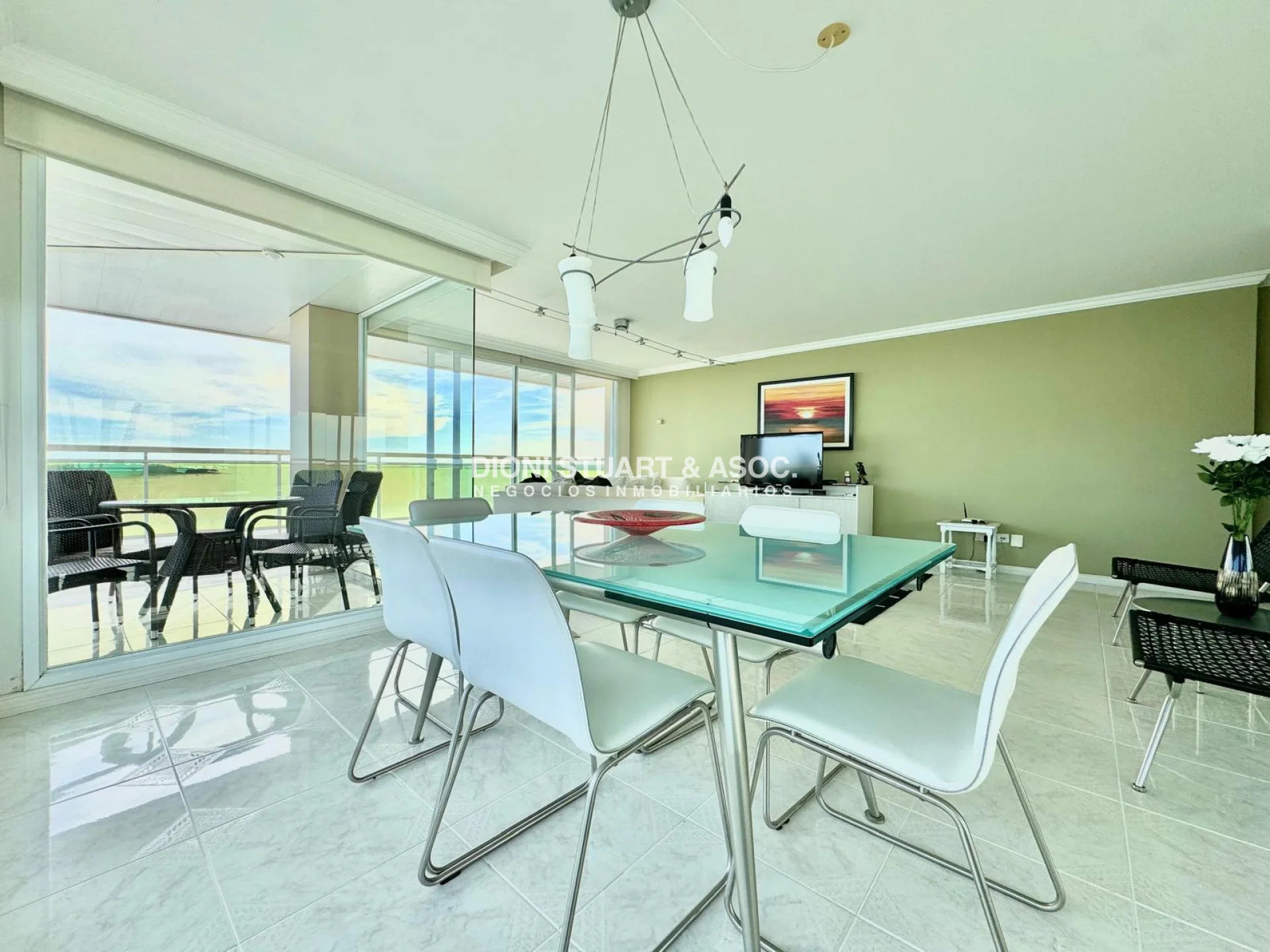 Apartamento en Coral Tower esquinero. Amplio living comedor esquinero con salida a terraza balcón abierta Vista al Puerto de Punta del Este y Isla Gorriti 3 Dormitorios en Suite Master suite orientada al frente con vista al mar Dependencia de servicio con baño Toilette para visitas Dispone de garage Referencia Interna : Tera-341