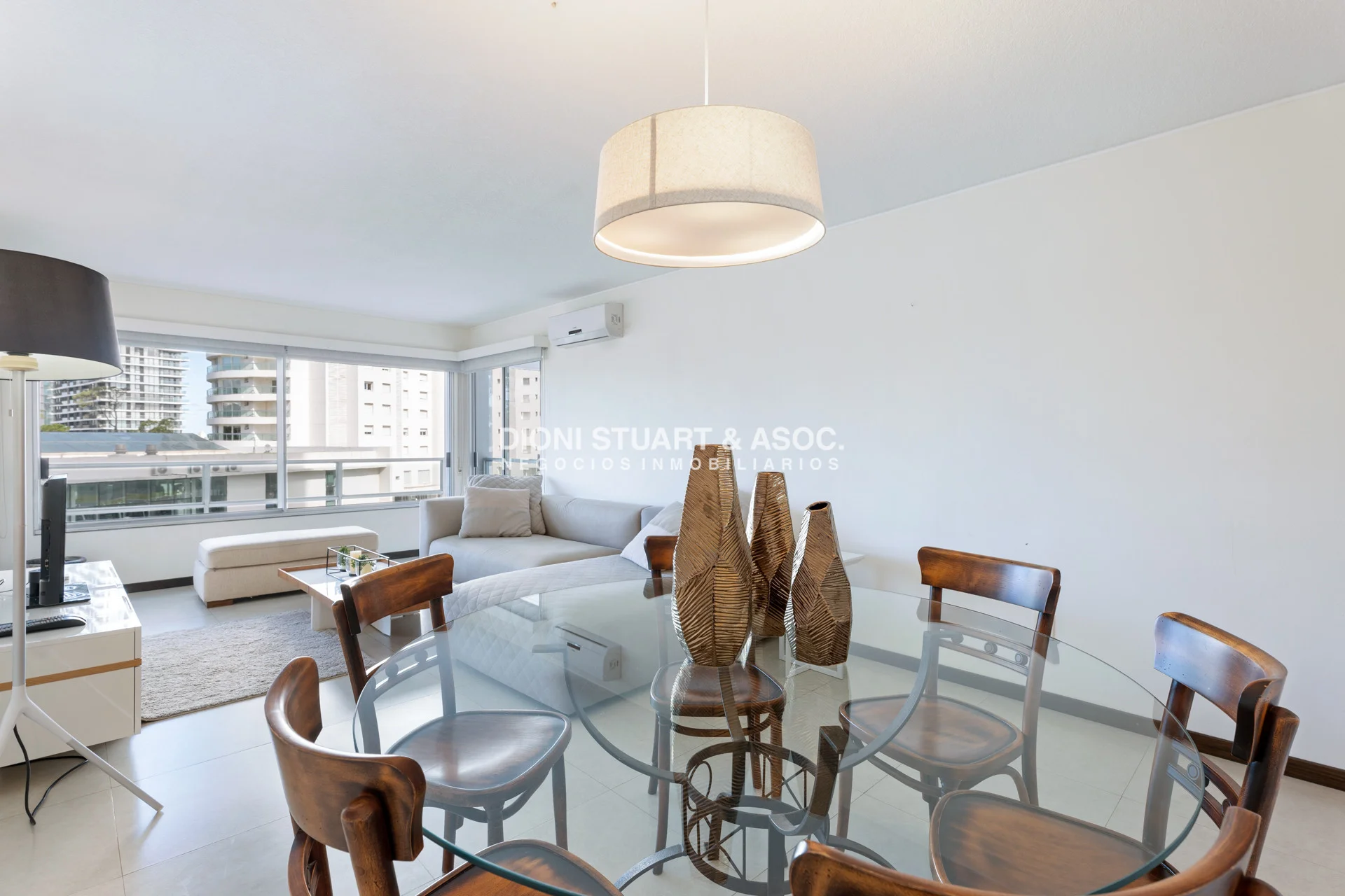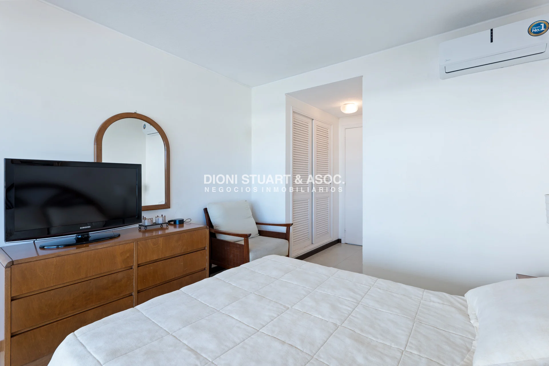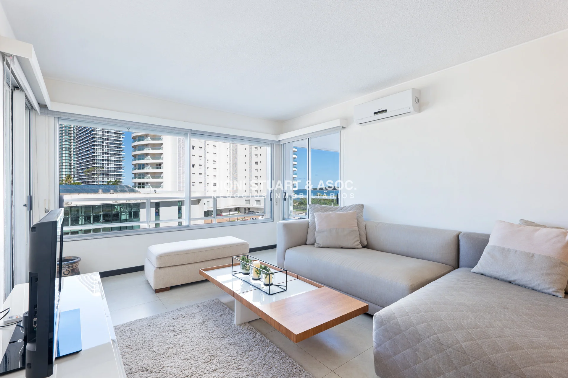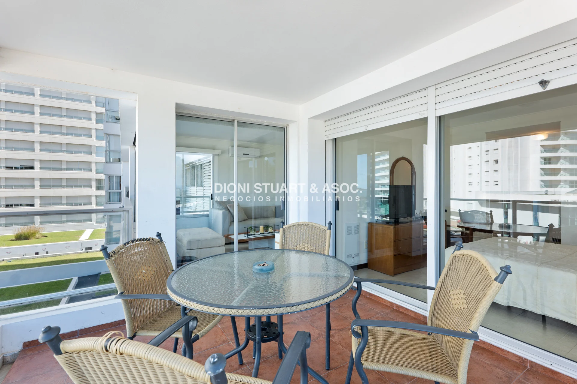 Esta unico apartamento ubicado en la Torre Jefferson del Complejo Lincoln Center, cuenta con un moderno reciclaje, comoda distribución y confortable mobiliario. Ideal para relajarte y estar comodo. En total es un piso de más de 120 metros, con espacioso living-room con vista a la Isla Gorriti y acceso a balcón propio con hermoso paisaje donde se conecta el verde y el azul del mar. Dos dormitorios definidos con dos baños (uno en suite) + cocina definida con comedor diario y lavadero. A demás, el gran plus, dependencia de servicio con baño. En total duermen 5 personas. Todos comodos. La cocina esta completamente equipada.