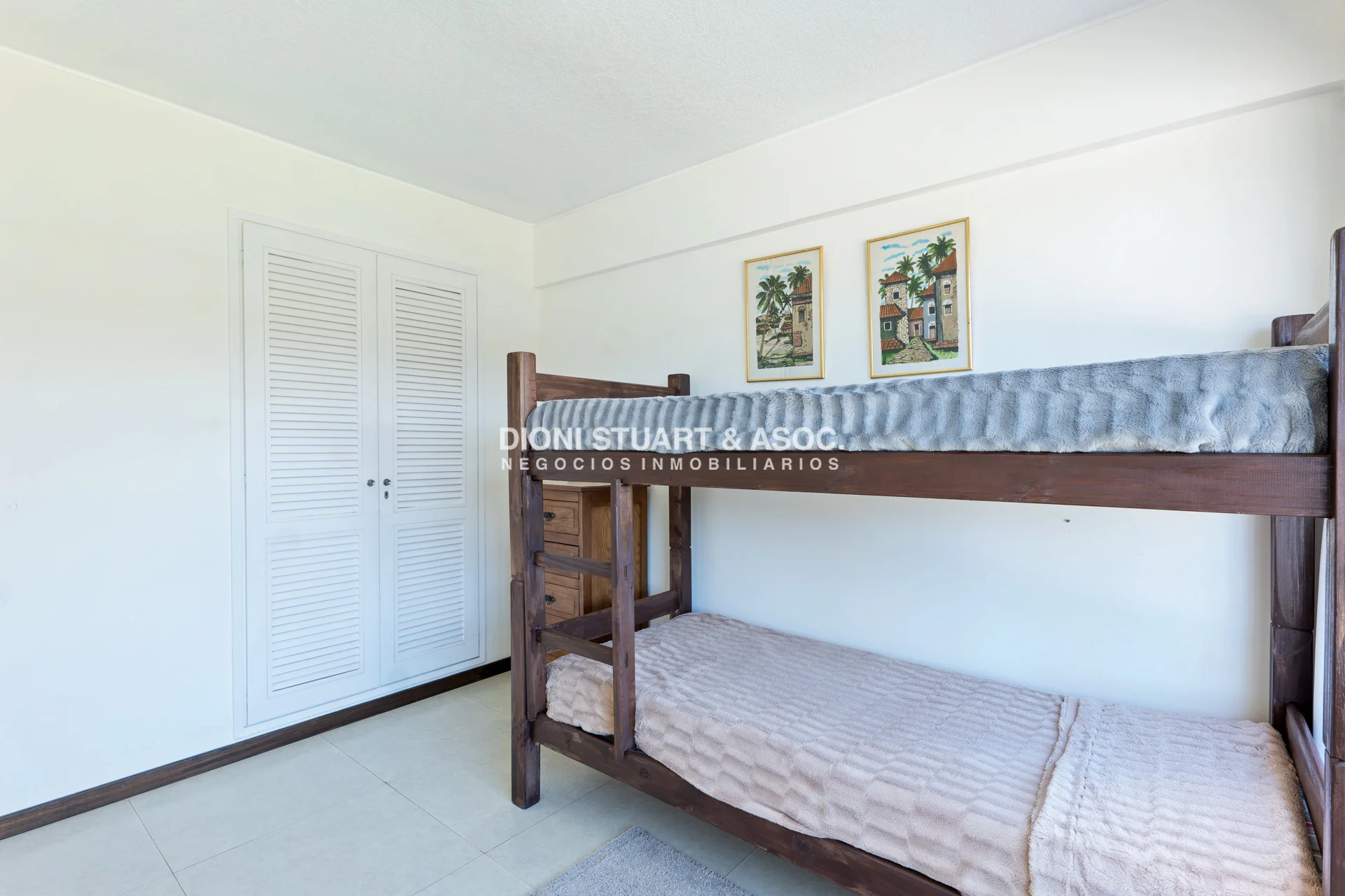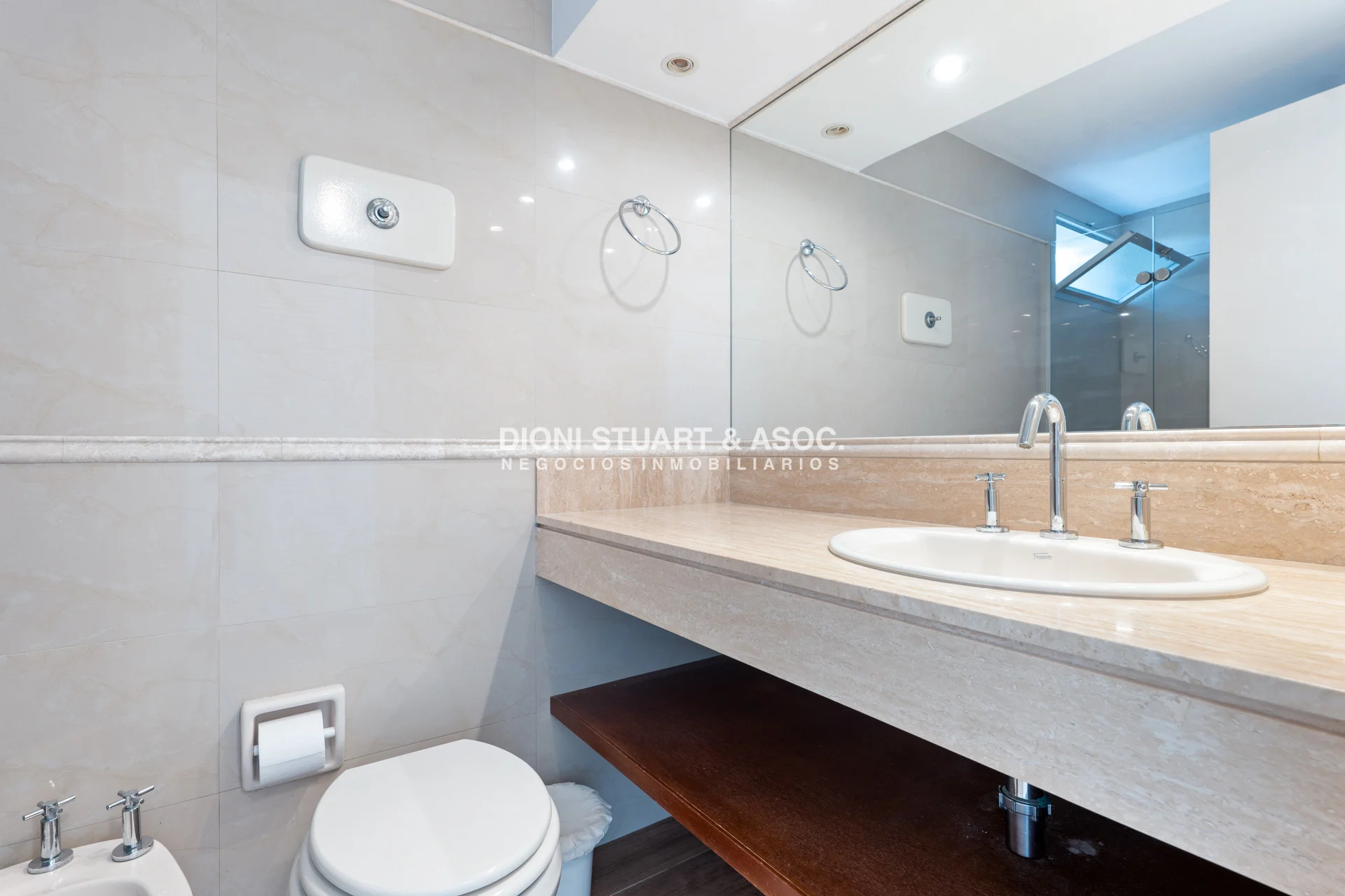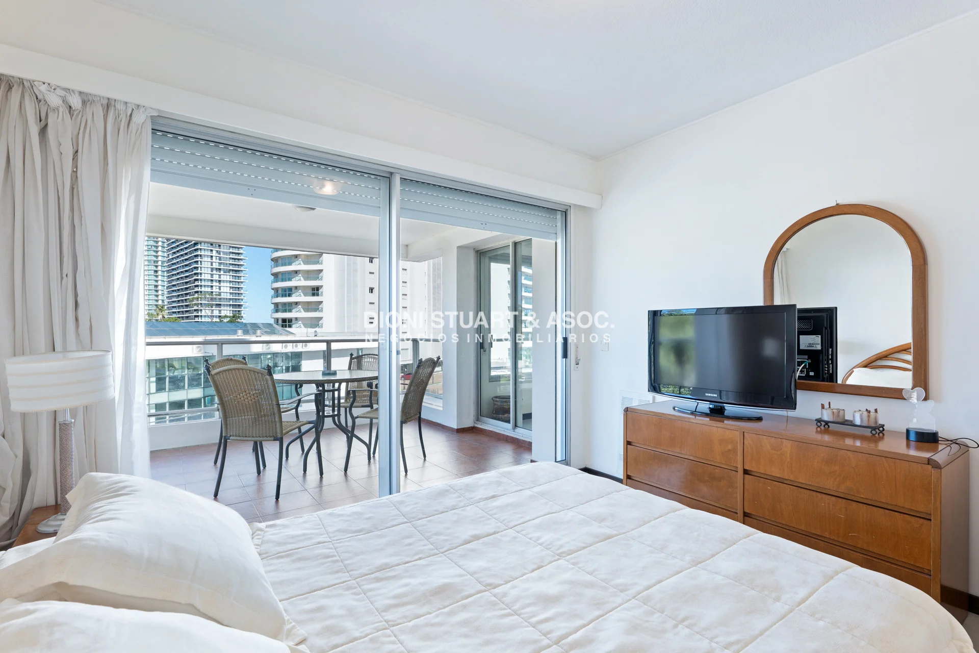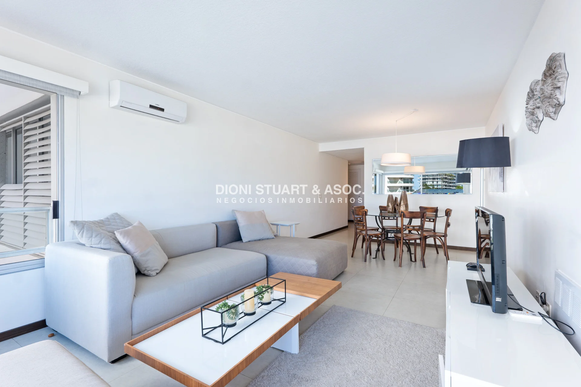 Esta unico apartamento ubicado en la Torre Jefferson del Complejo Lincoln Center, cuenta con un moderno reciclaje, comoda distribución y confortable mobiliario. Ideal para relajarte y estar comodo. En total es un piso de más de 120 metros, con espacioso living-room con vista a la Isla Gorriti y acceso a balcón propio con hermoso paisaje donde se conecta el verde y el azul del mar. Dos dormitorios definidos con dos baños (uno en suite) + cocina definida con comedor diario y lavadero. A demás, el gran plus, dependencia de servicio con baño. En total duermen 5 personas. Todos comodos. La cocina esta completamente equipada.