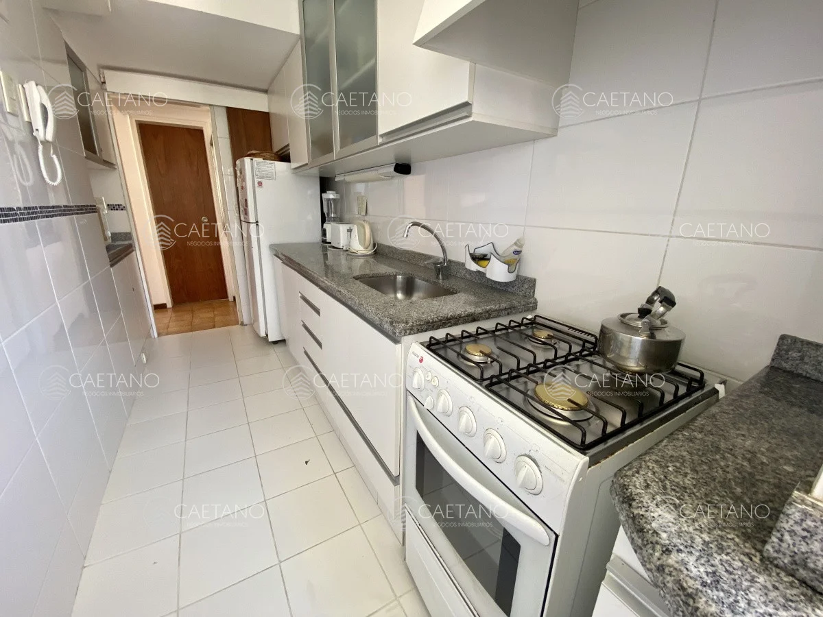 Este apartamento ofrece amplio living comedor con salida a balcón, dos dormitorios, dos baños, cocina definida y garaje en sub suelo.