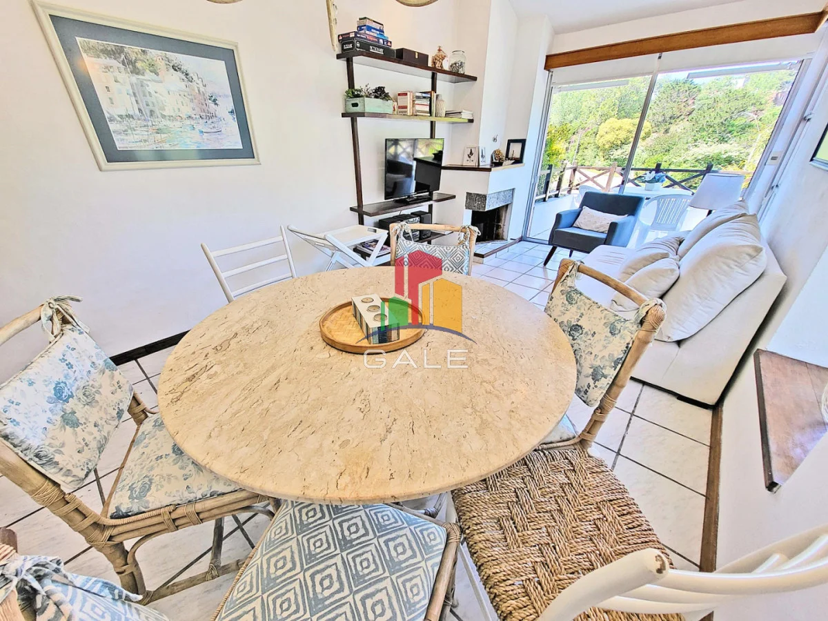 Hermoso apartamento a pasos del mar, comodo living comedor con estufa a leña, terraza con parrillero y vistas al agradable entorno que rodea el edificio, cocina definida con terraza lavadero, dos dormitorios en suite.