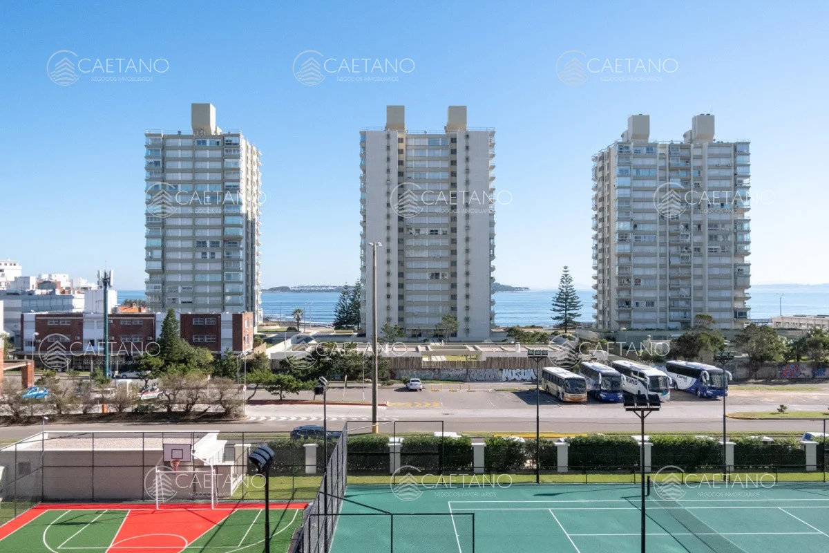 En la entrada de la peninsula, al inicio de Gorlero, frente a la playa Brava, muy cerca del Puerto de Yates, del Shopping de Punta del Este y de dos casinos.