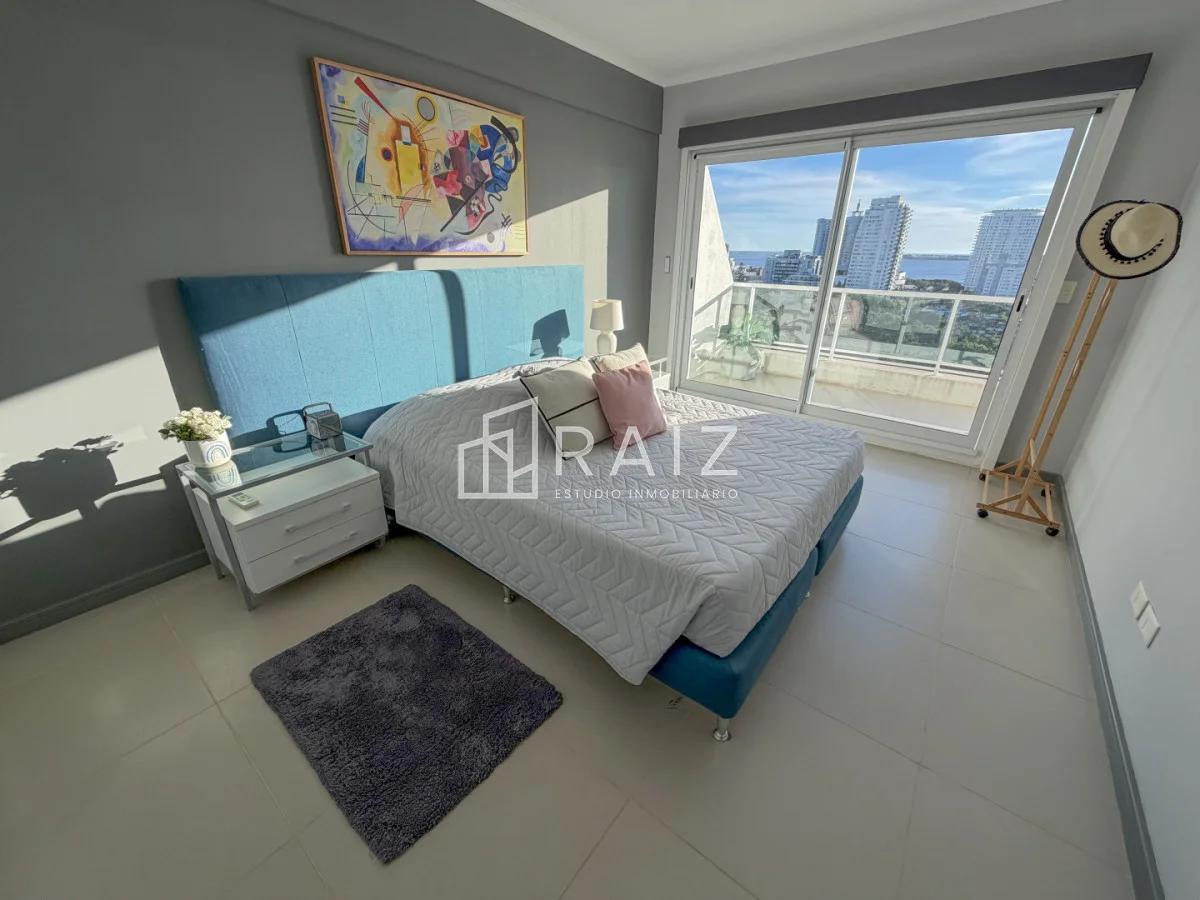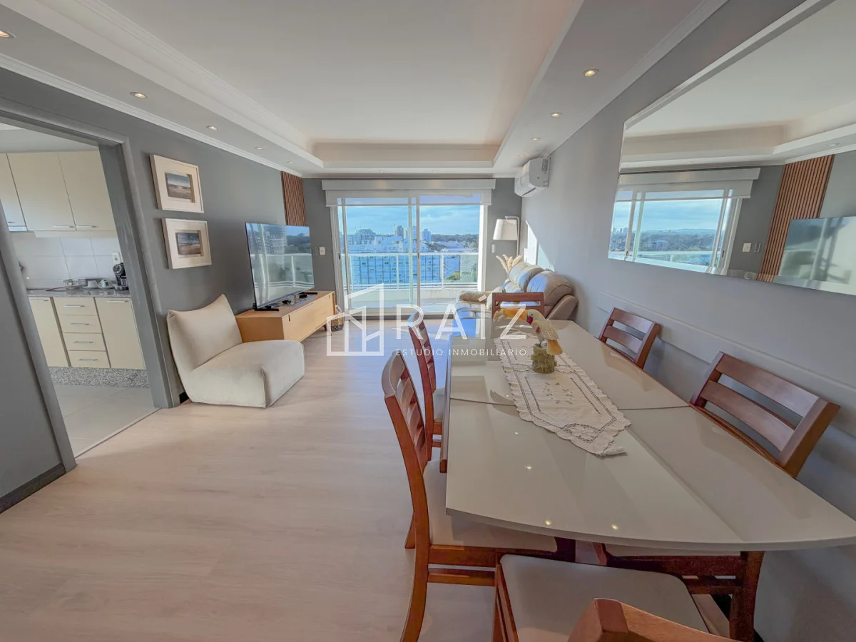 Finamente equipado en edificio con amplios servicios. Orientado estratégicamente hacia la playa Mansa y puesto de sol, ideal para disfrutar todo el año, cómodo living comedor, 3 dormitorios, 2 baños completos, 1 de ellos en suite, acceso al balcon desde todos los ambientes, hermosa cocina definida totalmente equipada y parrillero propio en la balcon. Garage ubicado en el subsuelo del edificio. Cortinas automatizas, aire acondicionado en todos los amebientes. Ventanas con DVH.