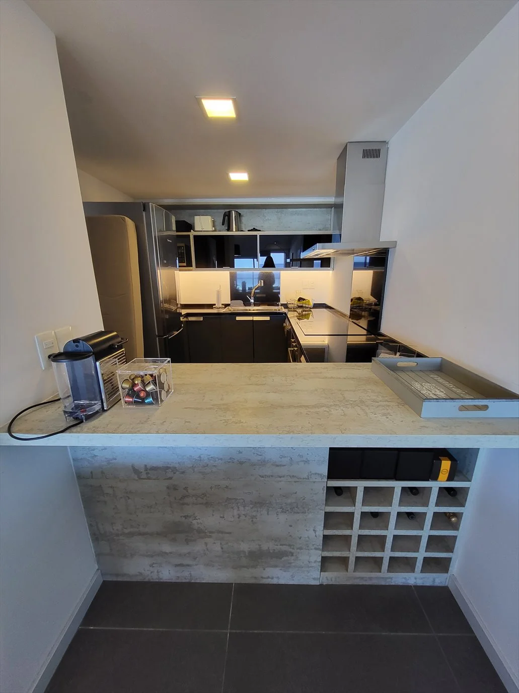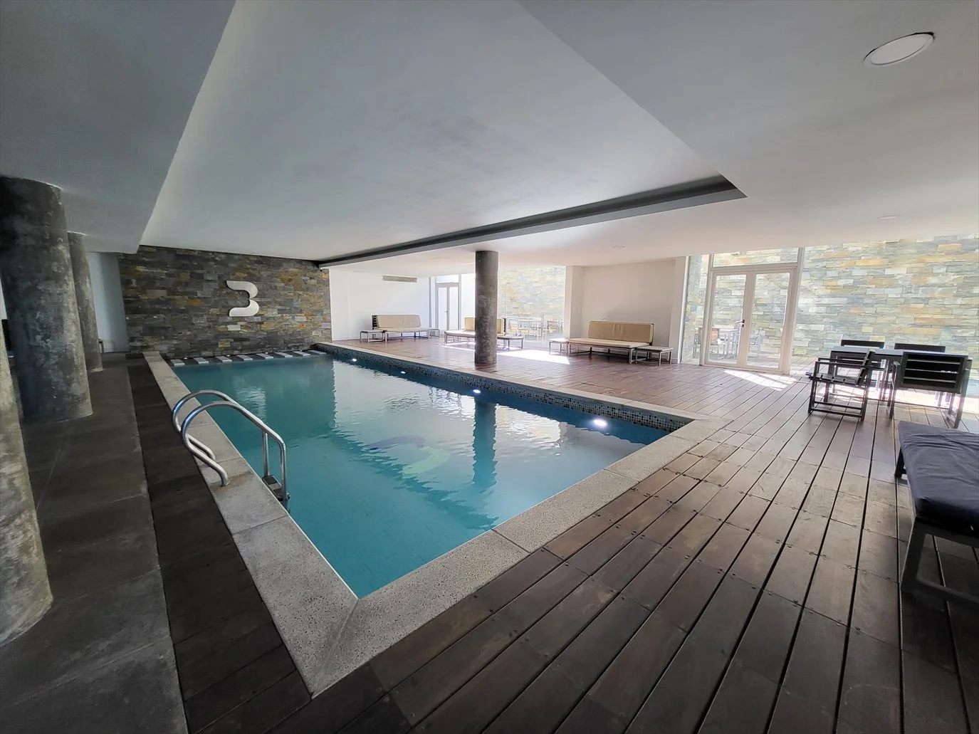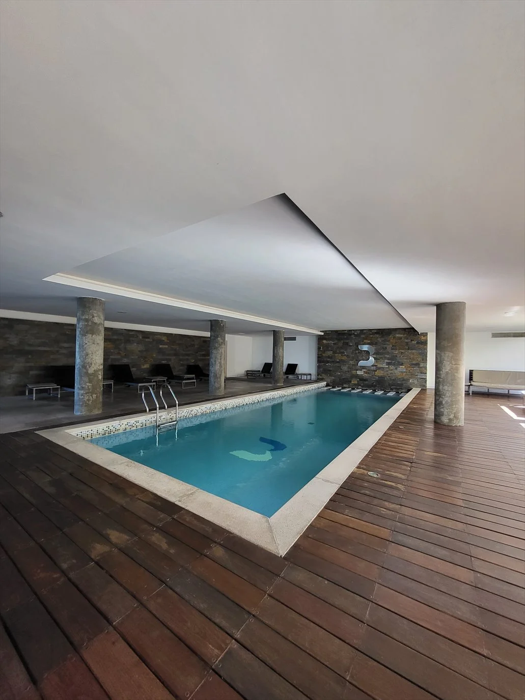 El edificio cuenta con vigilancia las 24 horas, servicio de playa, mucamas, piscinas interior y exterior, gimnasio, sala de reuniones, sala de niños y microcine.