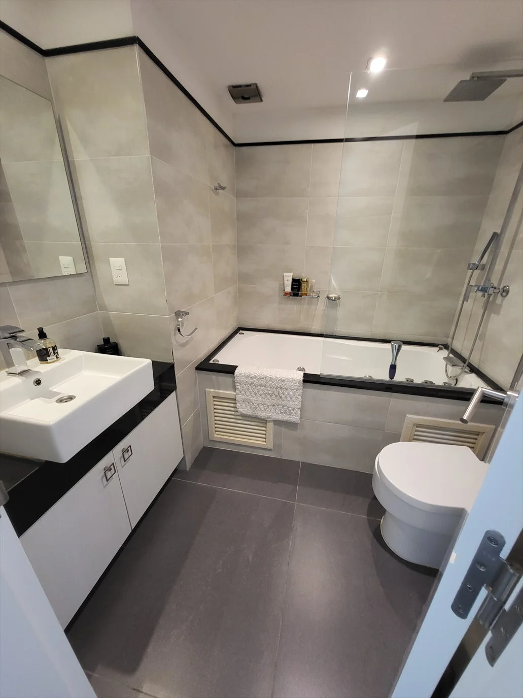 Suite principal con baño completo y gran terraza de uso exclusivo, tipo patio. Dos dormitorios con placares, un segundo baño completo y toilette.