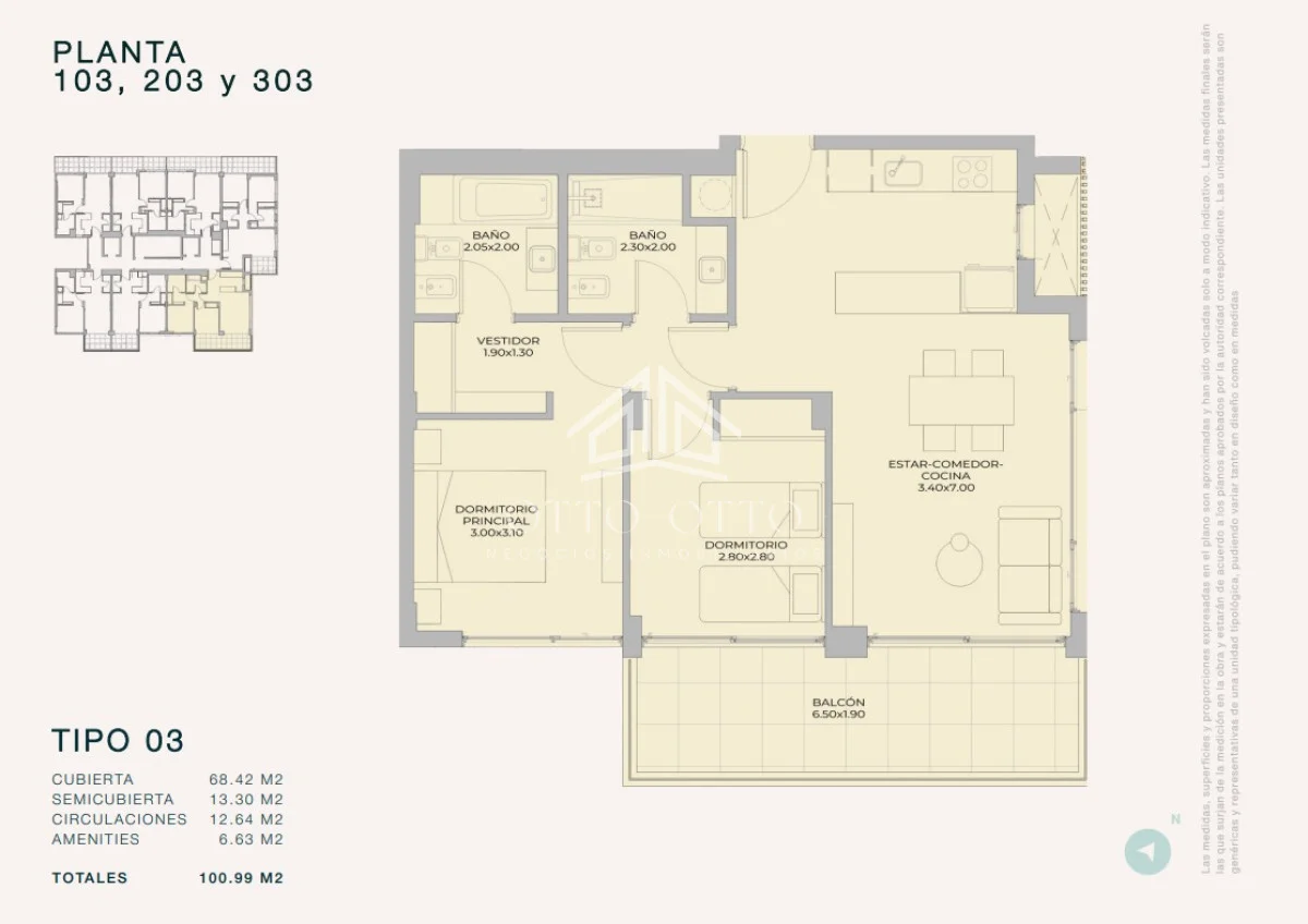 El edificio ofrecerá unidades de 1, 2 y 3 dormitorios, muchas de ellas con vista al mar totalmente irrevocable, para disfrutar de amaneceres únicos y del sonido del océano todo el año.