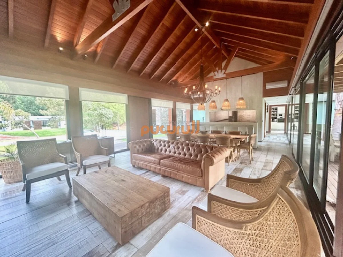 ¡Solanas Design Village, oportunidad!. Es un country privado, donde se pueden apreciar estupendas propiedades como ésta, con vista y frente a la laguna, con diseño único, 1177 m2 de parque y 420 m2 edificados, paisajes únicos. Se desarrolla en 2 plantas, 4 dormitorios (2 principales en suite con vestidores, uno arriba y otro abajo), 3 baños, toilette, estar o family que puede utilizarse como 5to dormitorio , cocina con comedor diario, galería perimetral, sistema de riego automatizado, cortinas automatizadas, gran barbacoa incorporada al living comedor, losa radiante en todos los baños, aires acondicionados en todos los ambientes, cochera para 2 autos, lavadero, amplia baulera, servicio de mucama diario. Vigilancia las 24 hs del día. Muy buenos amenities del complejo como ser: piscina climatizada inout, gran piscina exterior, barbacoas de uso general, sala de juegos, sauna, gimnasio, canchas de tenis, rodeado de un entorno natural único. Importante para destacar!!. Muy accesibles expensas para todo lo que brinda el complejo