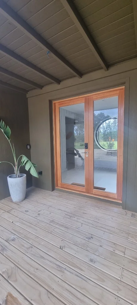 Extensa área de decks en madera, ideal para el esparcimiento exterior.