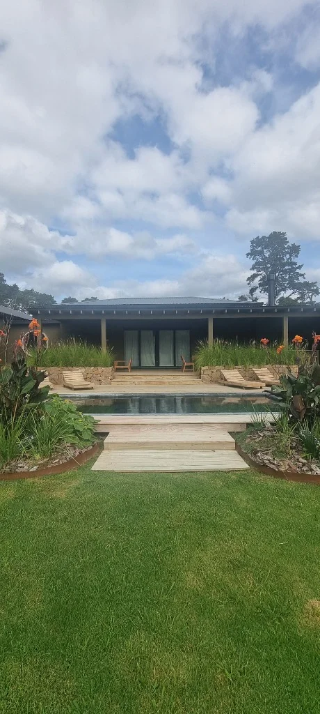 Situada sobre un lote de 4.000 m², la propiedad integra materiales nobles con un diseño funcional, ofreciendo espacios amplios y vistas despejadas al entorno natural de La Barra.